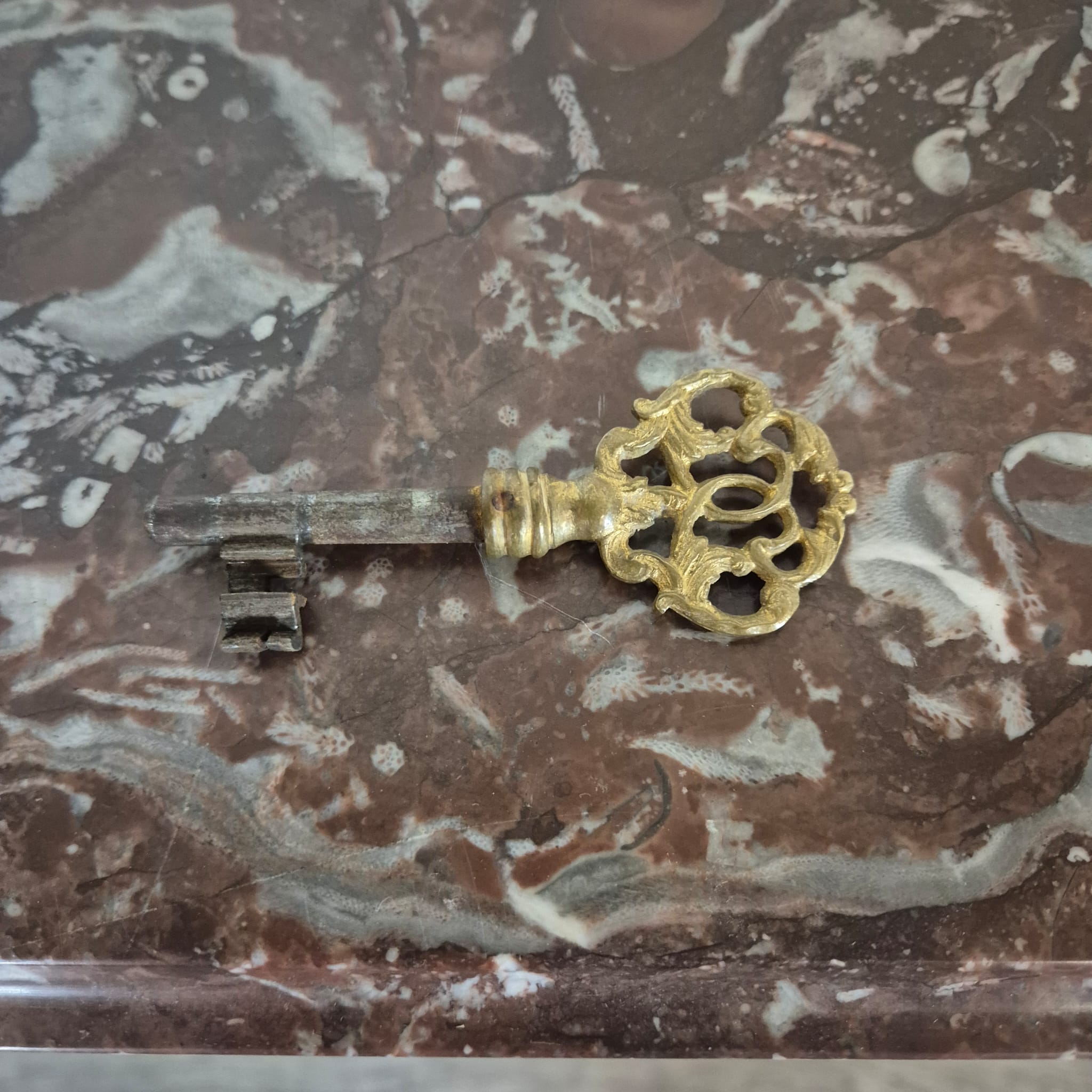 Details: Origineel marmeren blad & origineel beslag