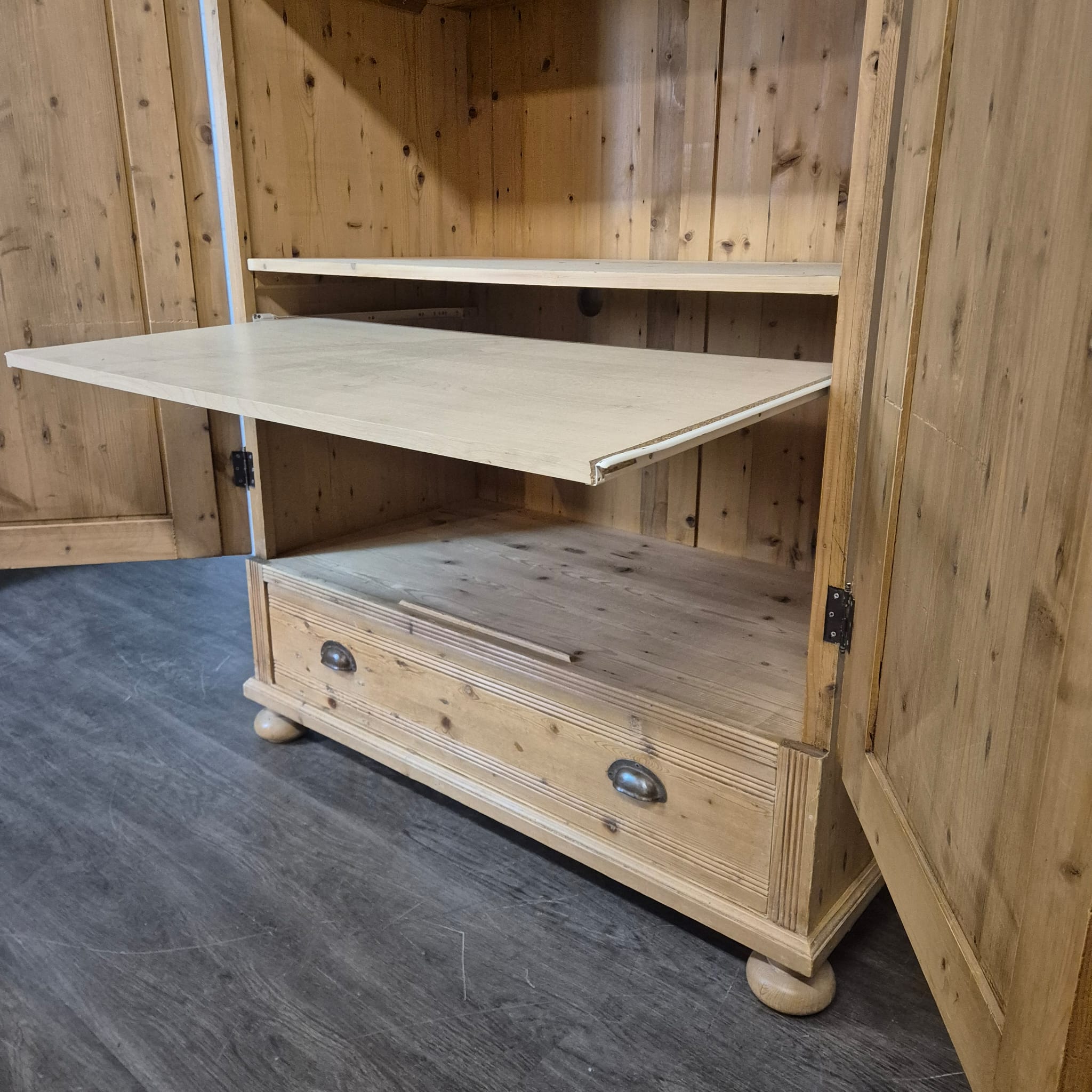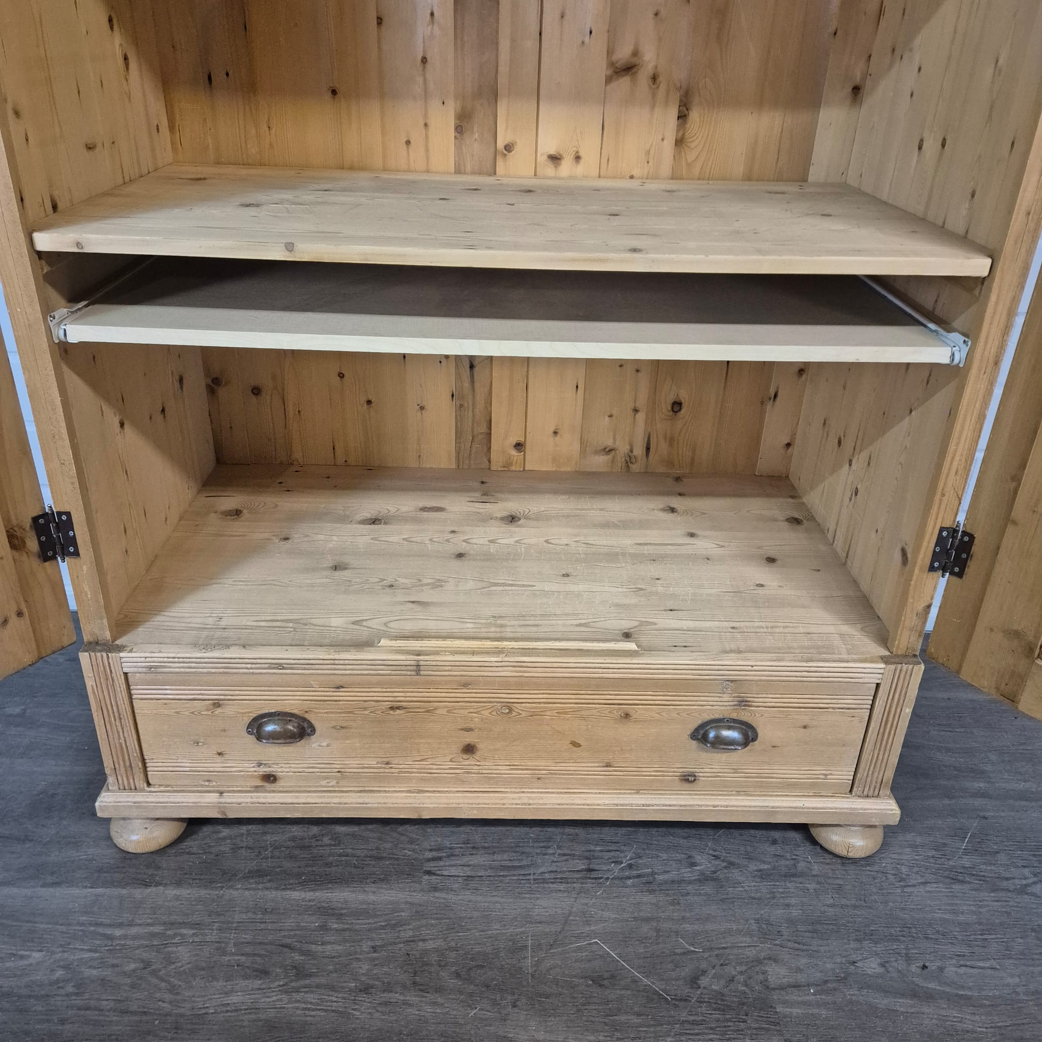 €923,53 Excl. btw:Prachtig gerestaureerde Jugendstil kast van massief grenen (gewaxt), daterend uit circa 1900. Deze voormalige kledingkast is vakkundig omgebouwd tot een praktische computerkast. Het meubel verkeert in een zeer goede staat en vertoont slechts minimale gebruikssporen.