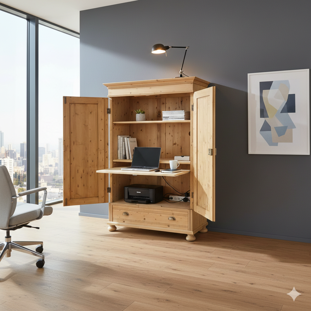 Bijzonderheden: Omgebouwde kledingkast, ideaal voor een stijlvolle werkplek