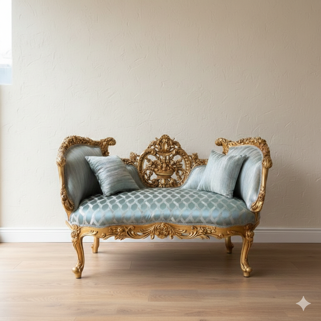 Bank Sofa Barokstijl Goud-Zilverblauw 1,35 m