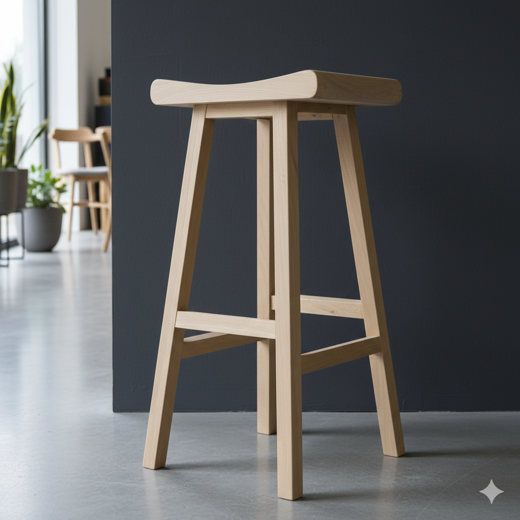 Barkruk gemaakt van massief blank teakhout. Robuust en van hoge kwaliteit.