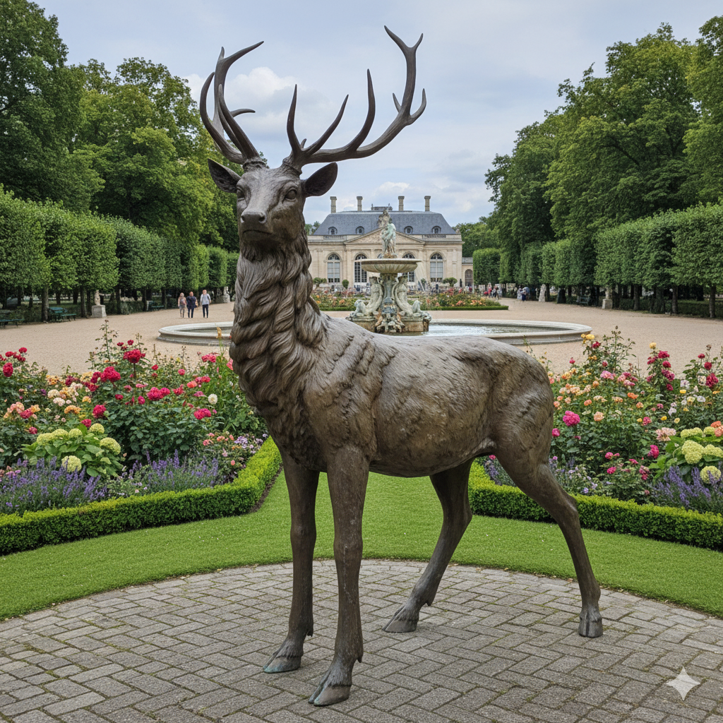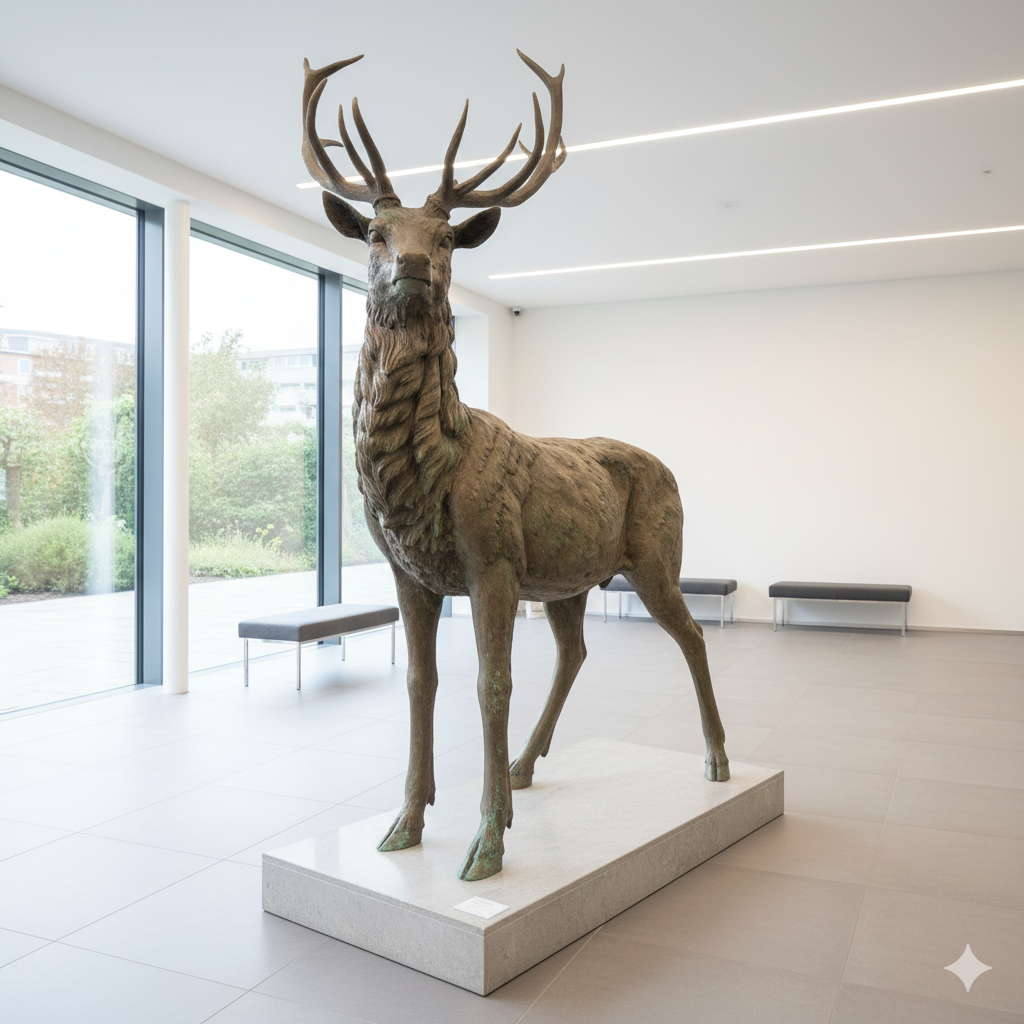Bronzen beeld van een hert.