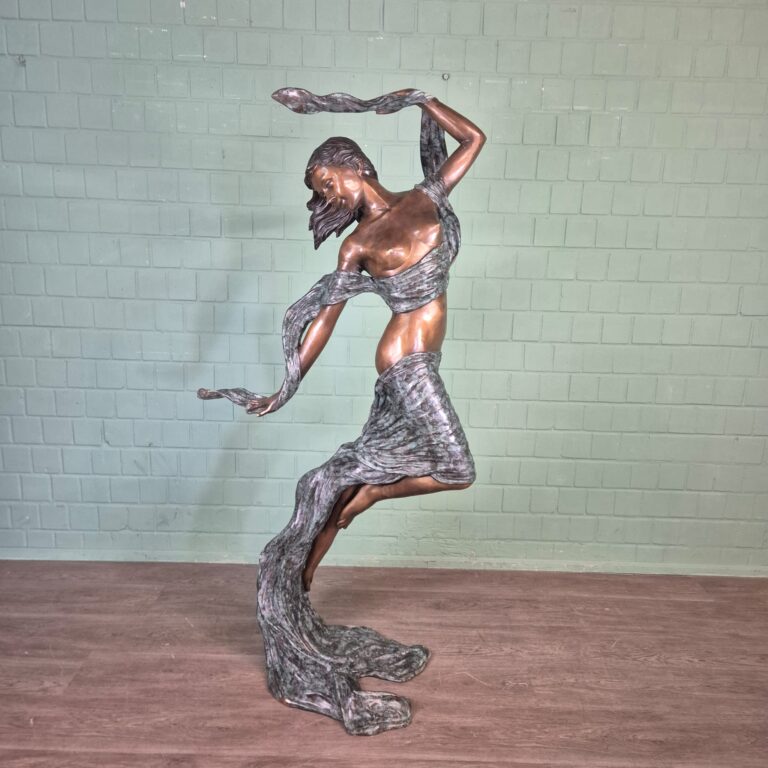 Bronzen Sculptuur "Dansende Nimf met Sjaal"