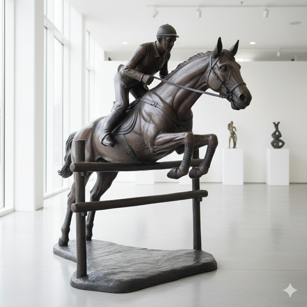 Bronzen beeld van een paard met ruiter.