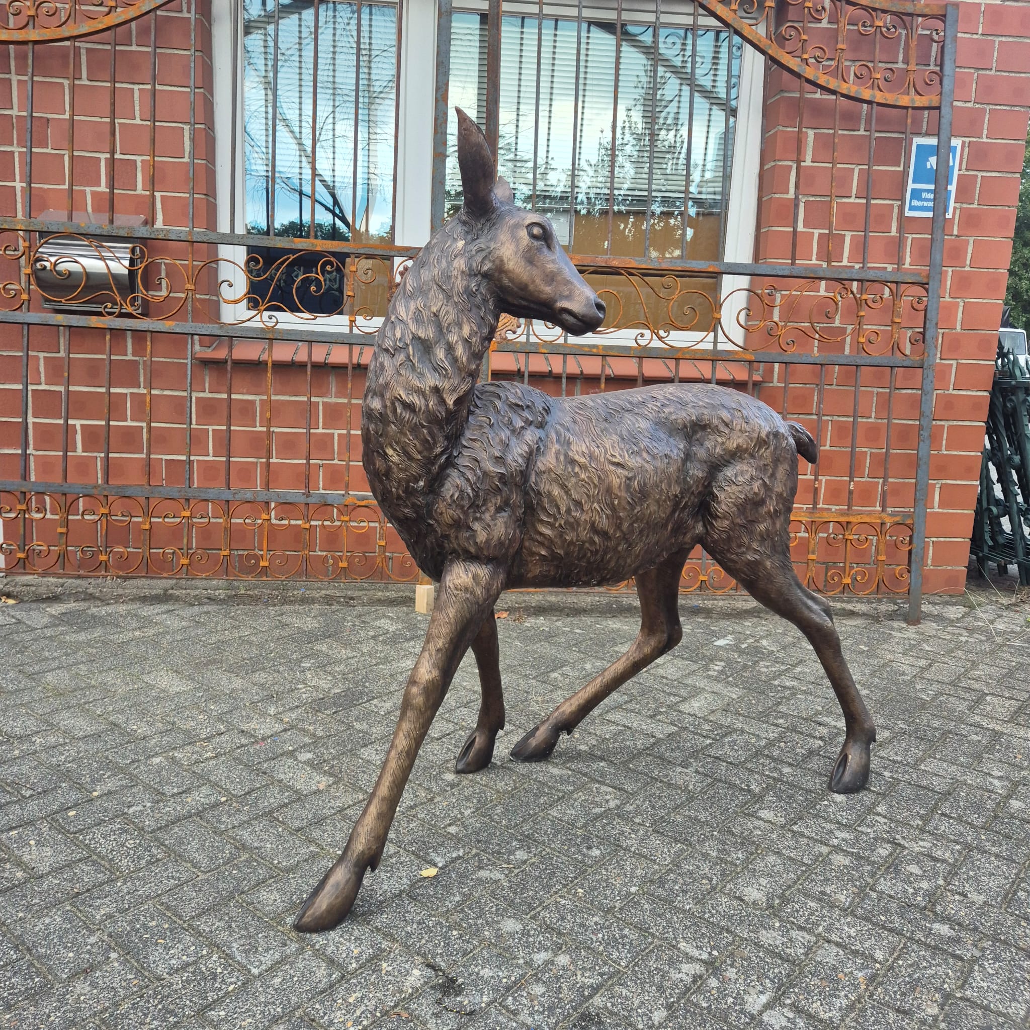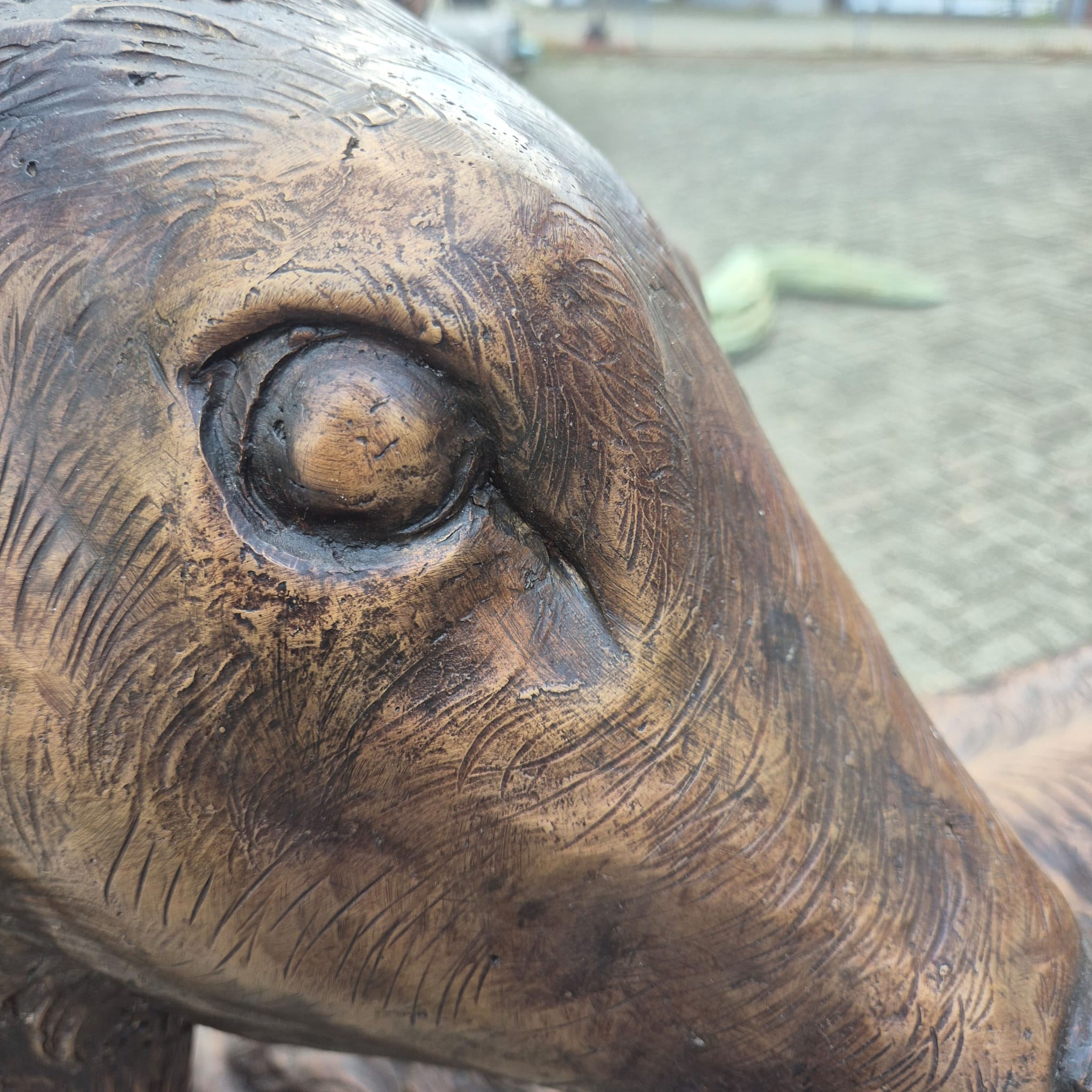 Materiaal: Hoogwaardig, weerbestendig brons met een aantrekkelijke, donkere patina die de fijne vachtstructuur benadrukt.