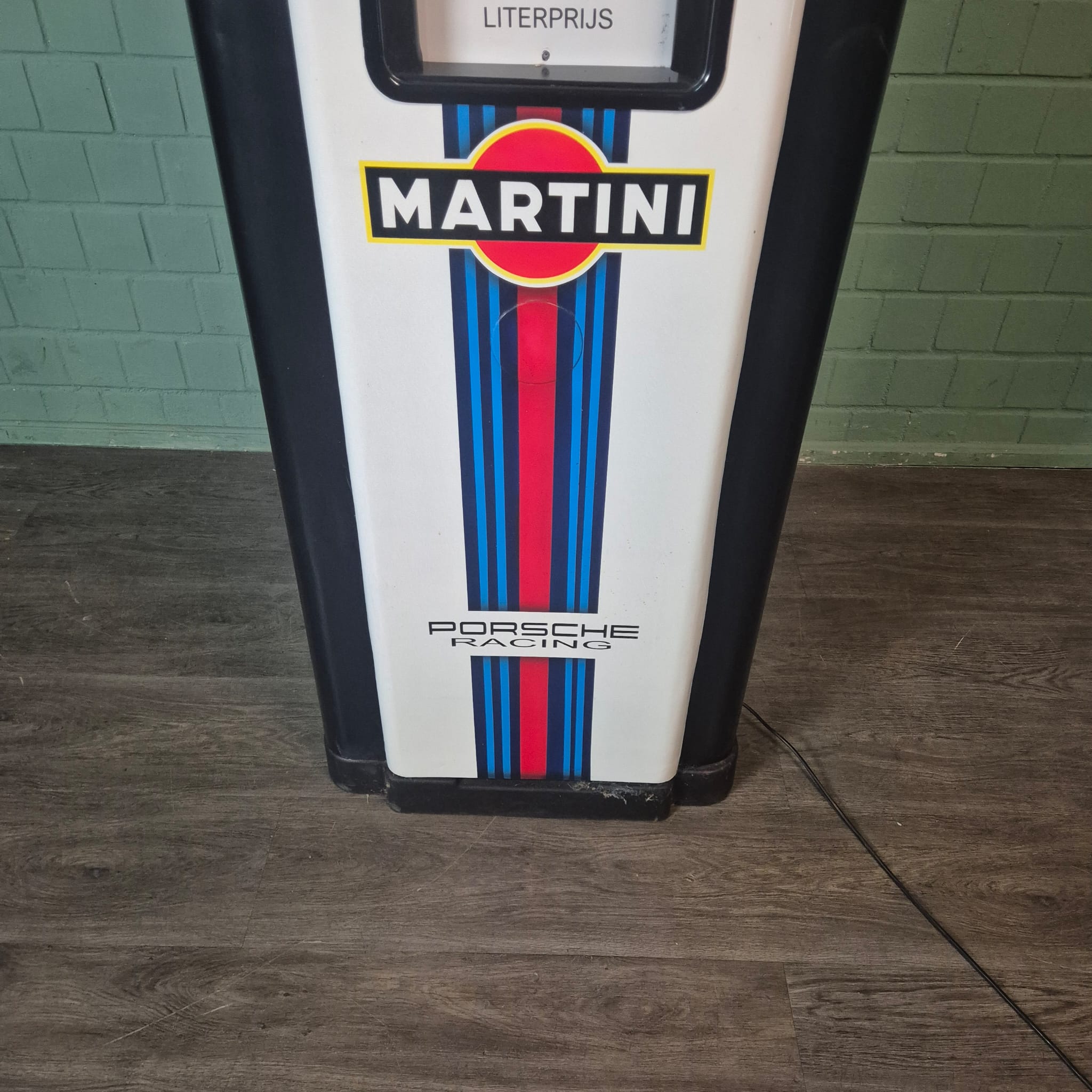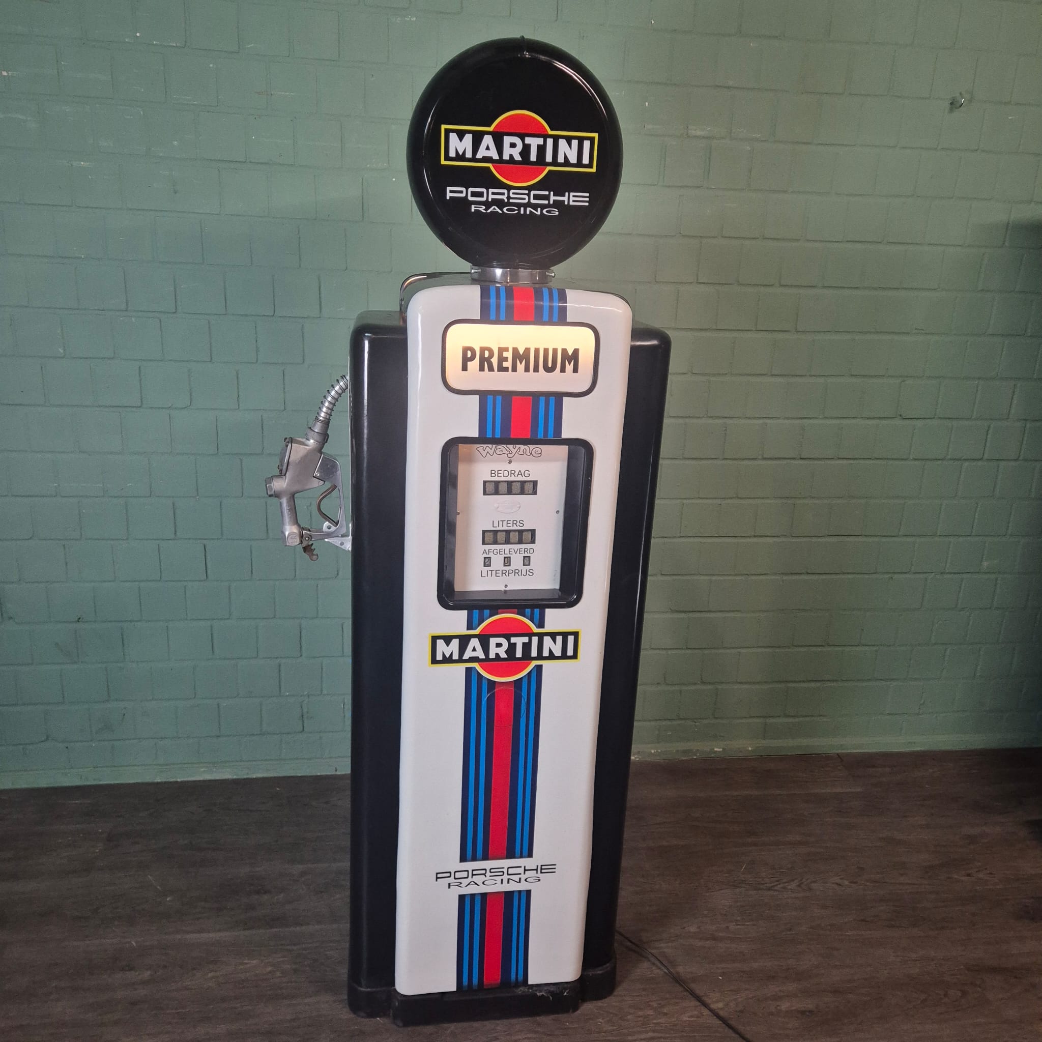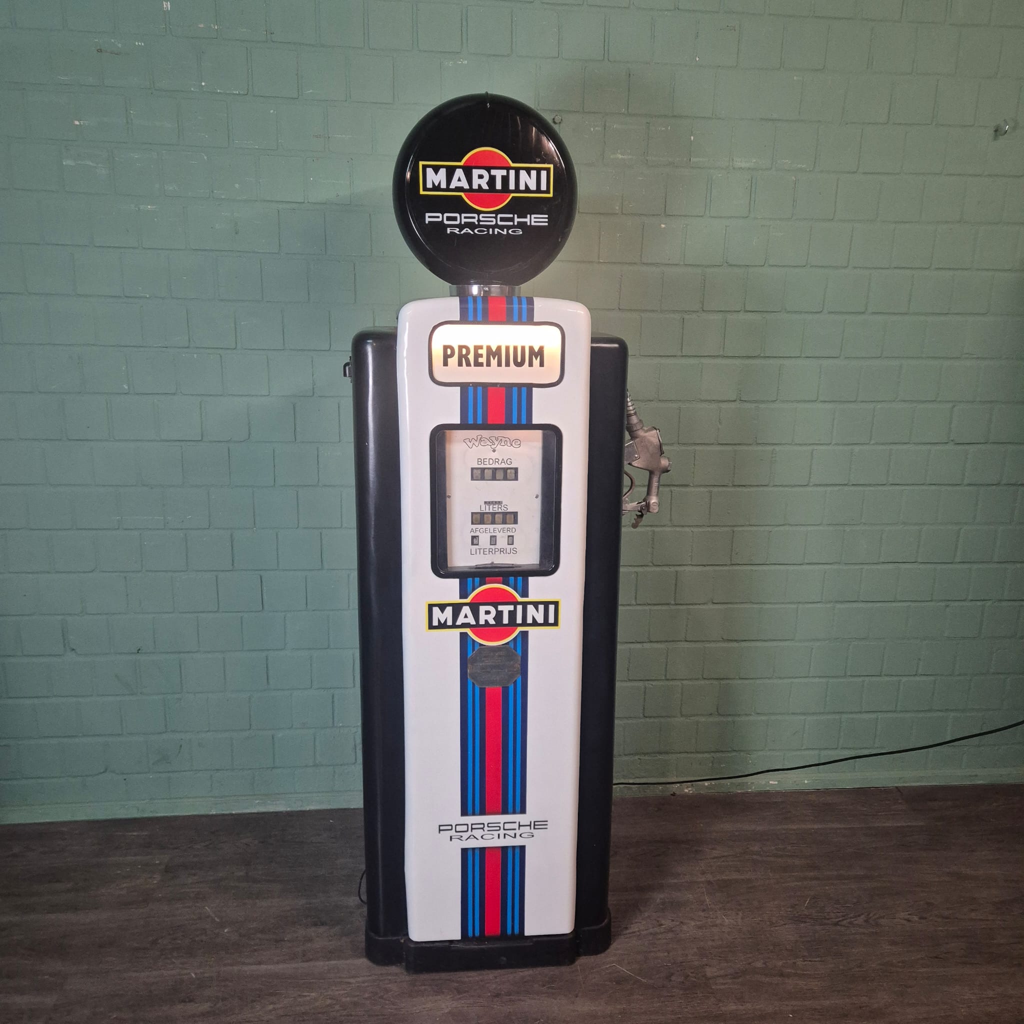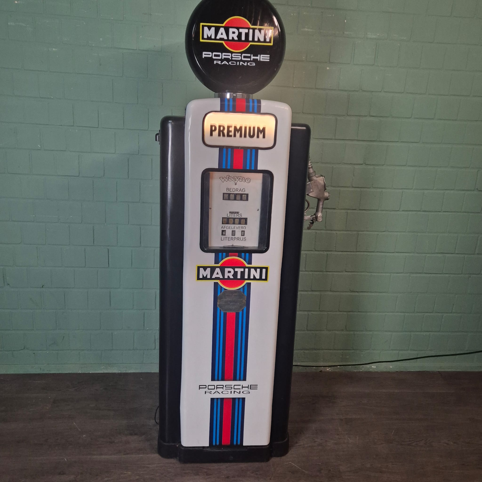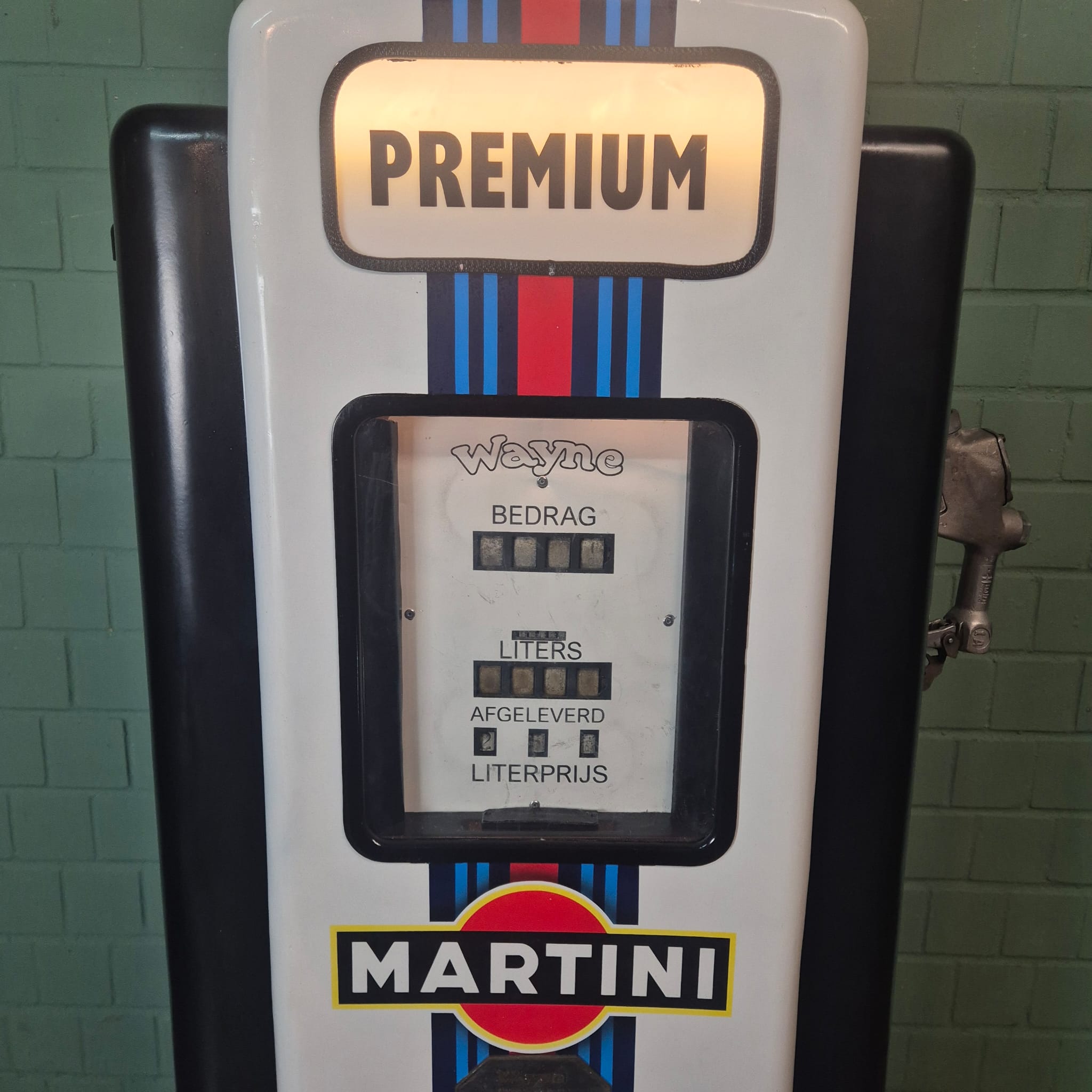 €4.999,00 Excl. btw:Gerestaureerde Wayne benzinepomp uit de jaren 50 in Martini Porsche Racing-livery. De lak is een eerbetoon aan het beroemde Martini Racing-ontwerp met de karakteristieke blauwe, lichtblauwe en rode strepen, nauw verbonden met Porsches autosportsuccessen (met name in de jaren 70 met de Porsche 917). De pomp werd oorspronkelijk in Nederland en/of voor de Nederlandse markt gebruikt.