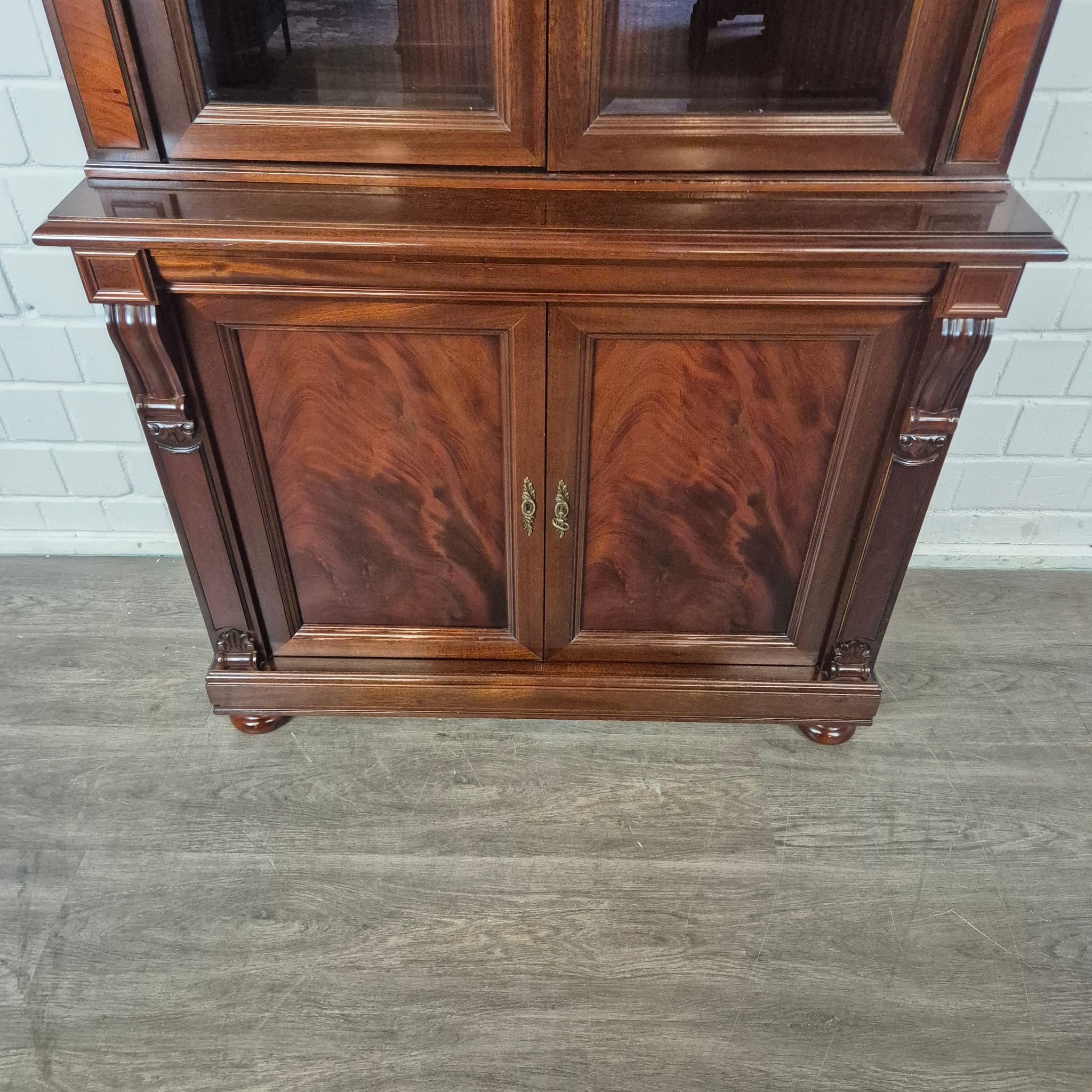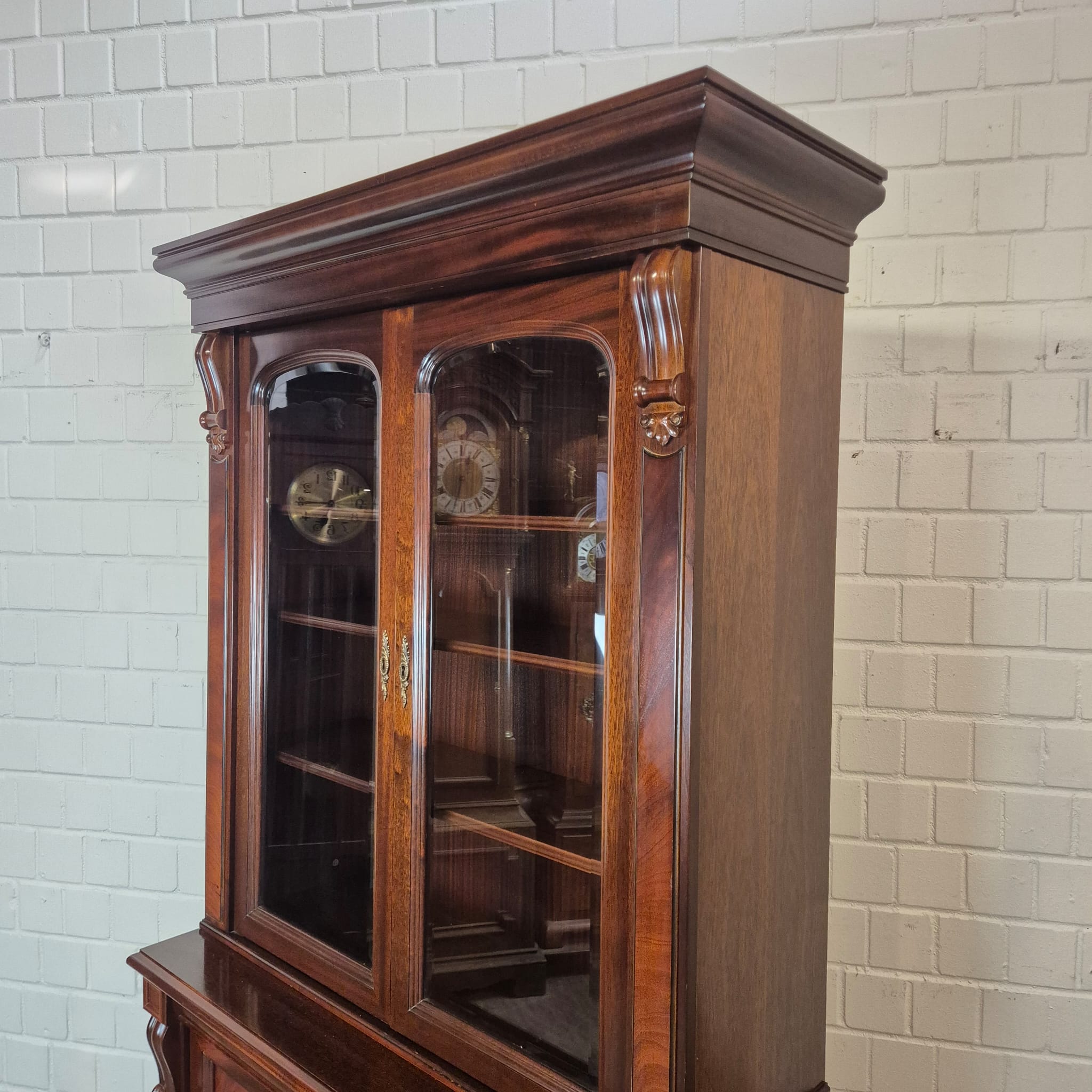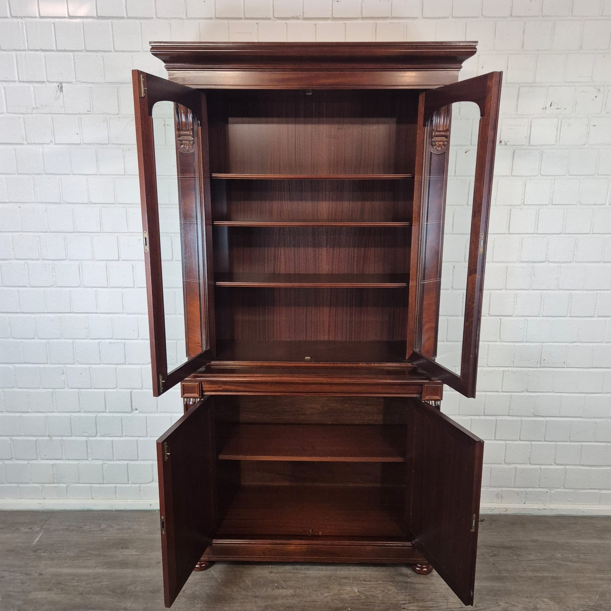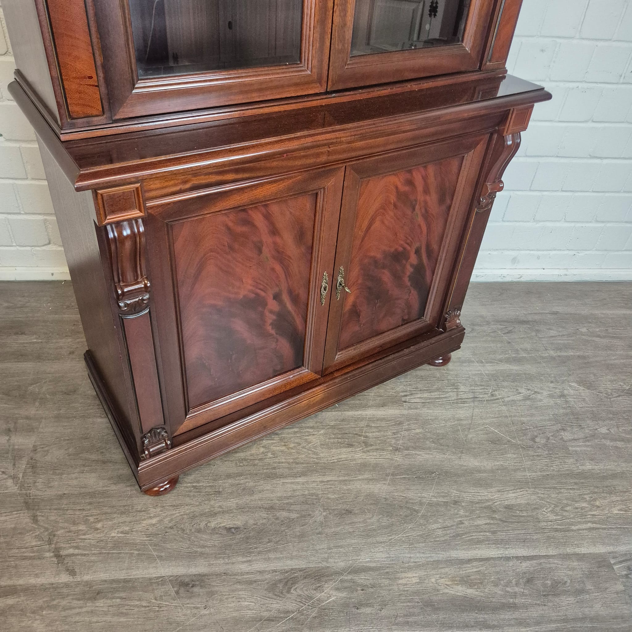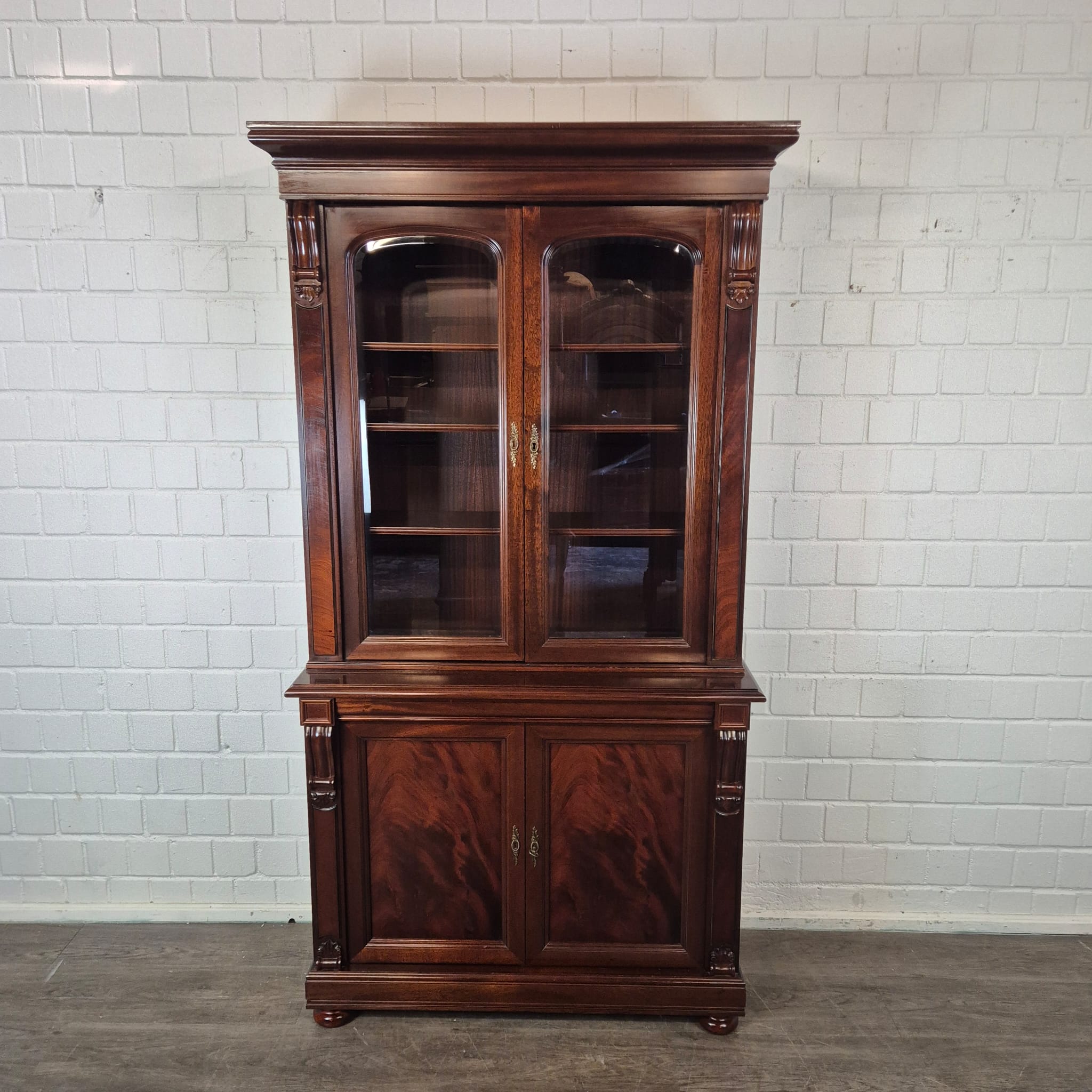 Neo-barok boekenkast mahonie gefineerd en deels massief. De boekenkast is in een goede staat en heeft lichte gebruikssporen. Demontabel (2-delig).