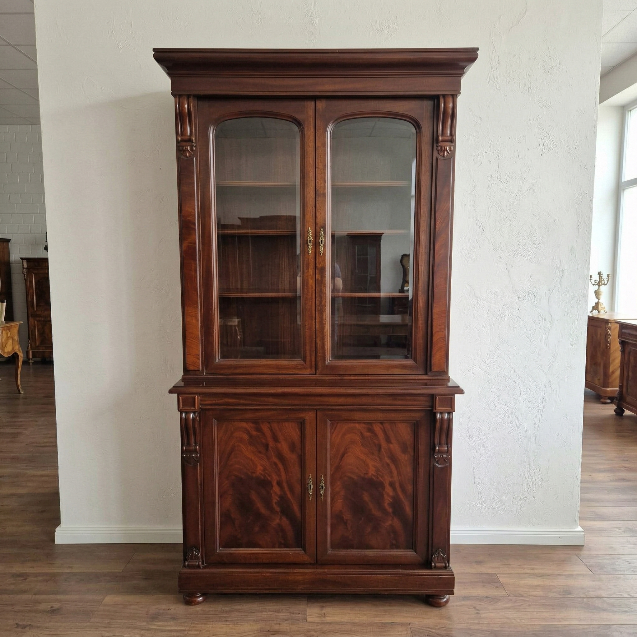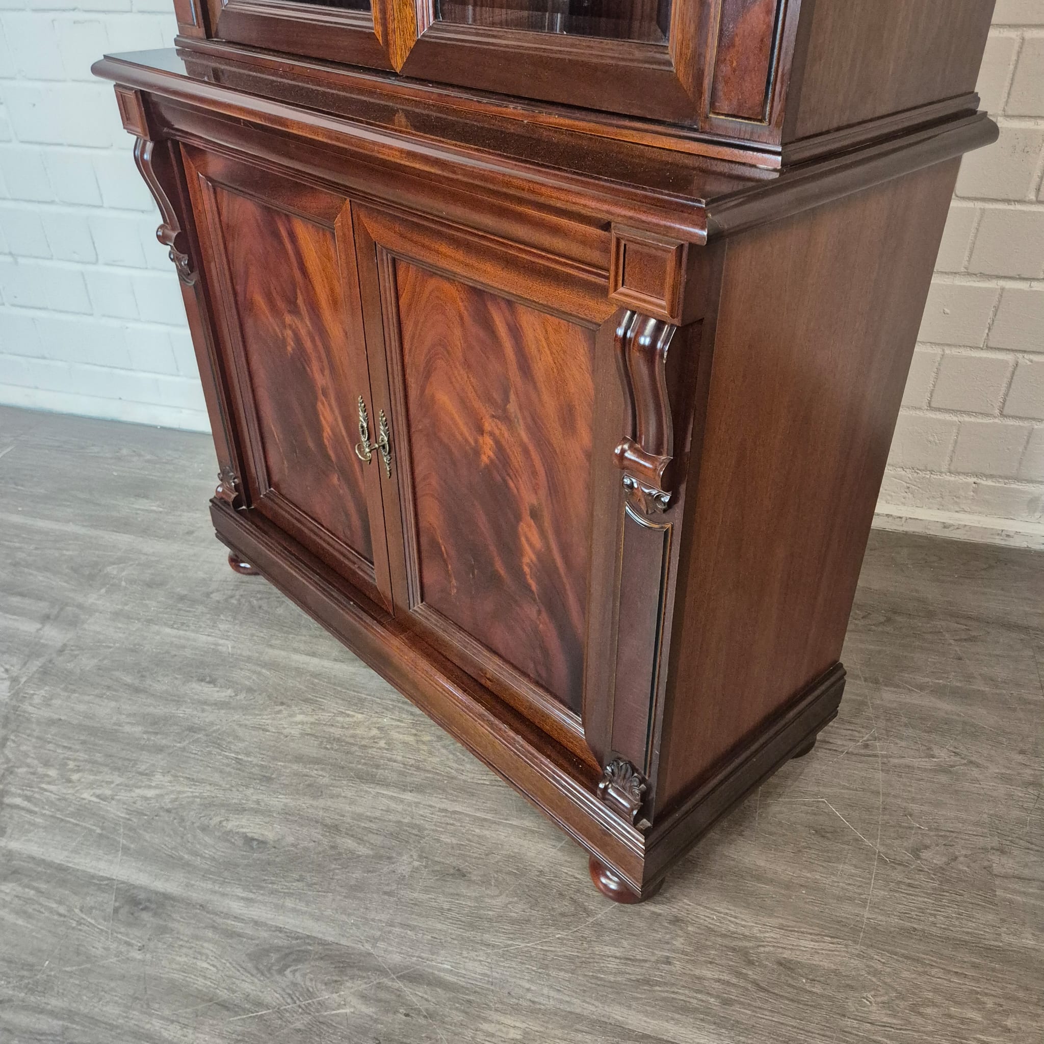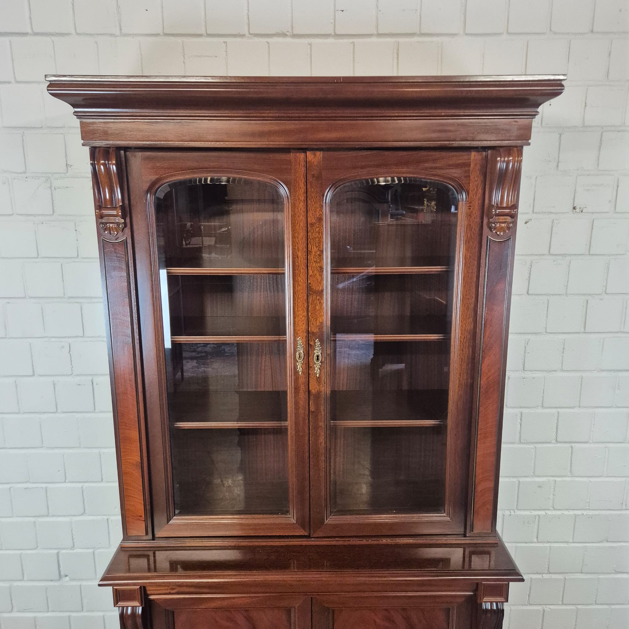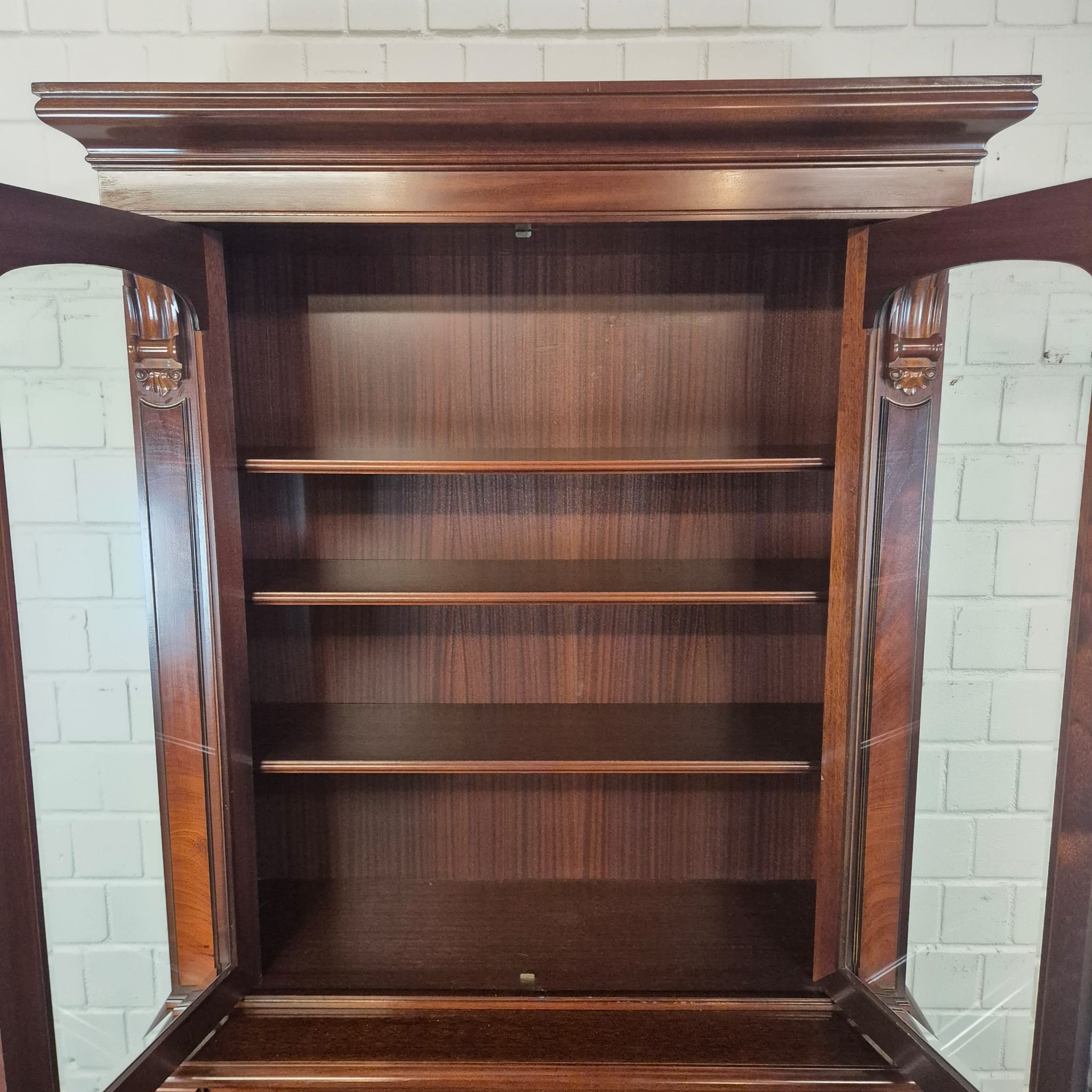 Neo-barok boekenkast mahonie gefineerd en deels massief. De boekenkast is in een goede staat en heeft lichte gebruikssporen. Demontabel (2-delig).