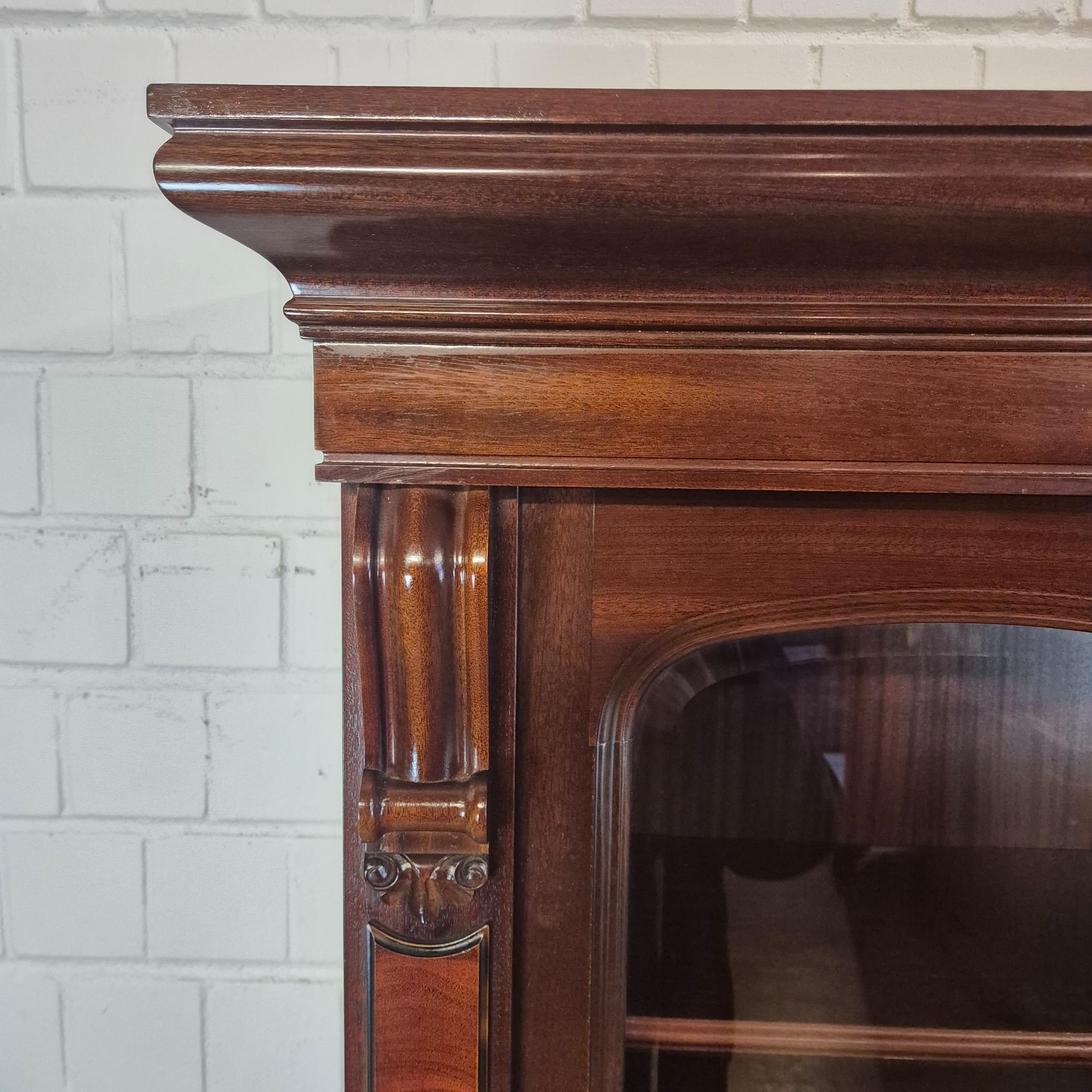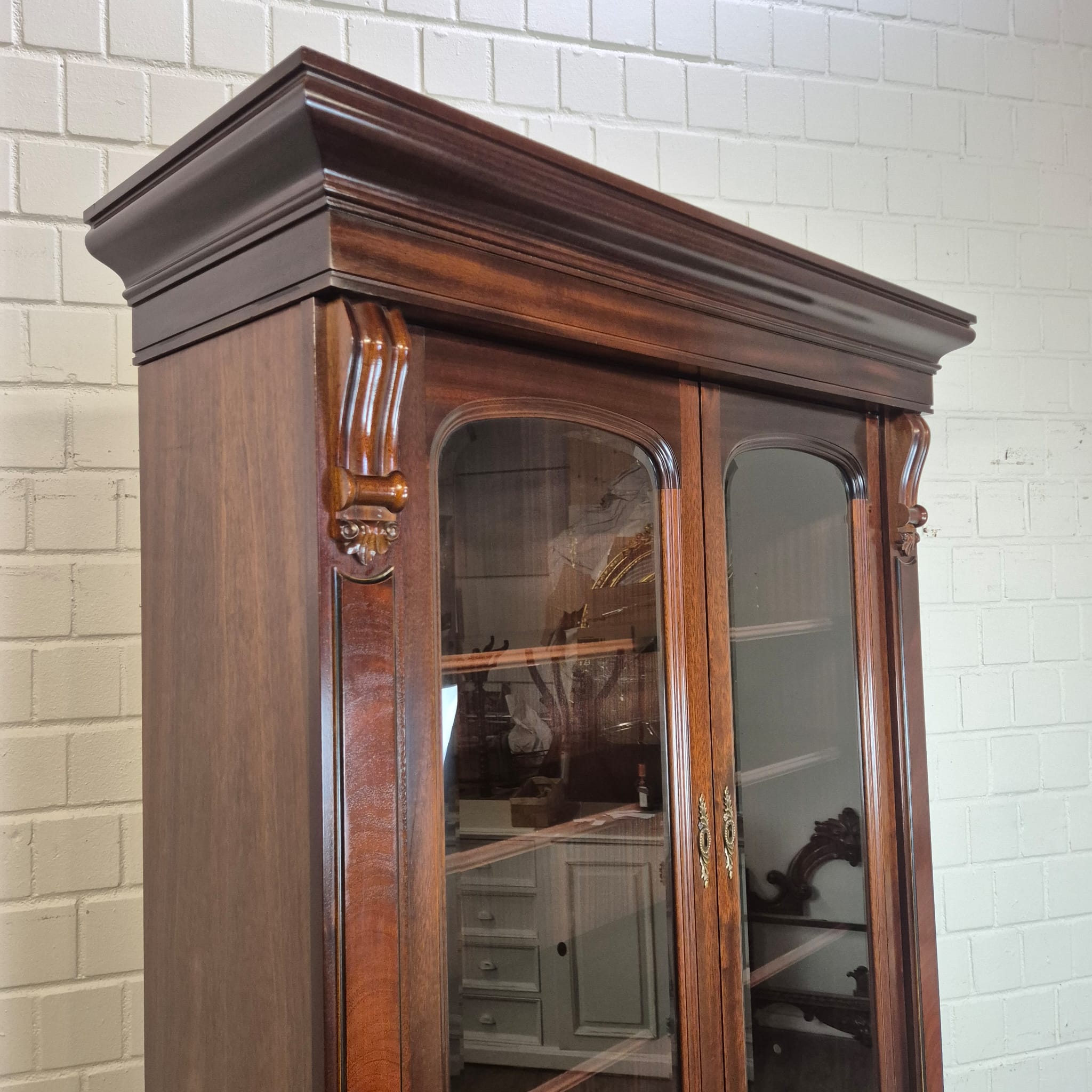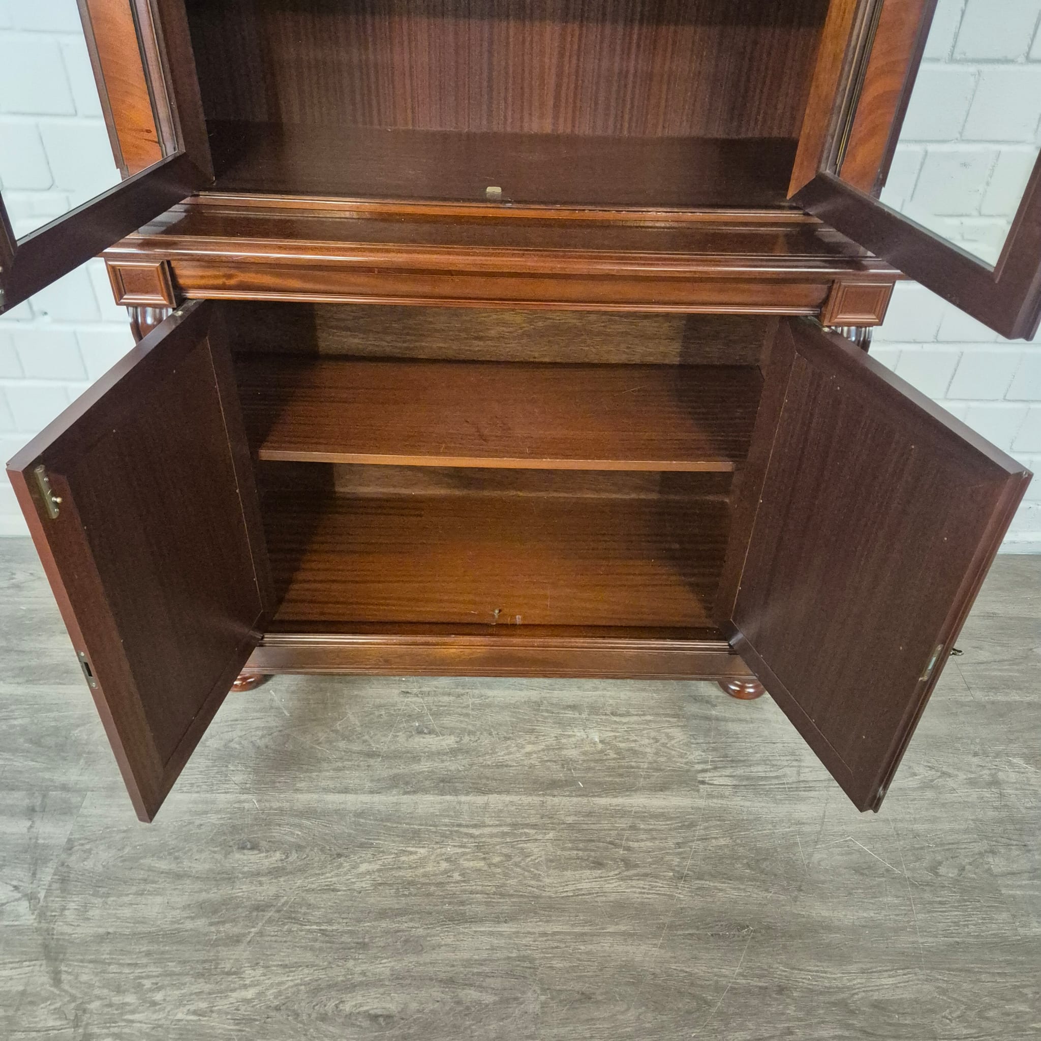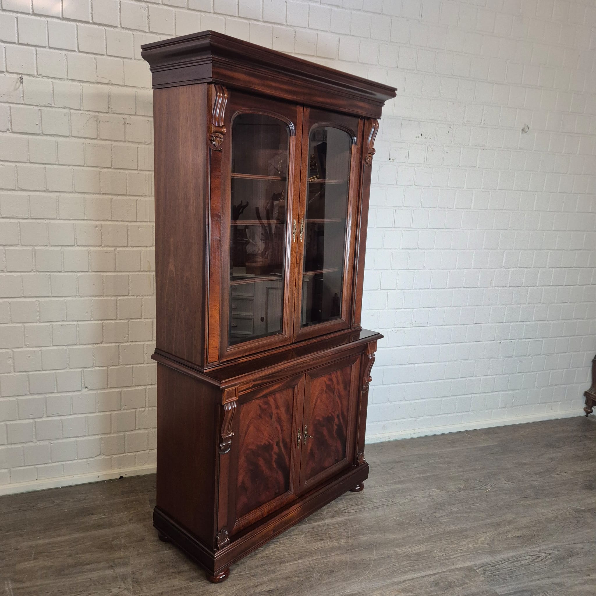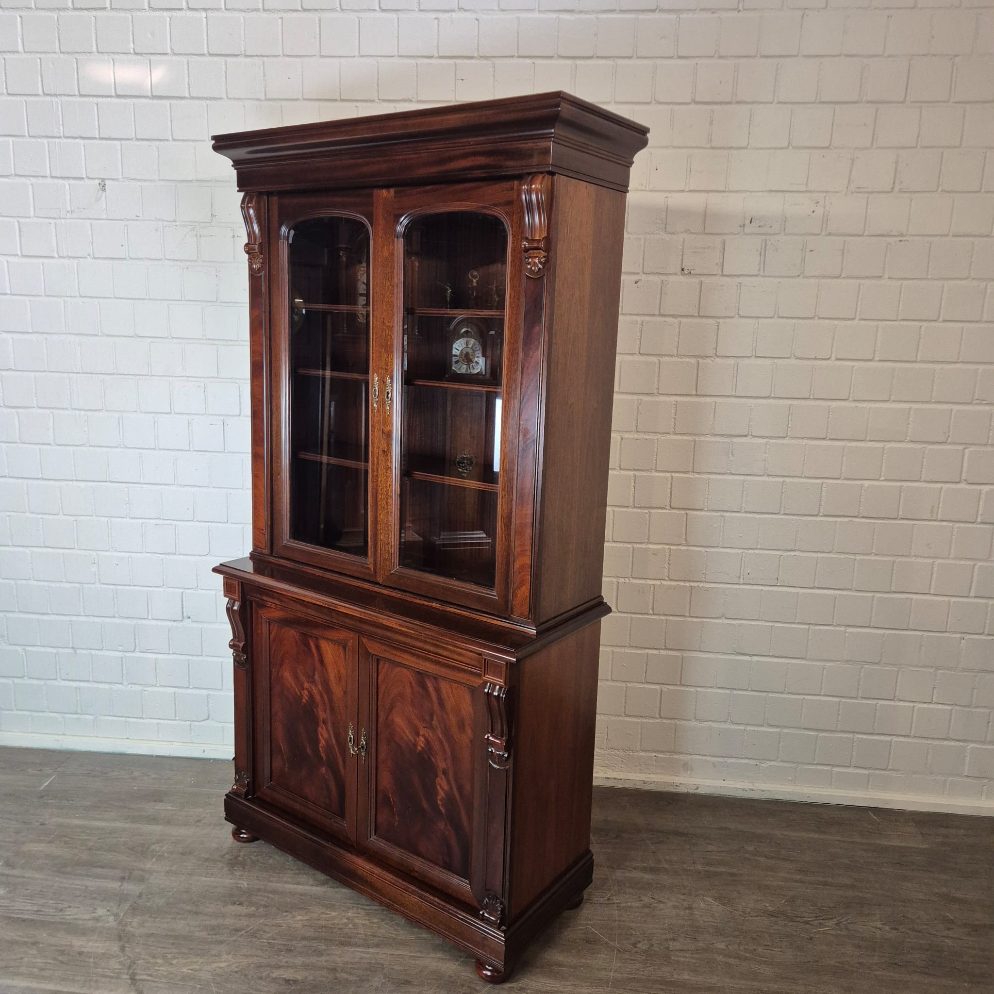 Neo-barok boekenkast mahonie gefineerd en deels massief. De boekenkast is in een goede staat en heeft lichte gebruikssporen. Demontabel (2-delig).