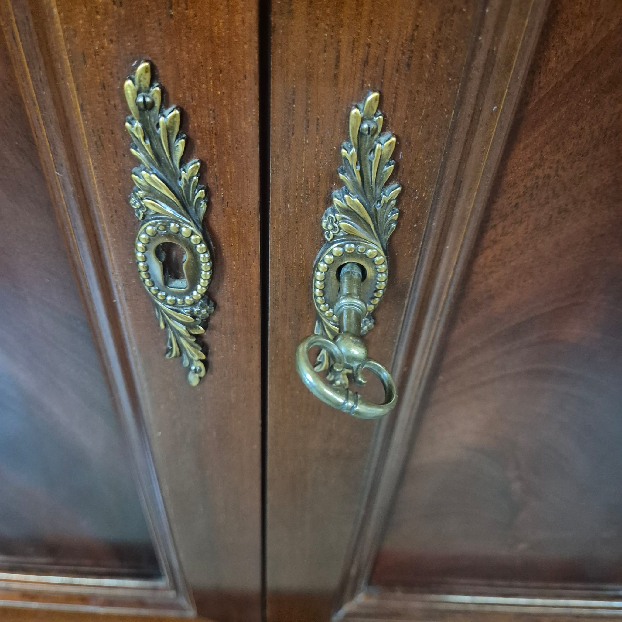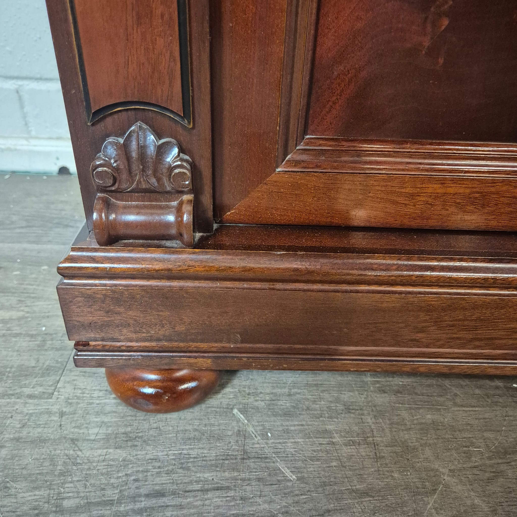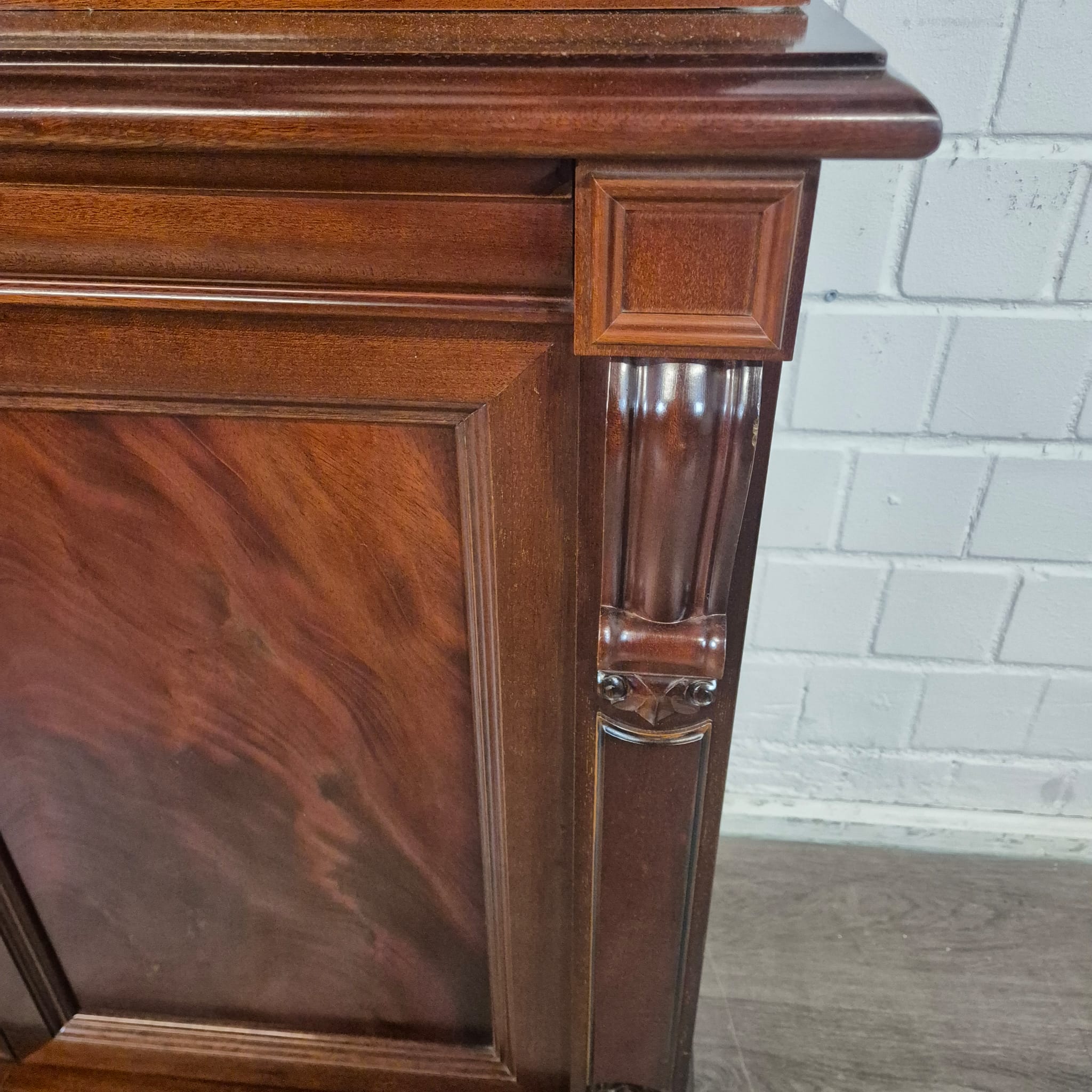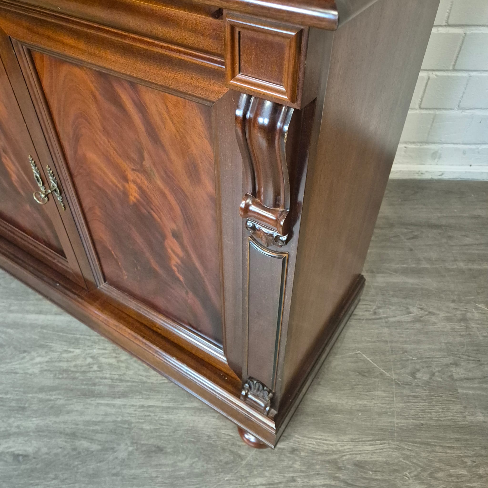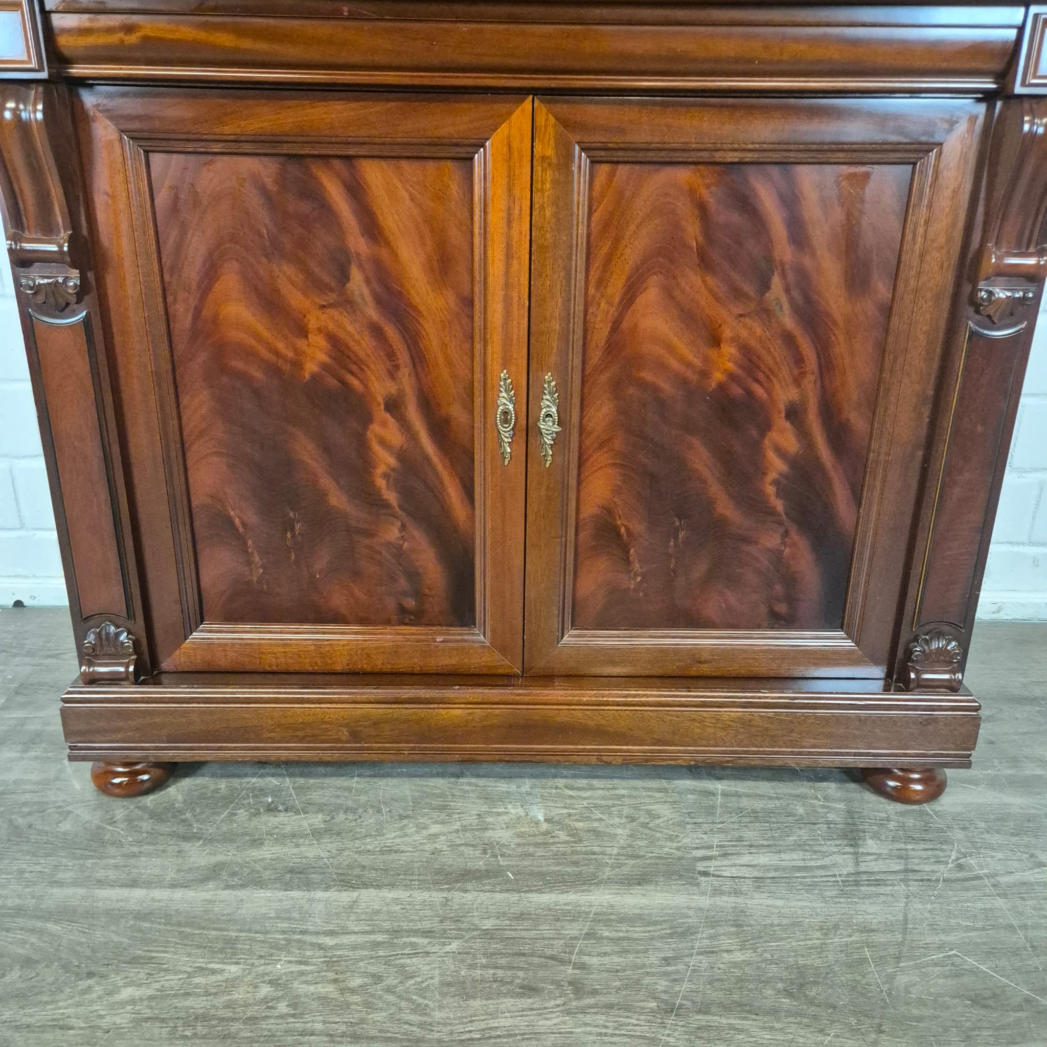 Neo-barok boekenkast mahonie gefineerd en deels massief. De boekenkast is in een goede staat en heeft lichte gebruikssporen. Demontabel (2-delig).