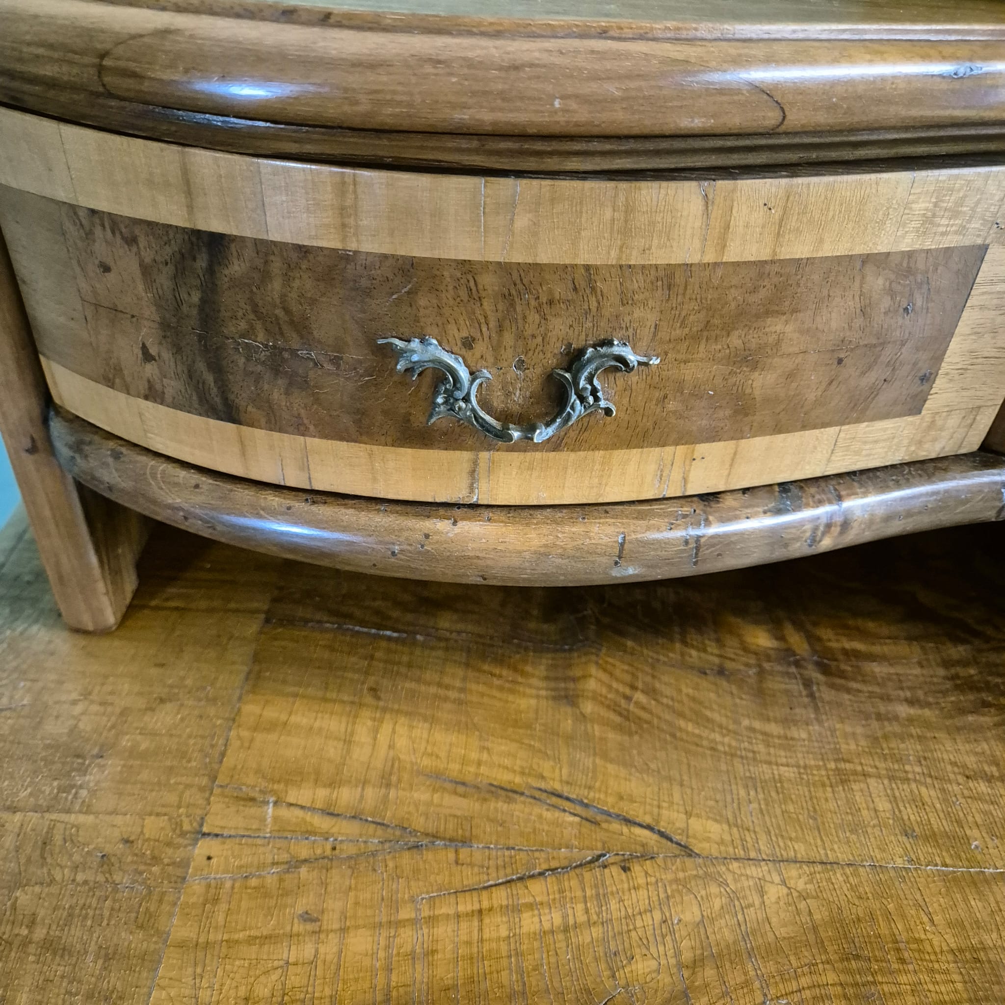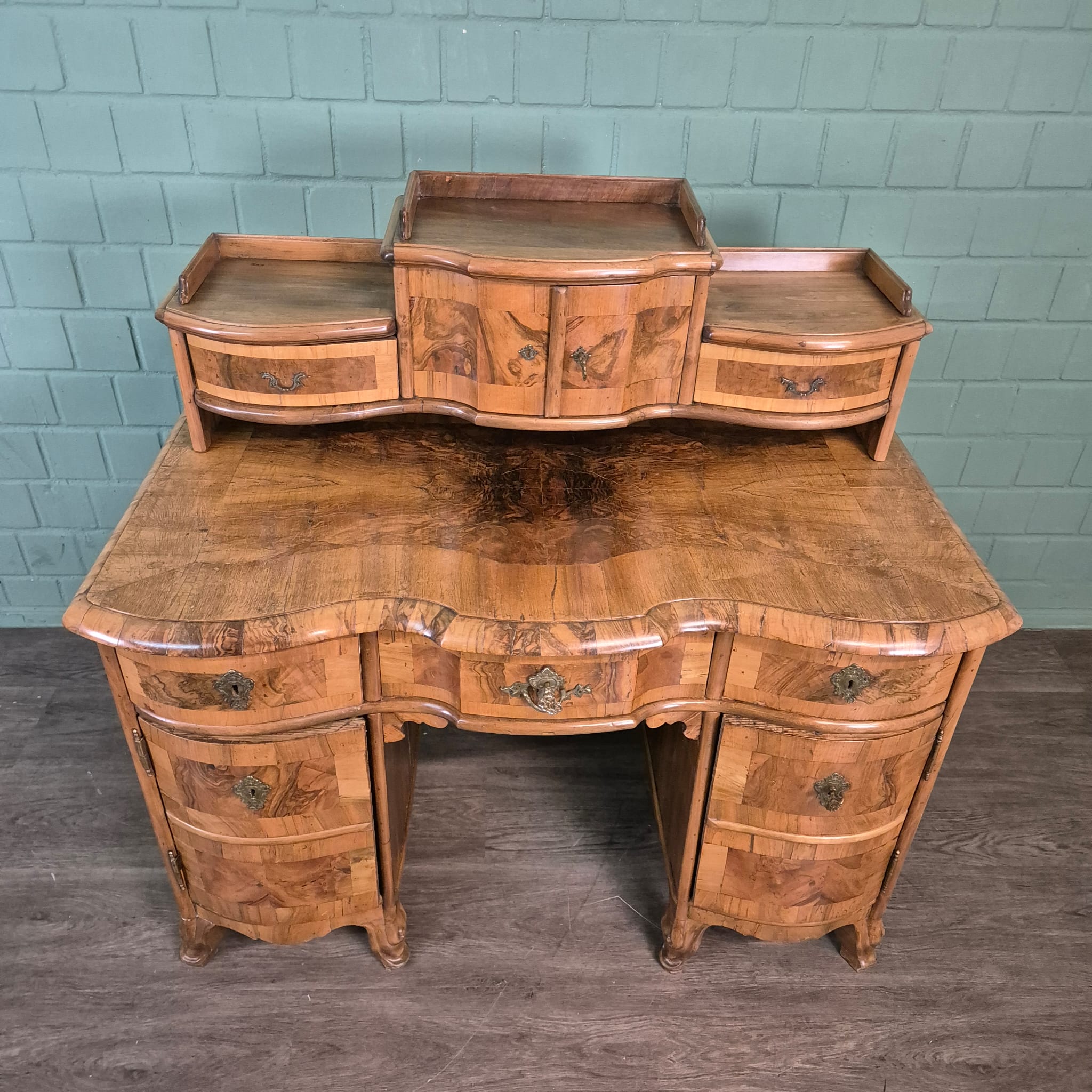 Gerestaureerd barok bureau noten gefineerd en gewaxt uit ca. 1770. Het bureau is in een goede staat en heeft lichte gebruikssporen. Demontabel (2-delig).