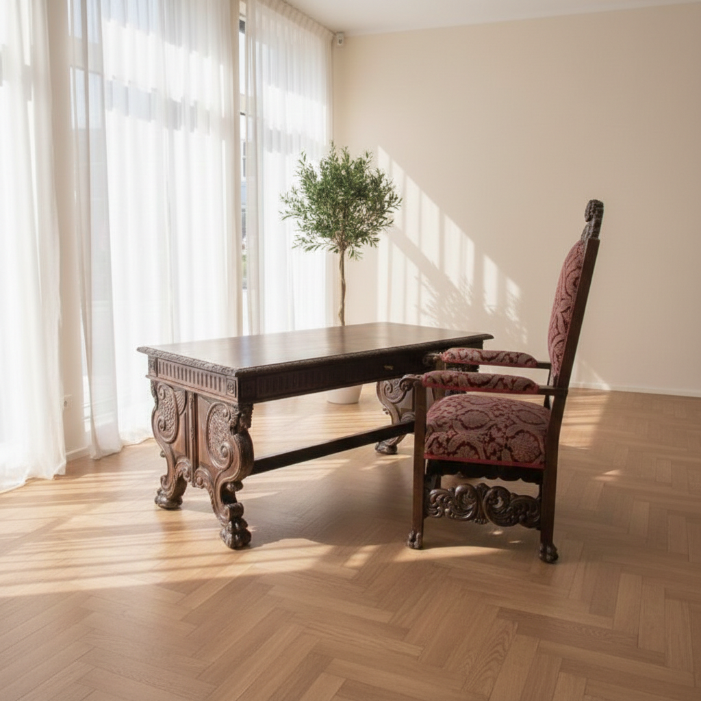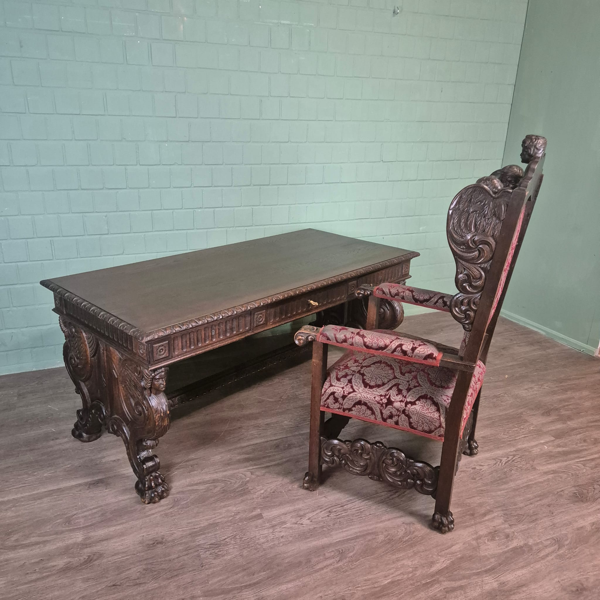Bureau met Bureaustoel Eiken Neo-barok 1920