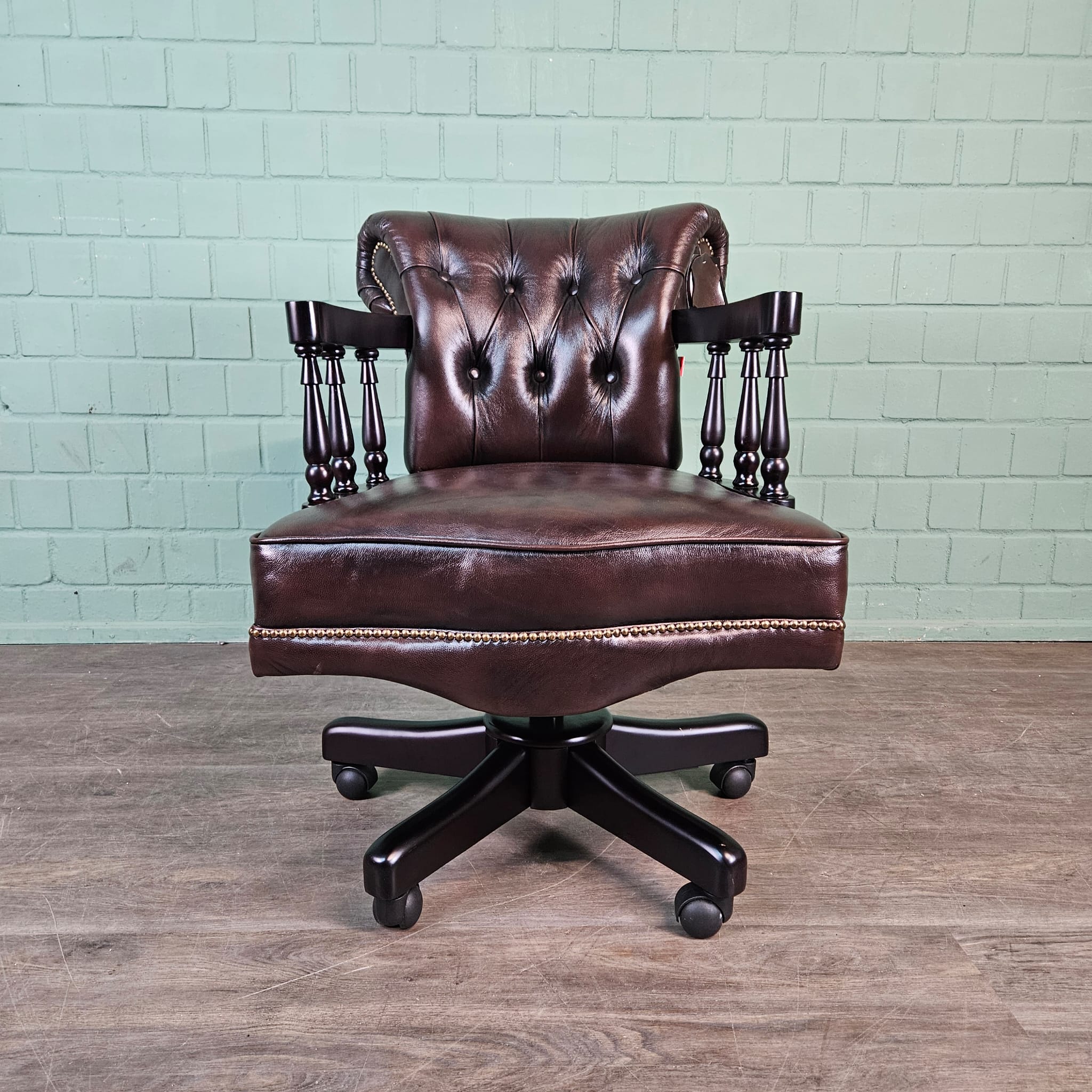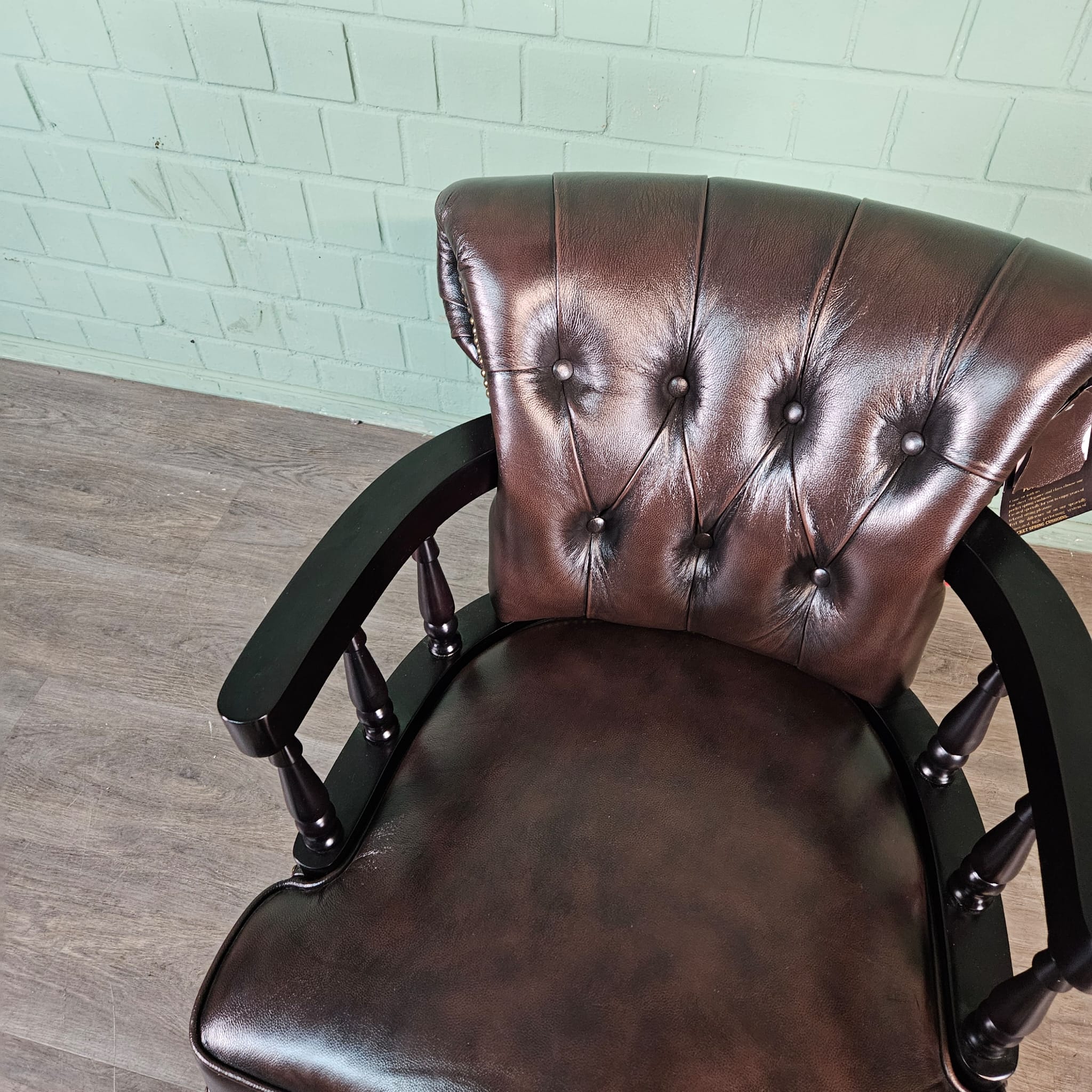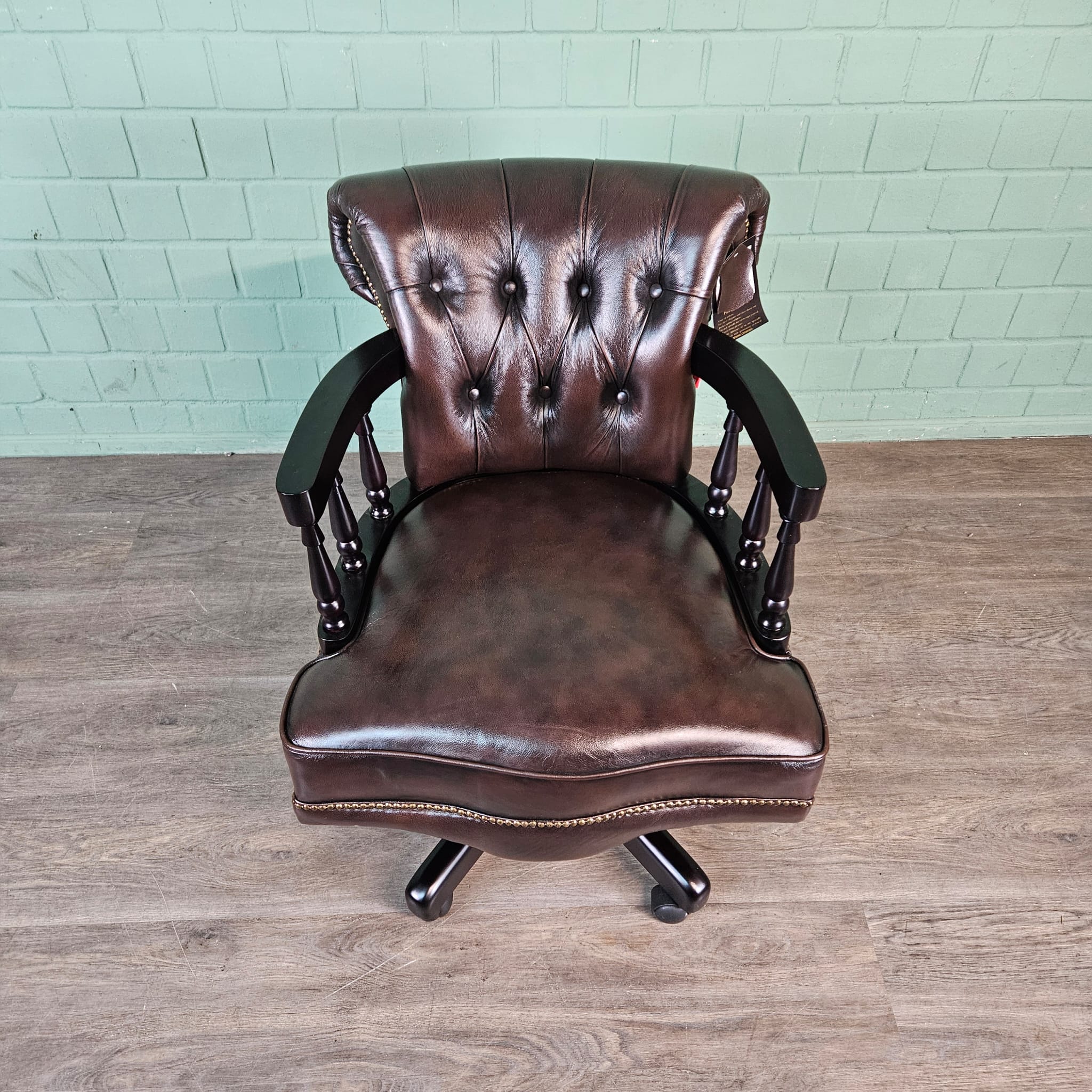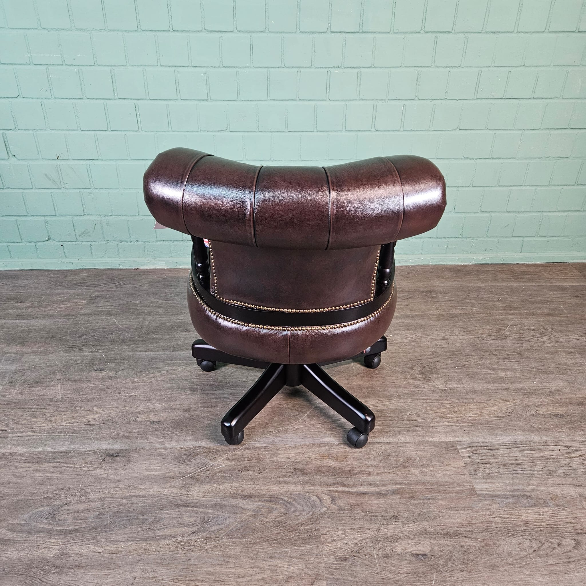 Elegante Chesterfield bureaustoel in bruin - Echt leer