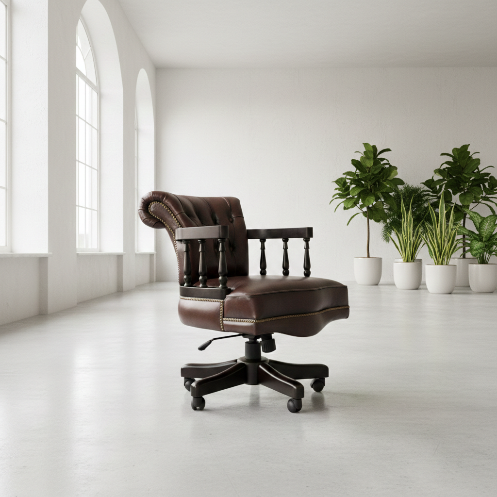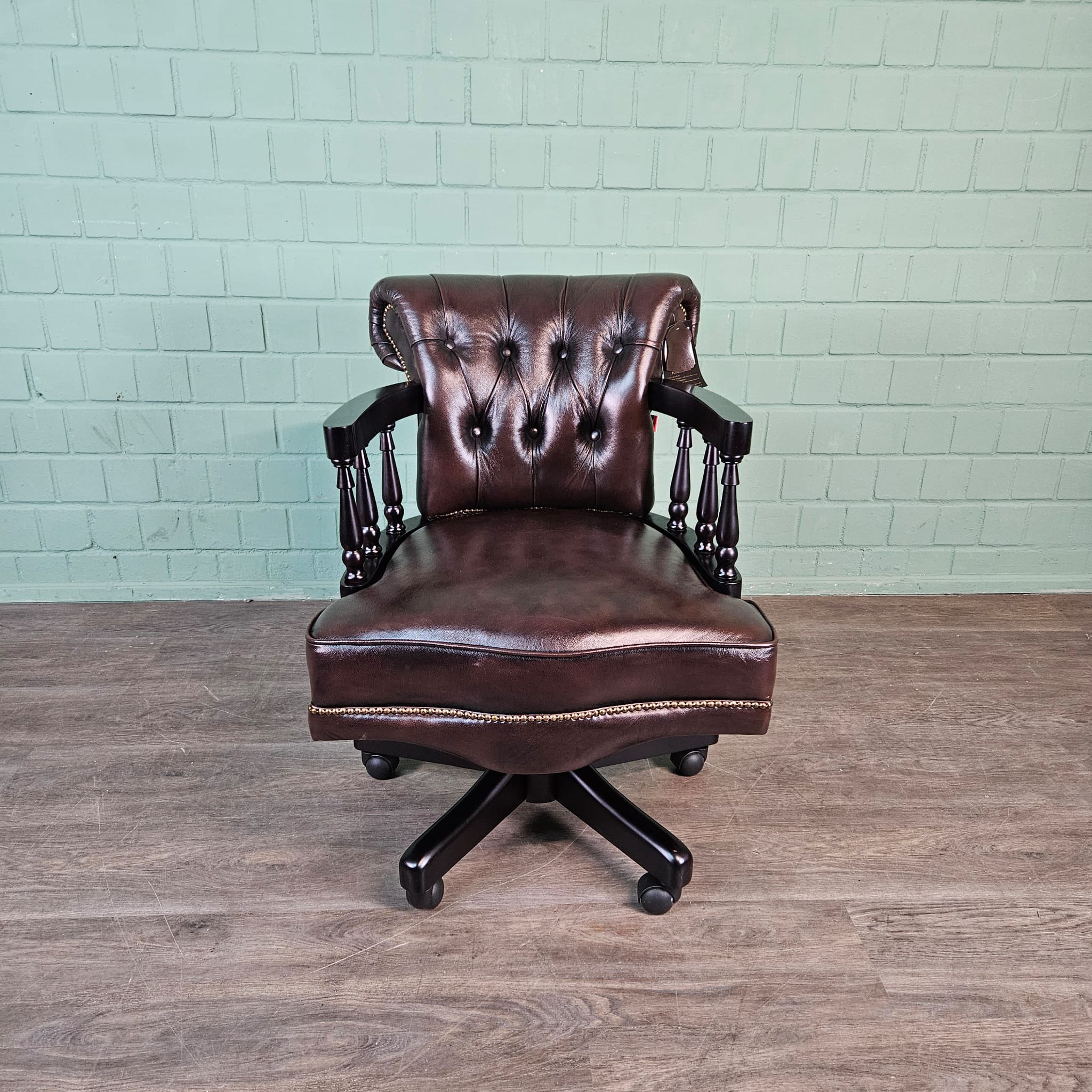 Upgrade uw kantoor met deze klassieke Chesterfield draaistoel. De combinatie van tijdloze elegantie en modern comfort maakt hem de perfecte blikvanger voor elke stijlvolle werkplek of thuiskantoor.