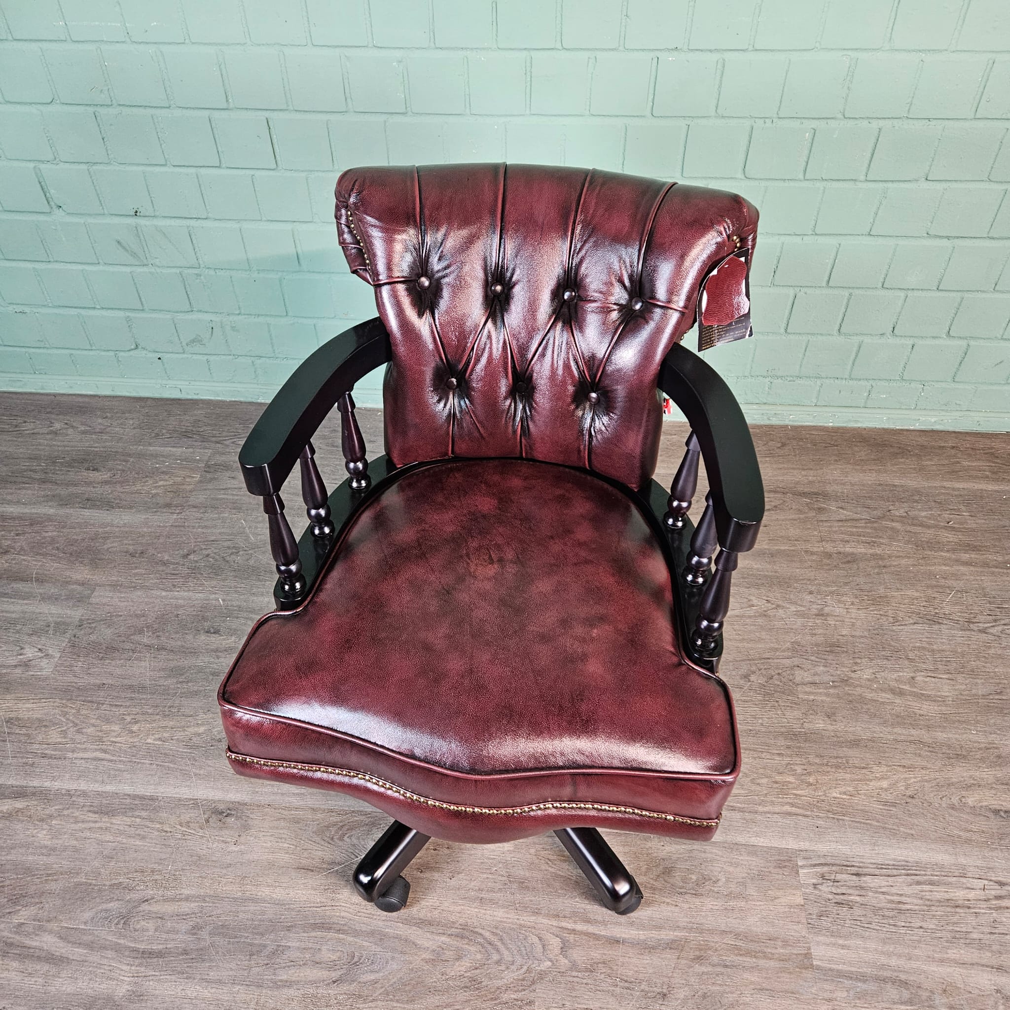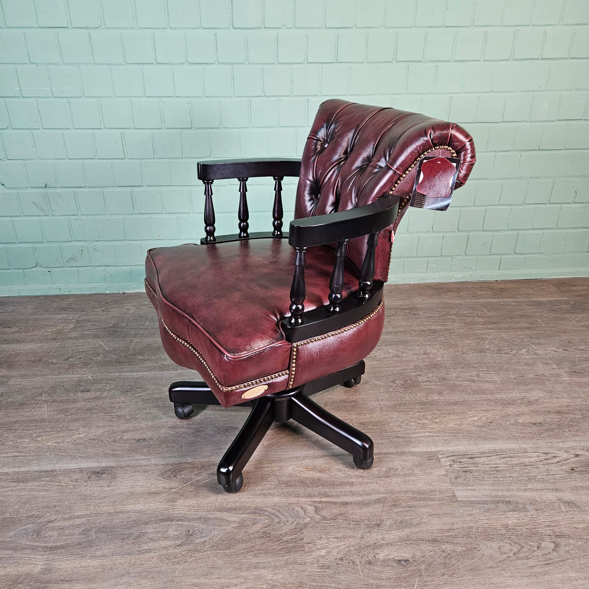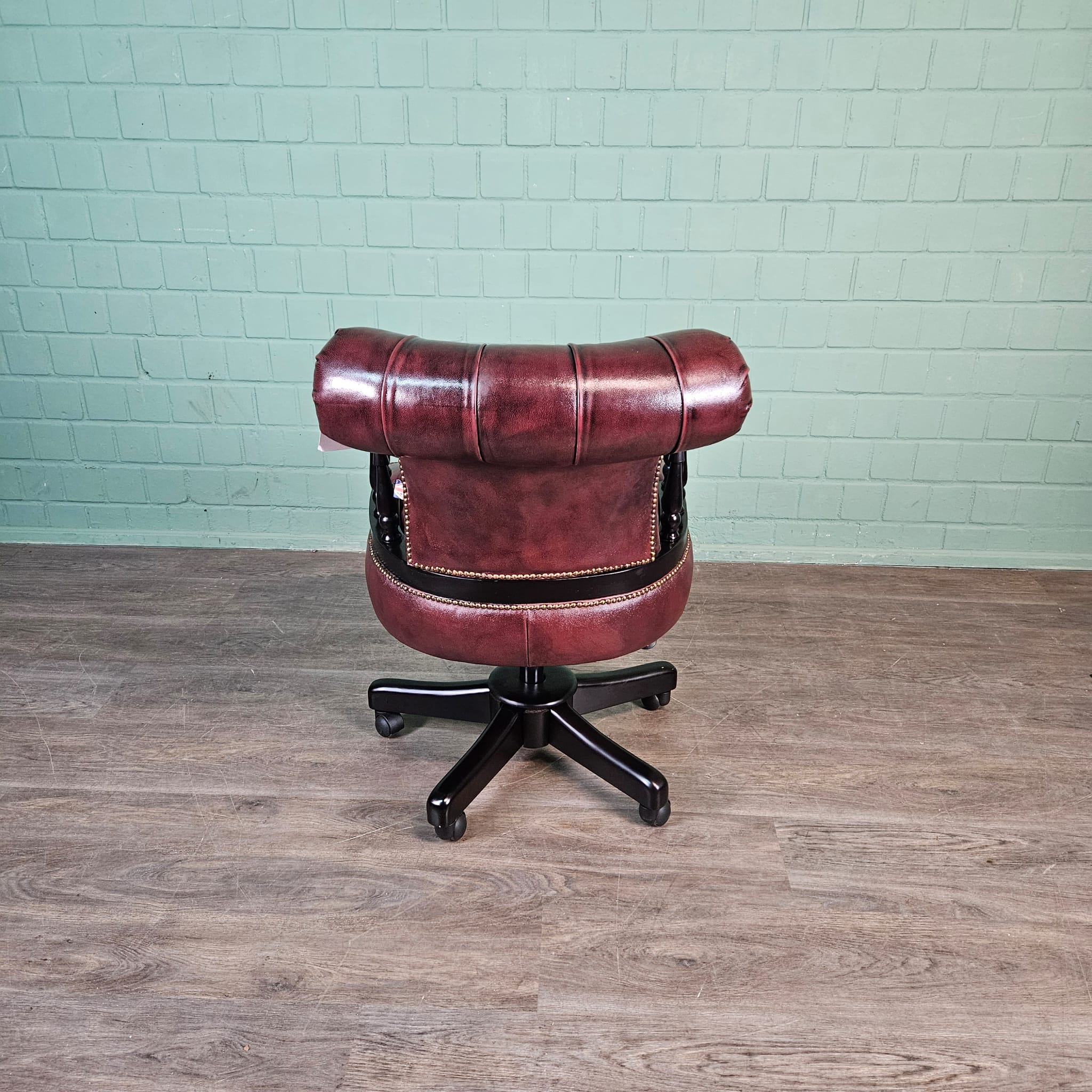 Elegante Chesterfield bureaustoel in roodbruin - Echt leer