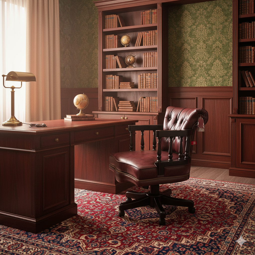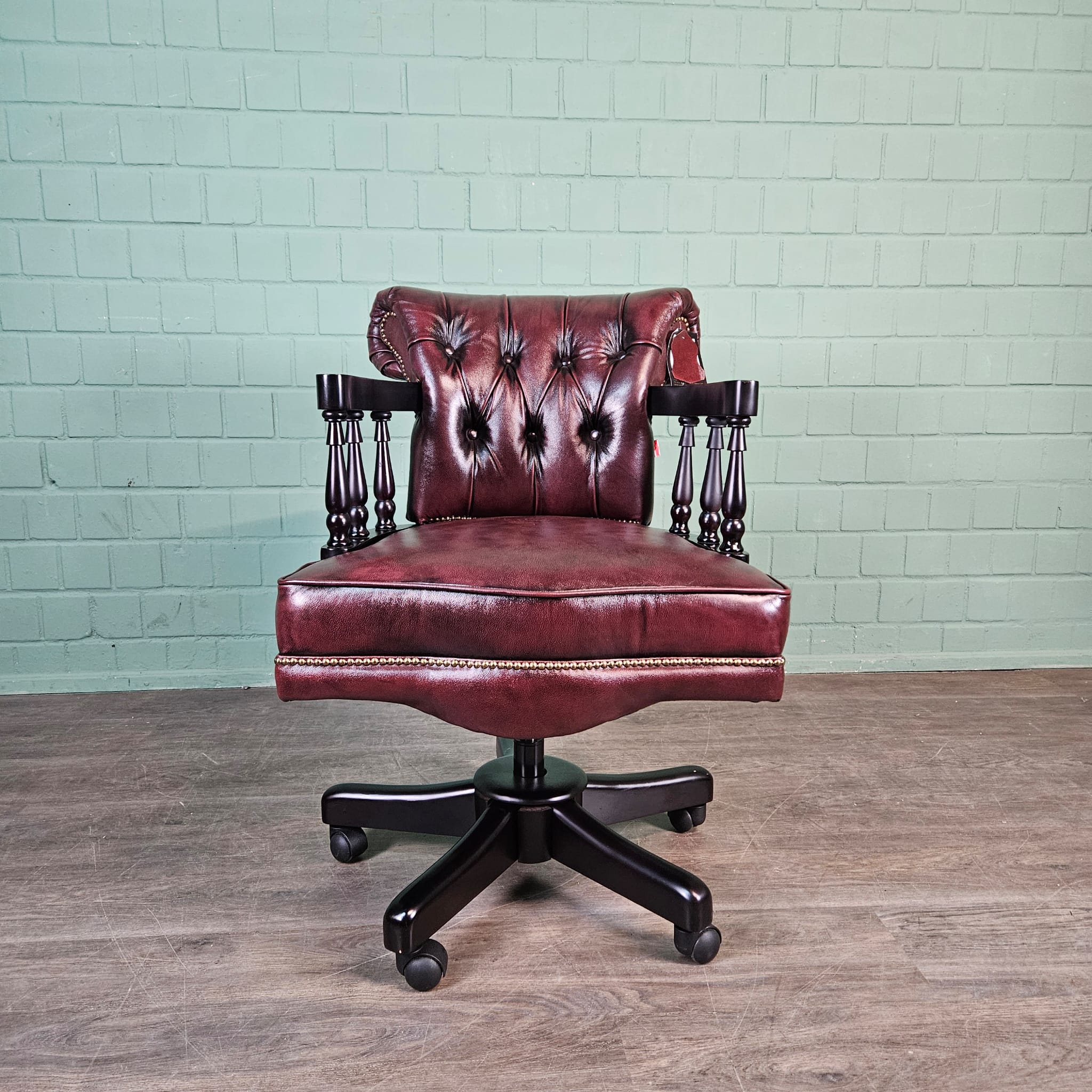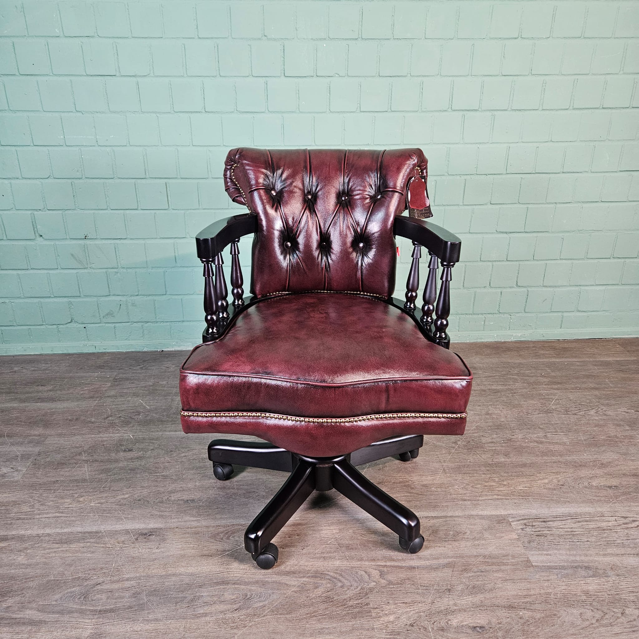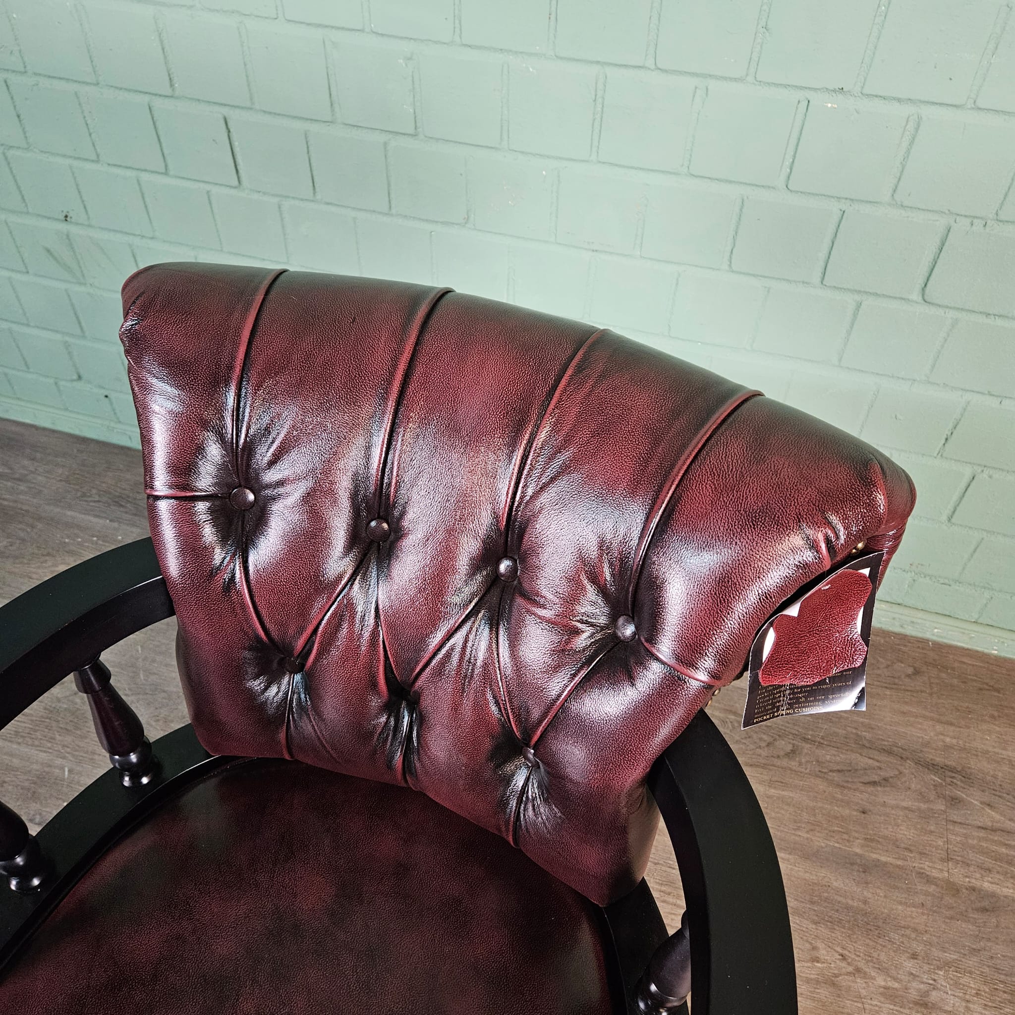 Elegante Chesterfield bureaustoel in roodbruin - Echt leer