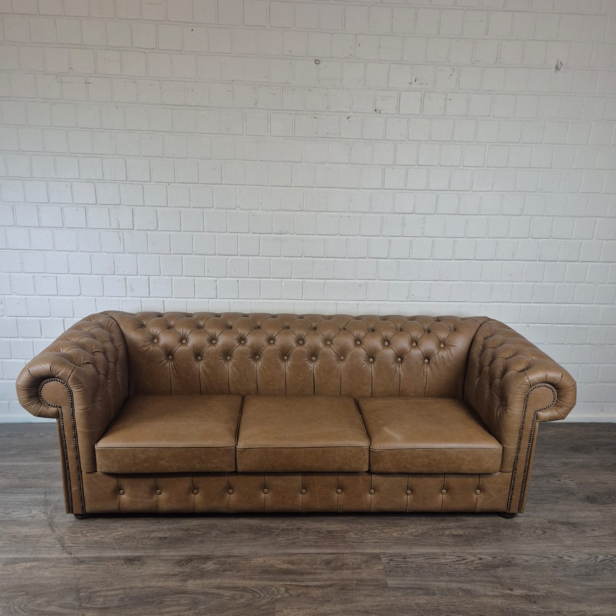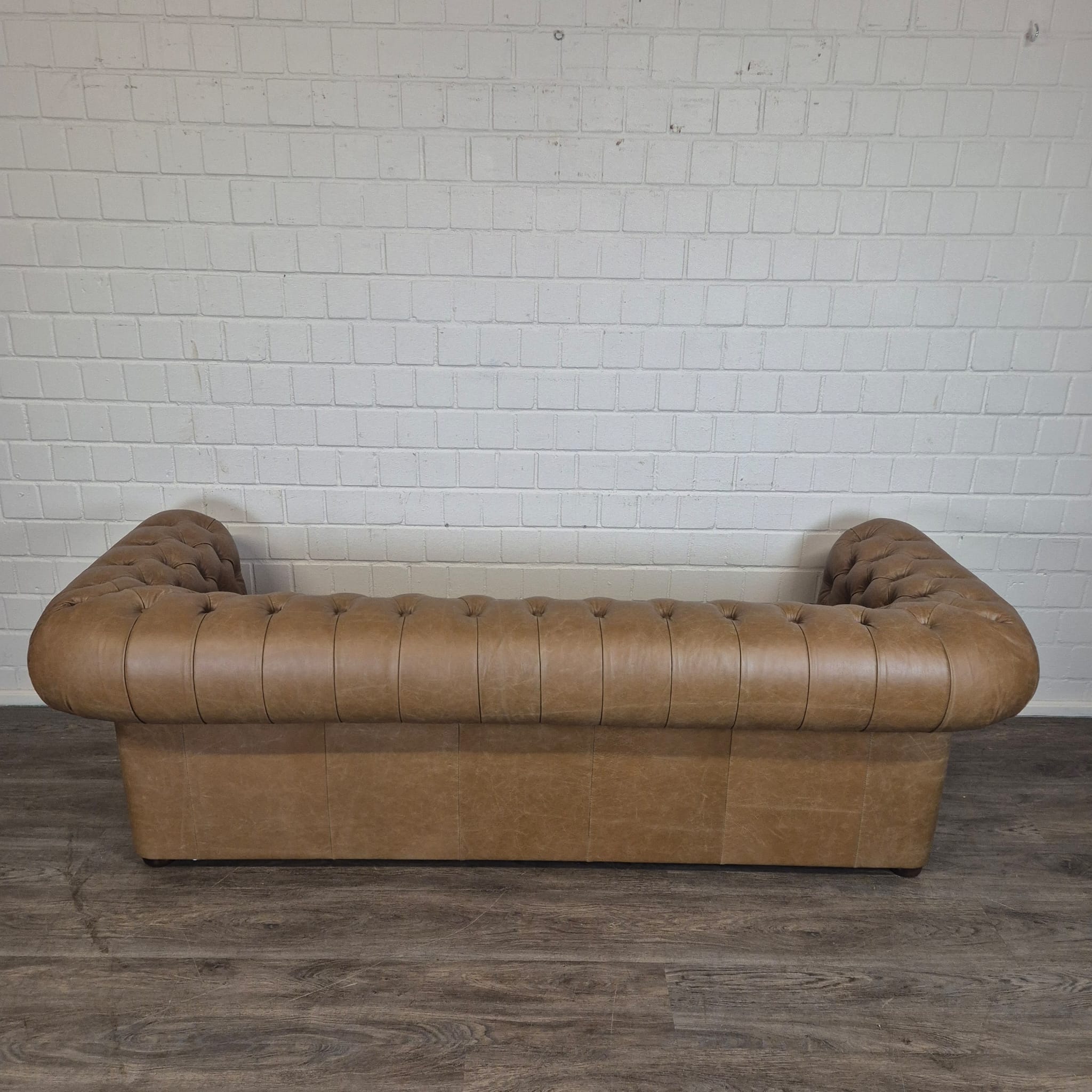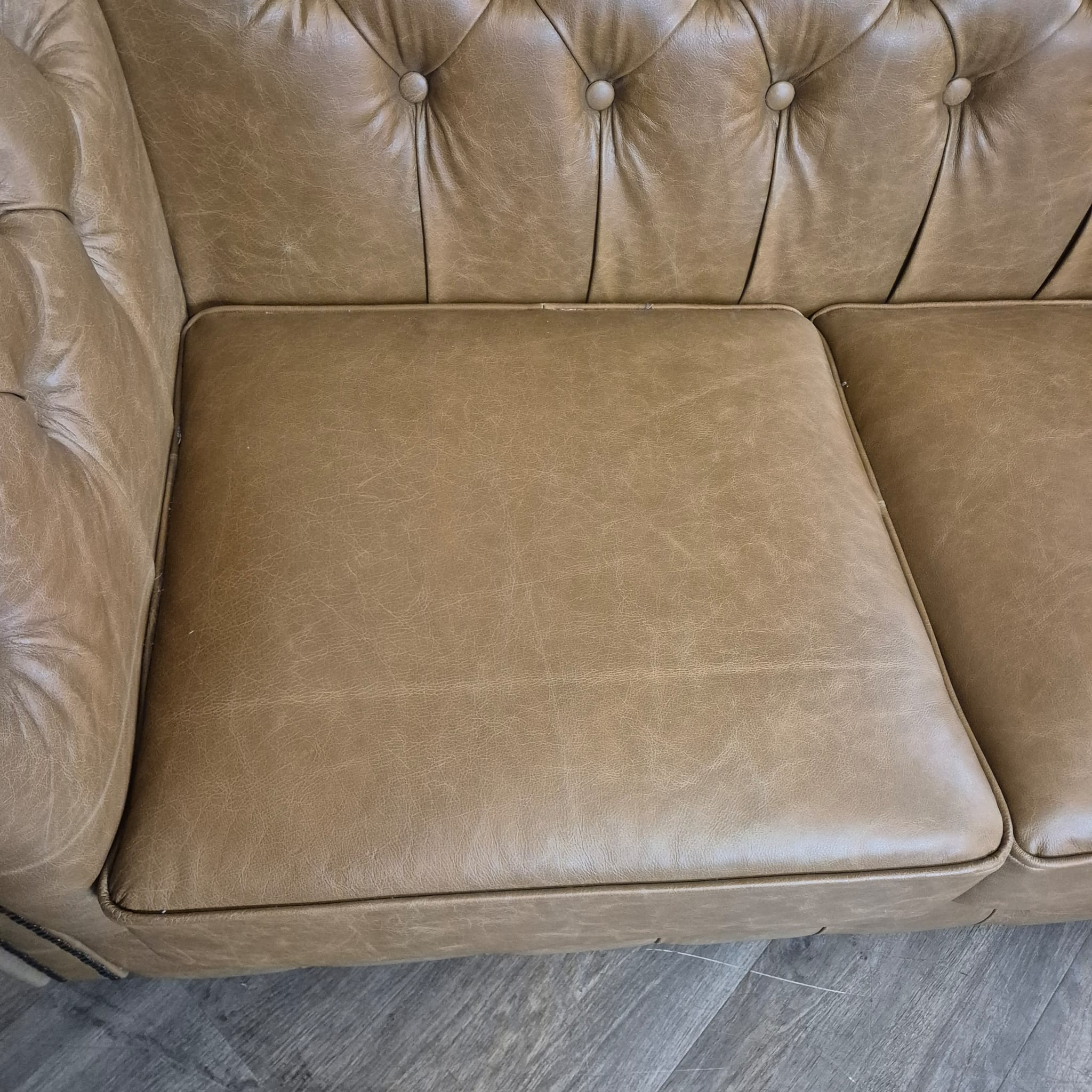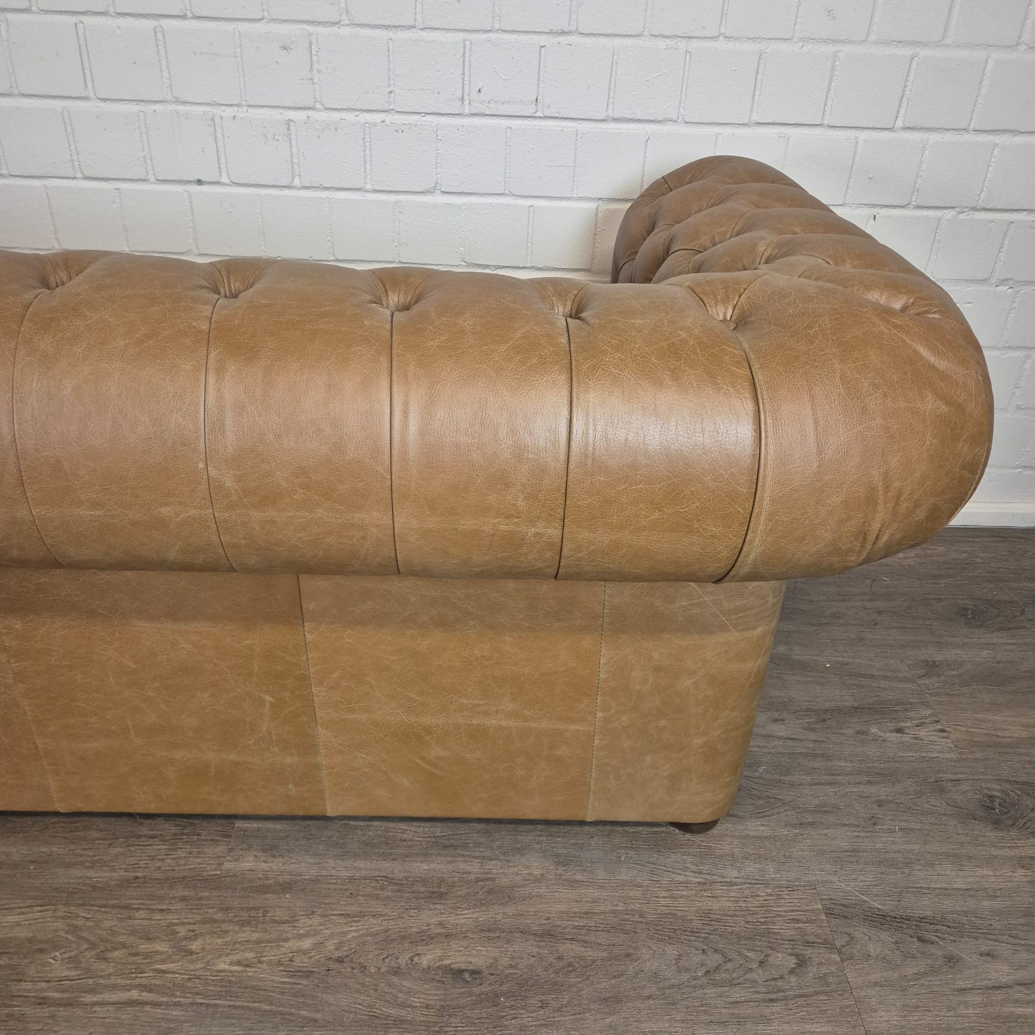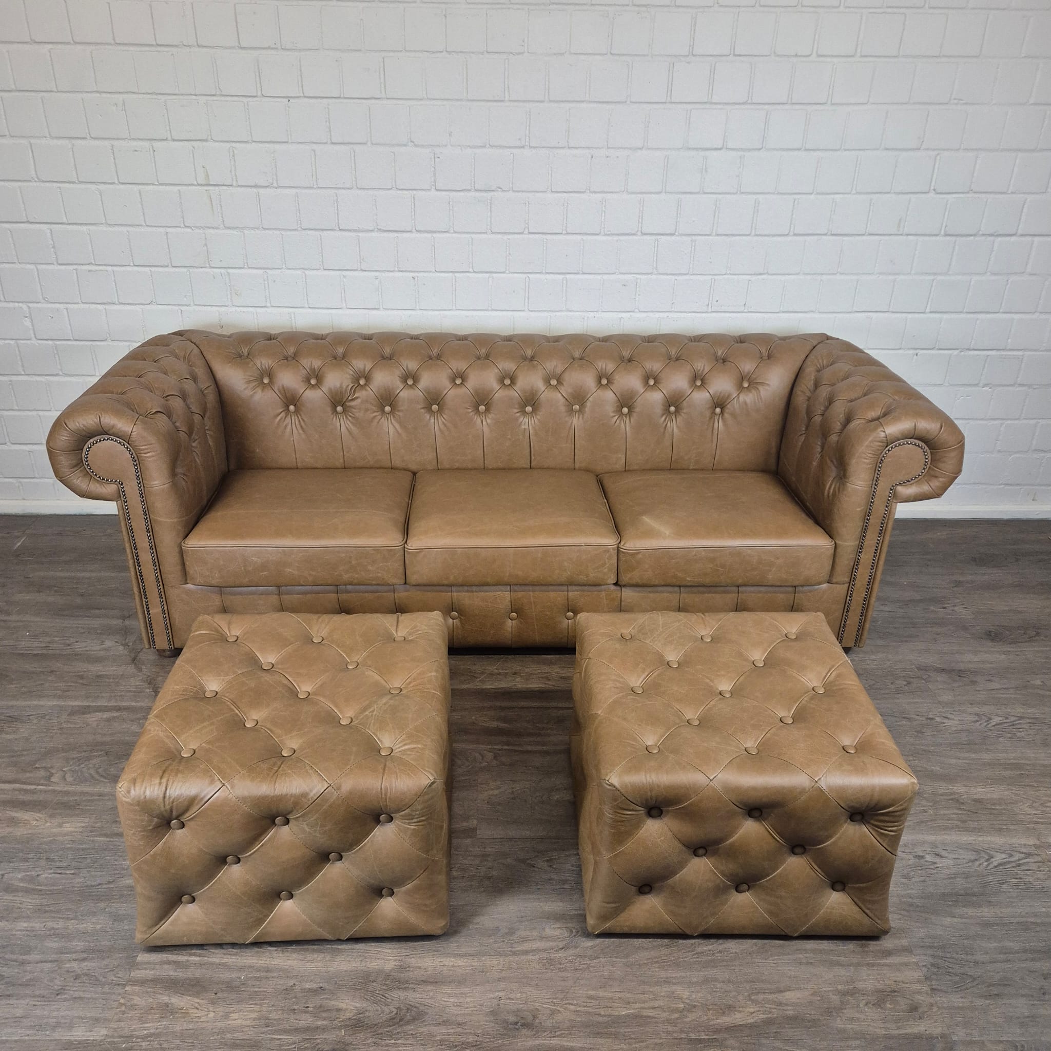 Chesterfield bank + 2 echt lederen poefen – Showmodel voor een speciale prijs