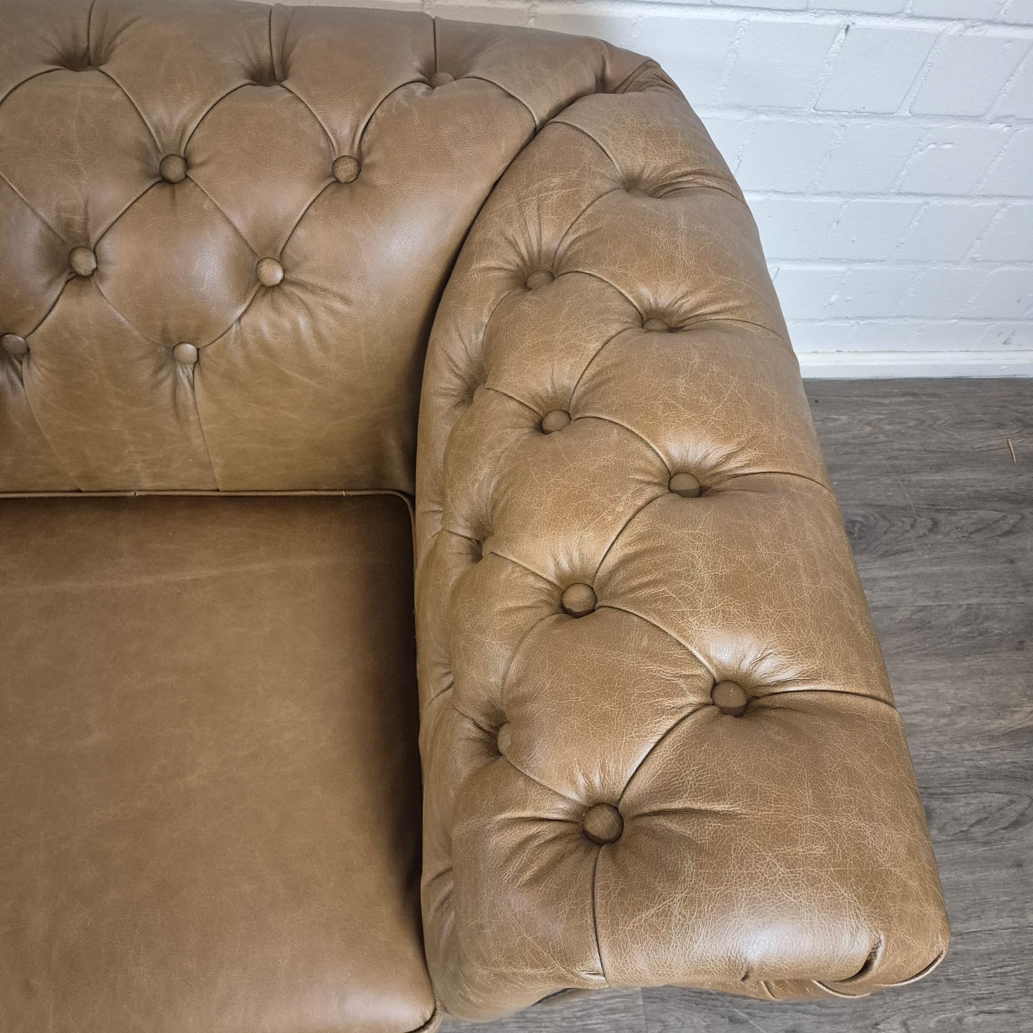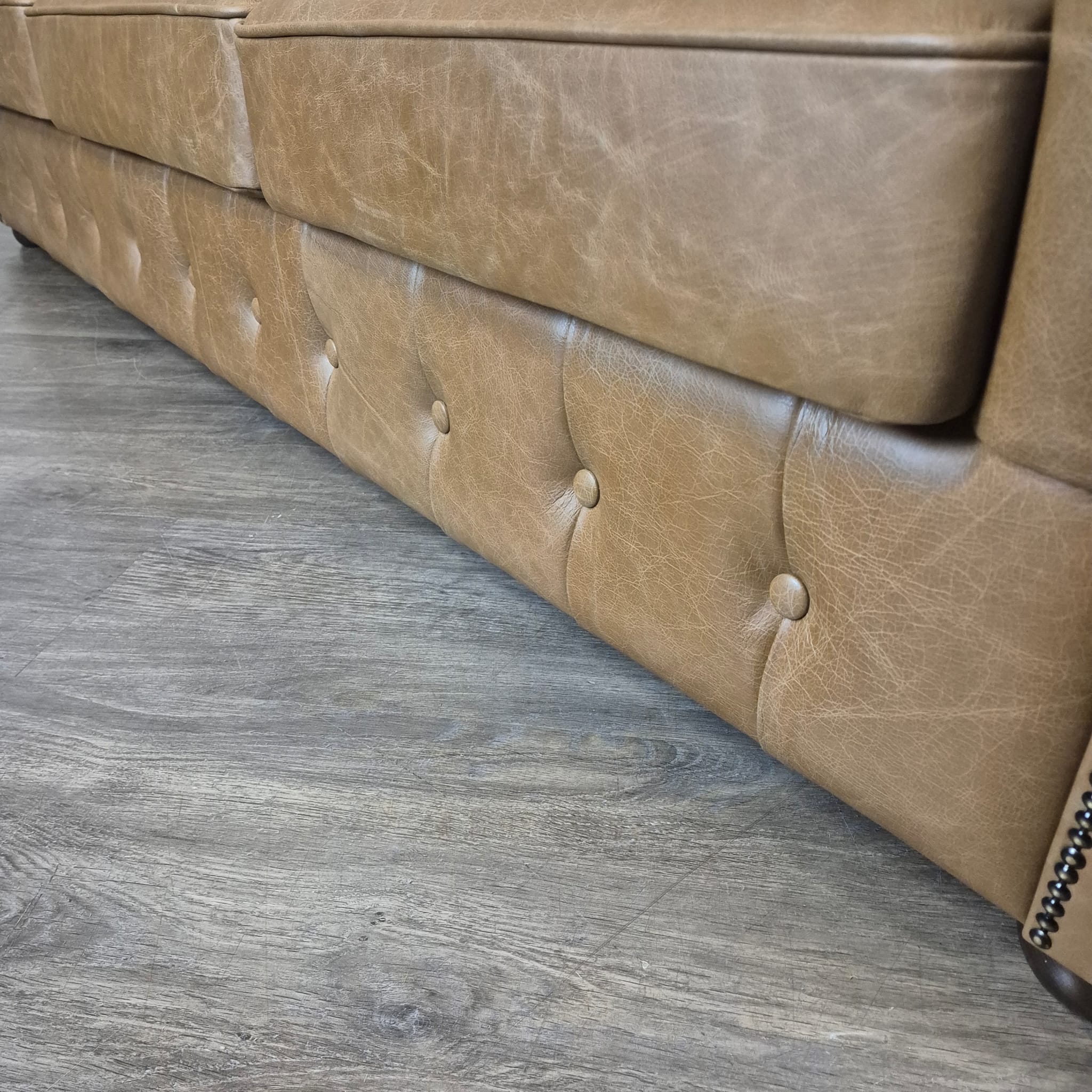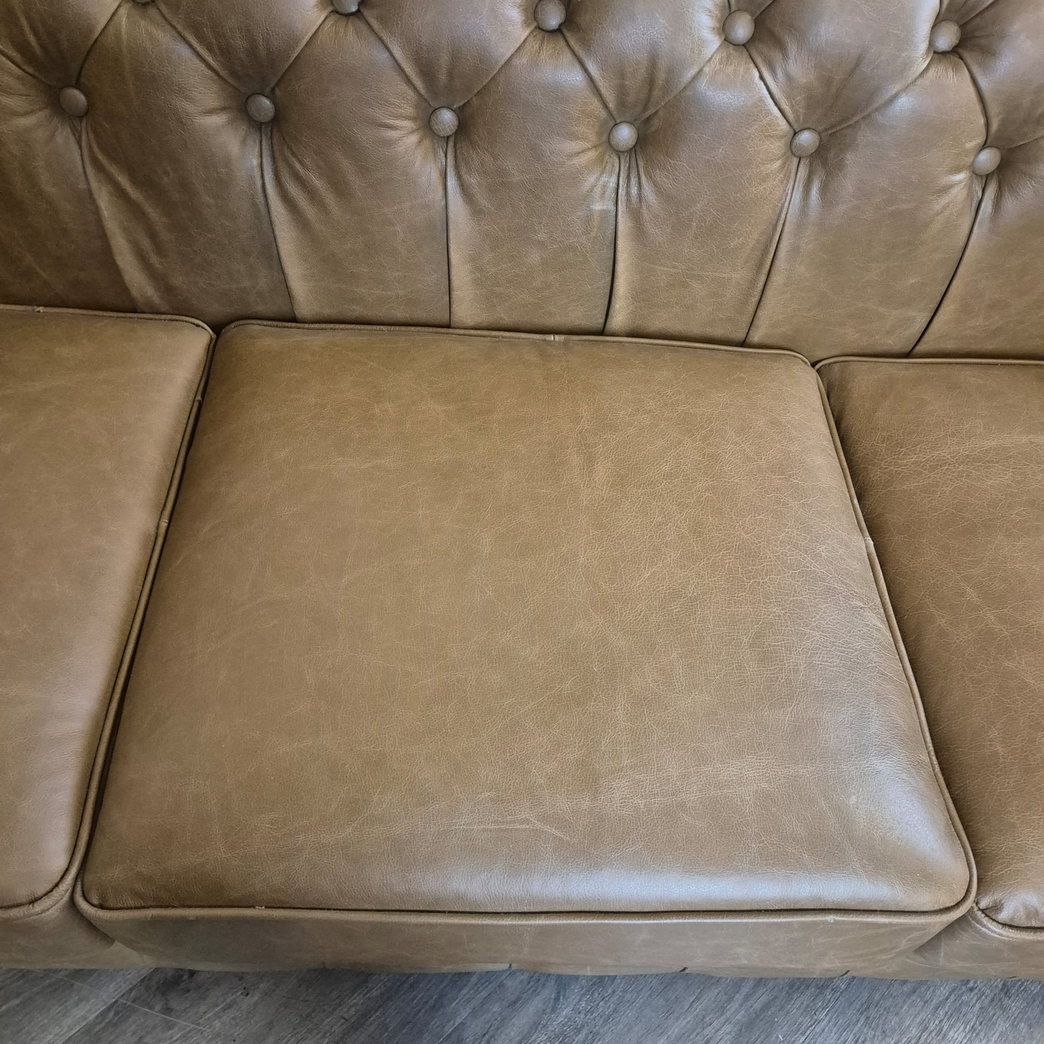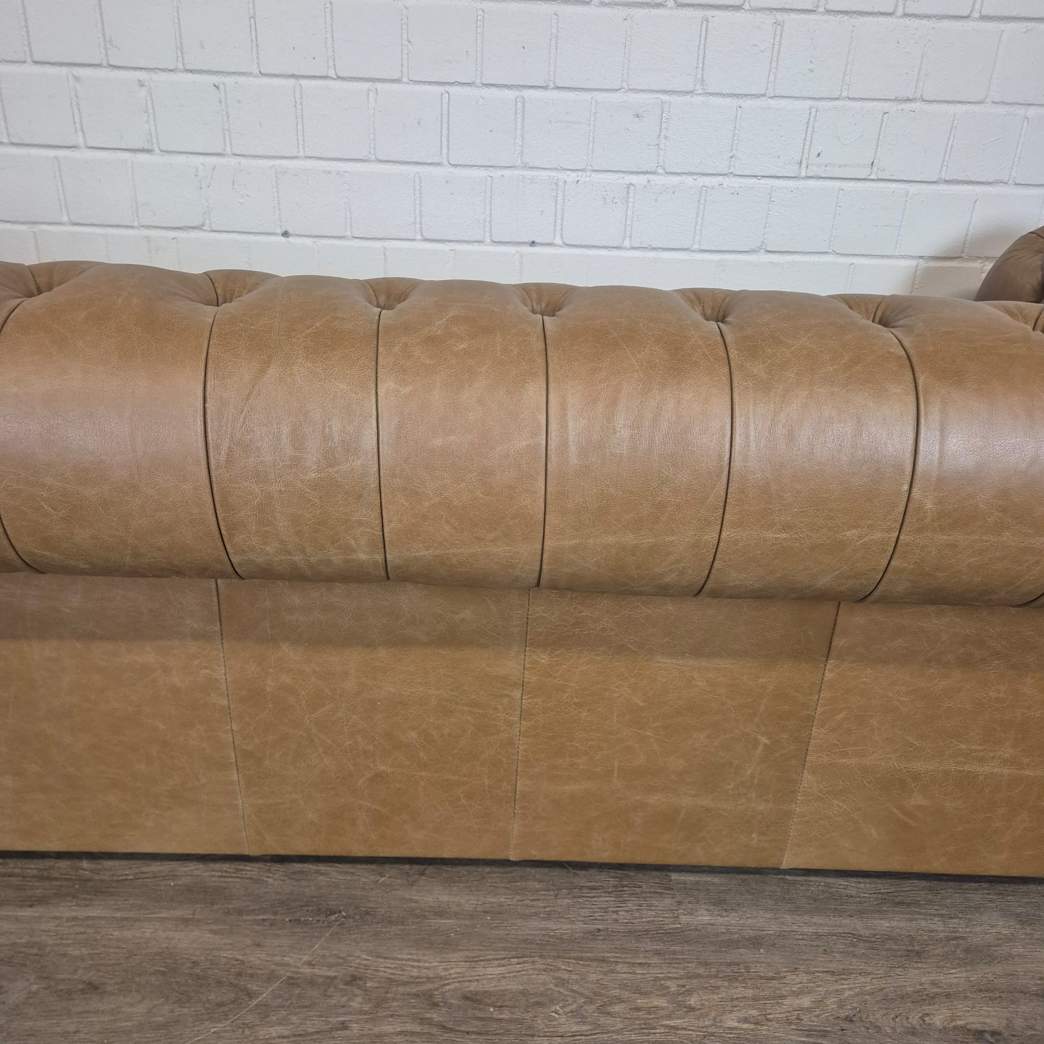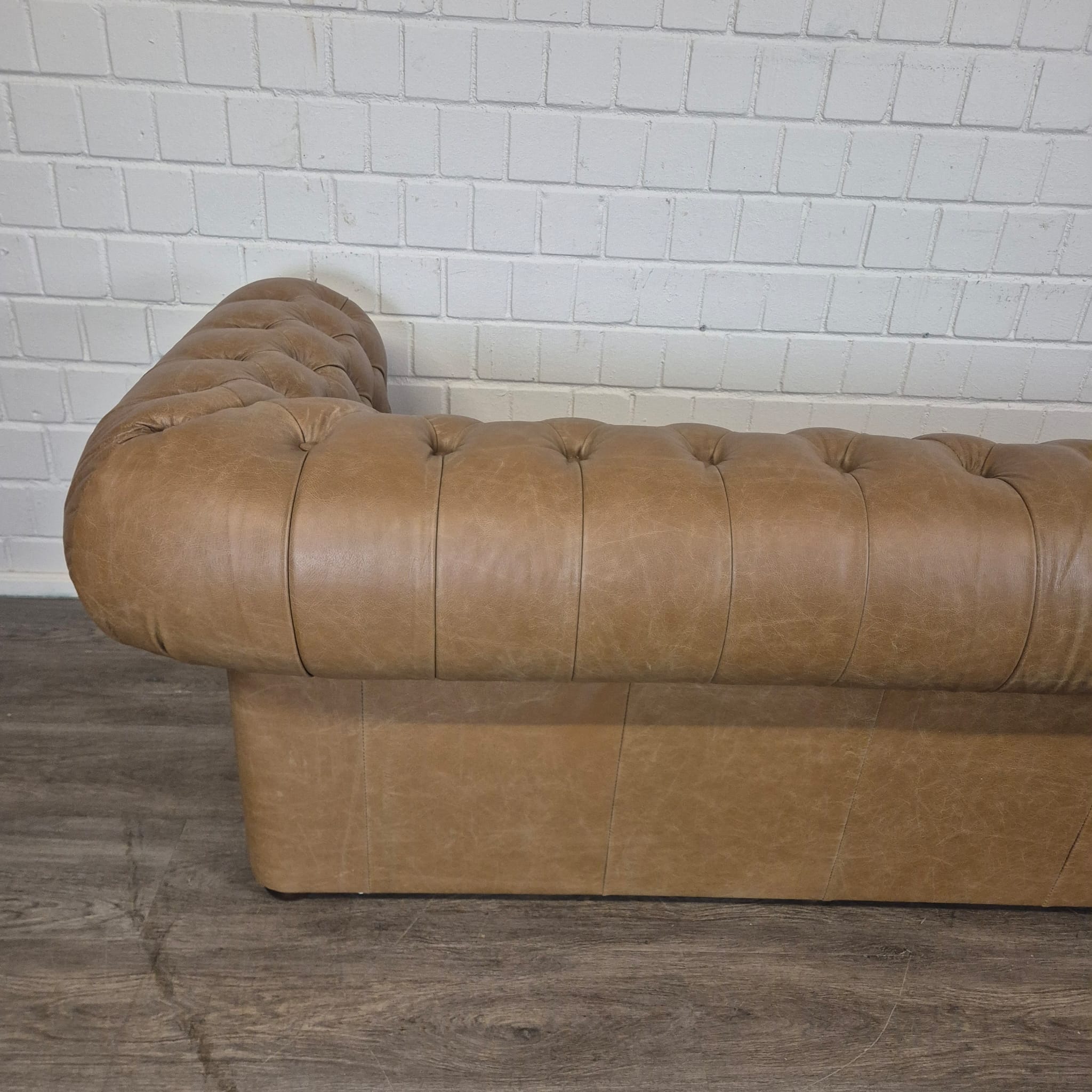 Chesterfield bank + 2 echt lederen poefen – Showmodel voor een speciale prijs