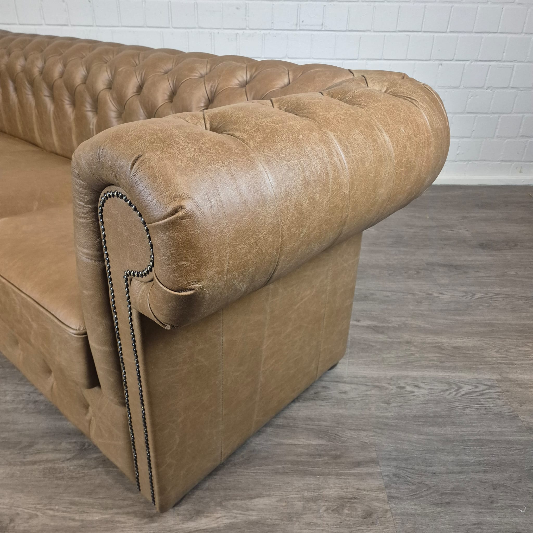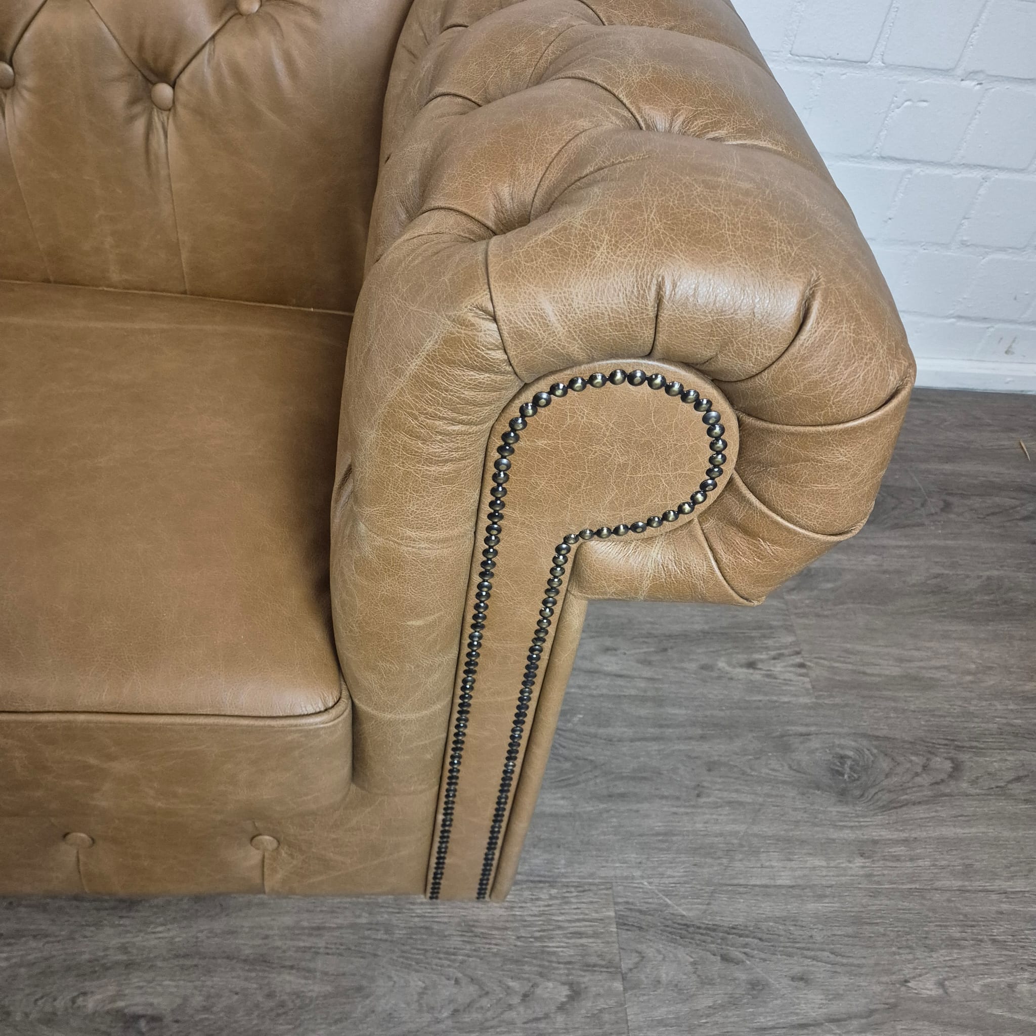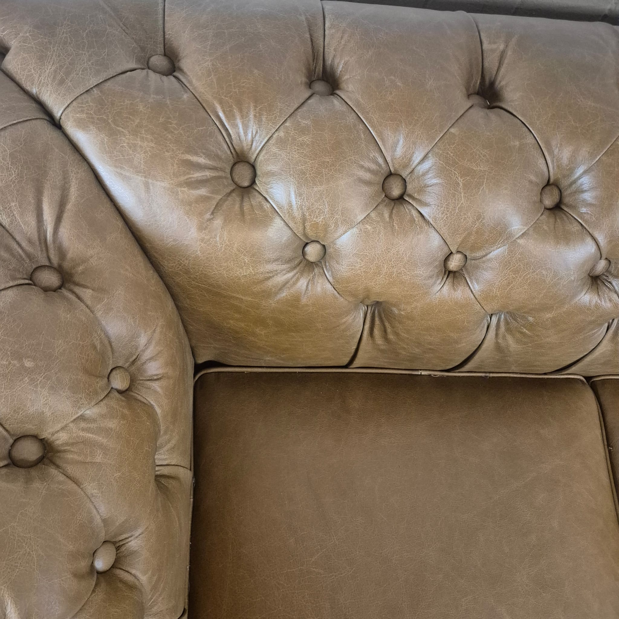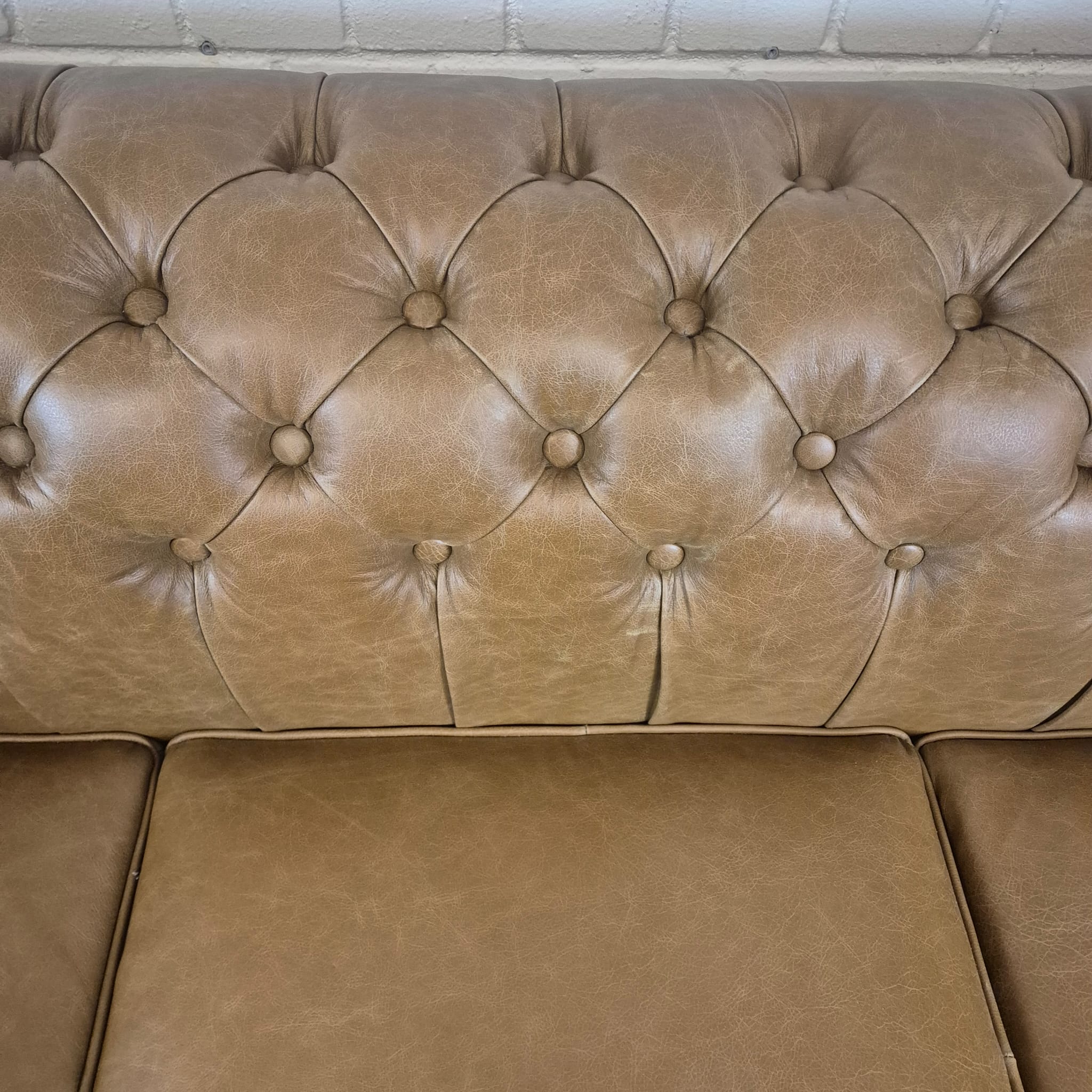 Chesterfield bank + 2 echt lederen poefen – Showmodel voor een speciale prijs
