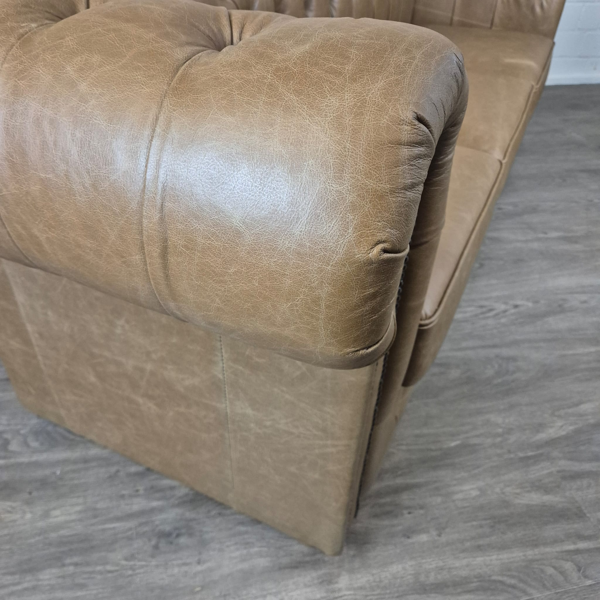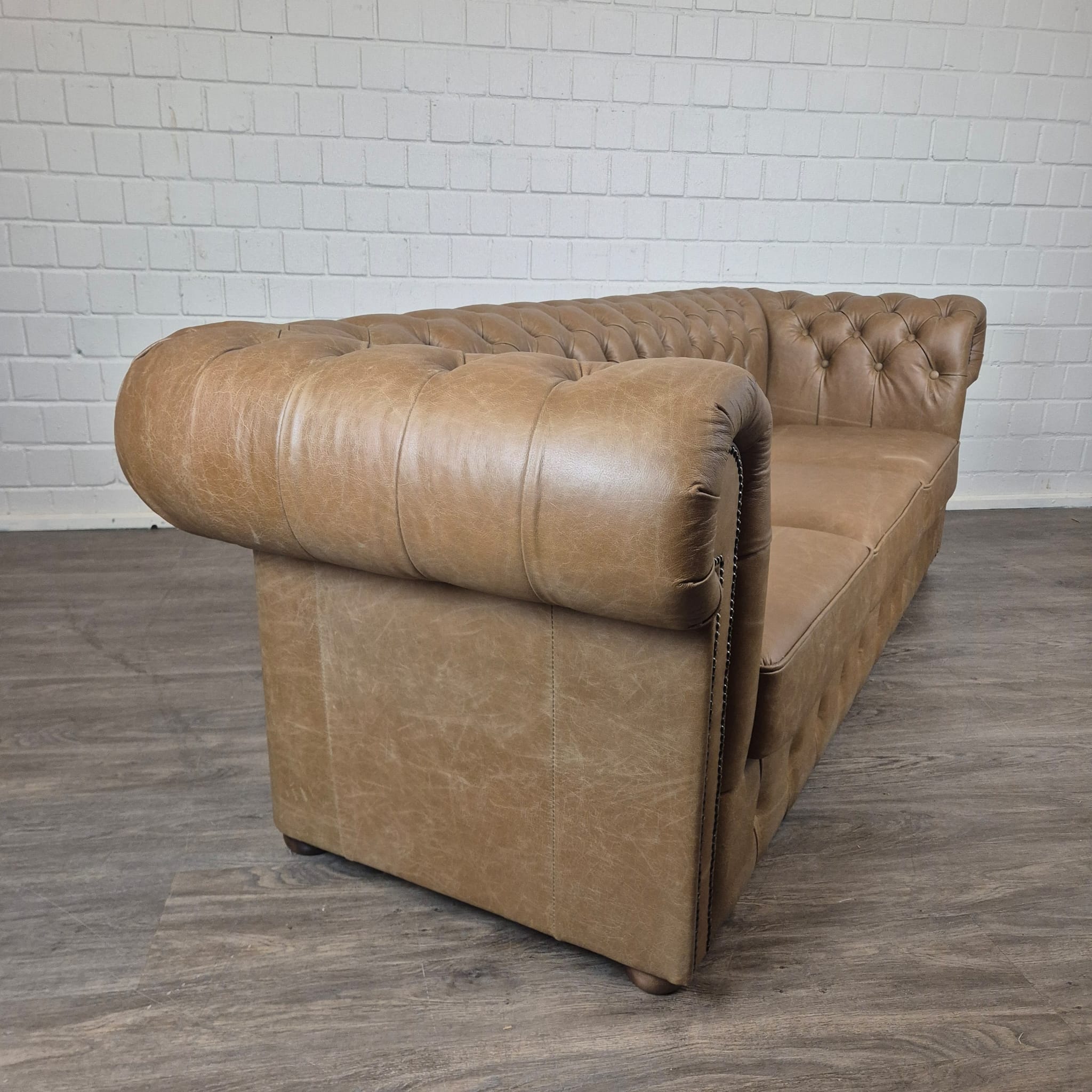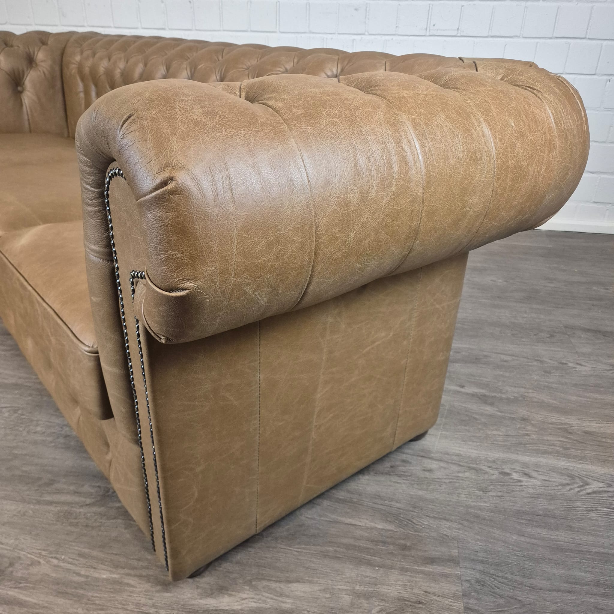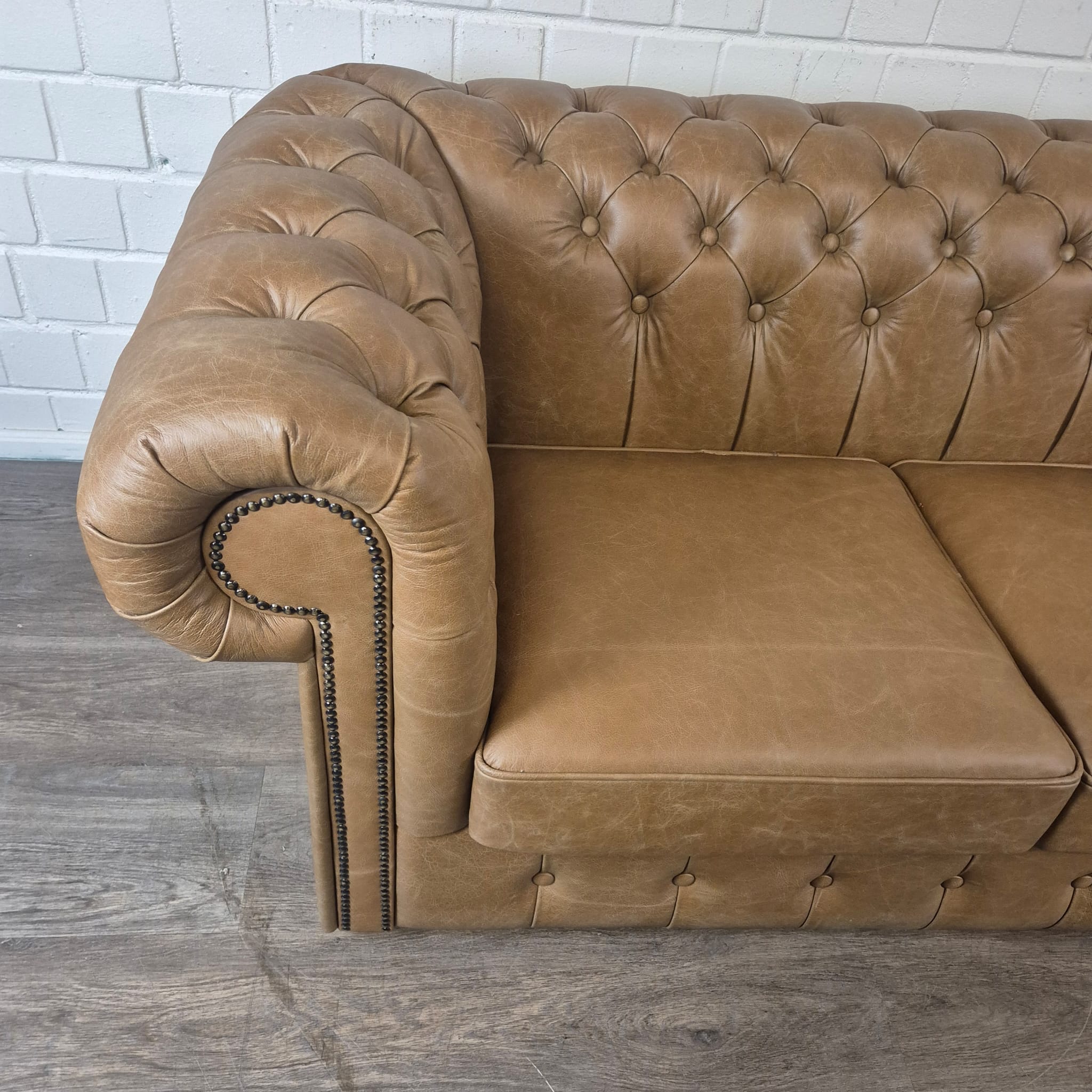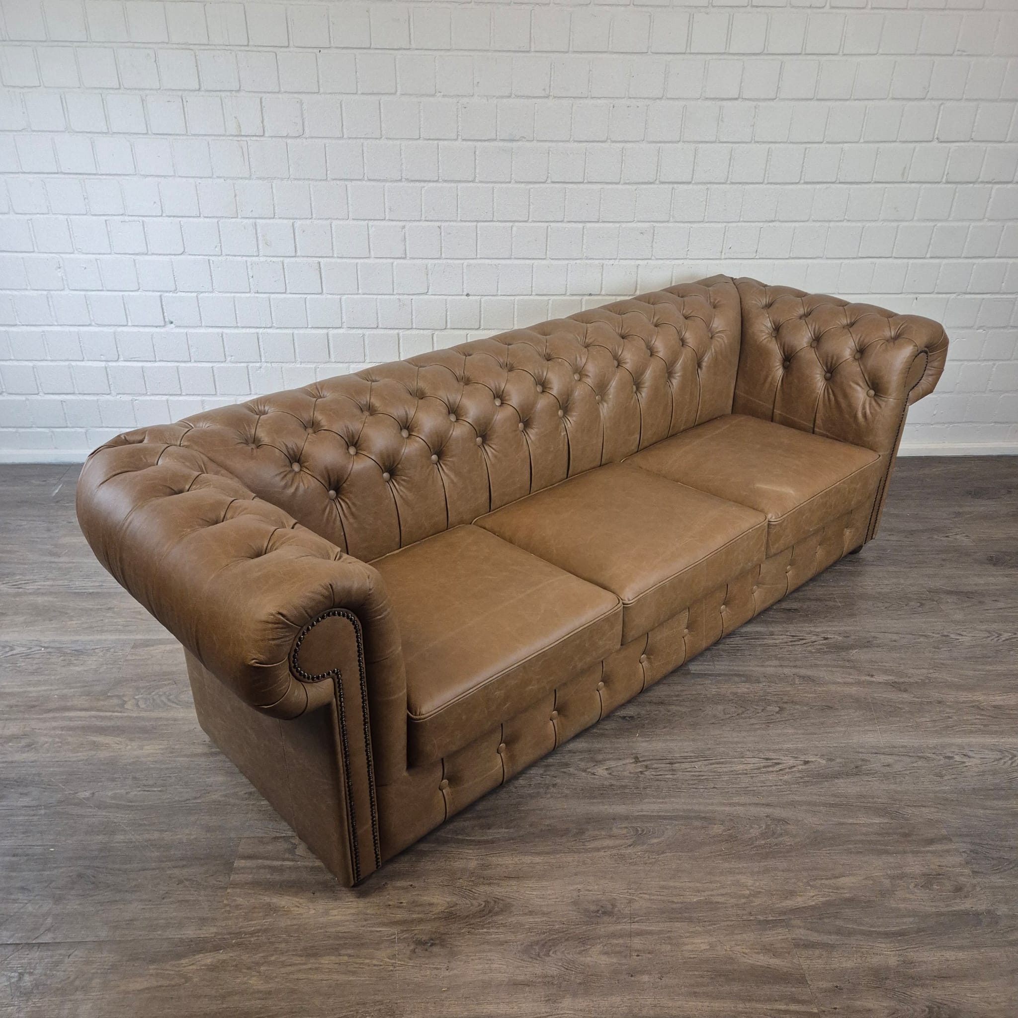 Chesterfield bank + 2 echt lederen poefen – Showmodel voor een speciale prijs