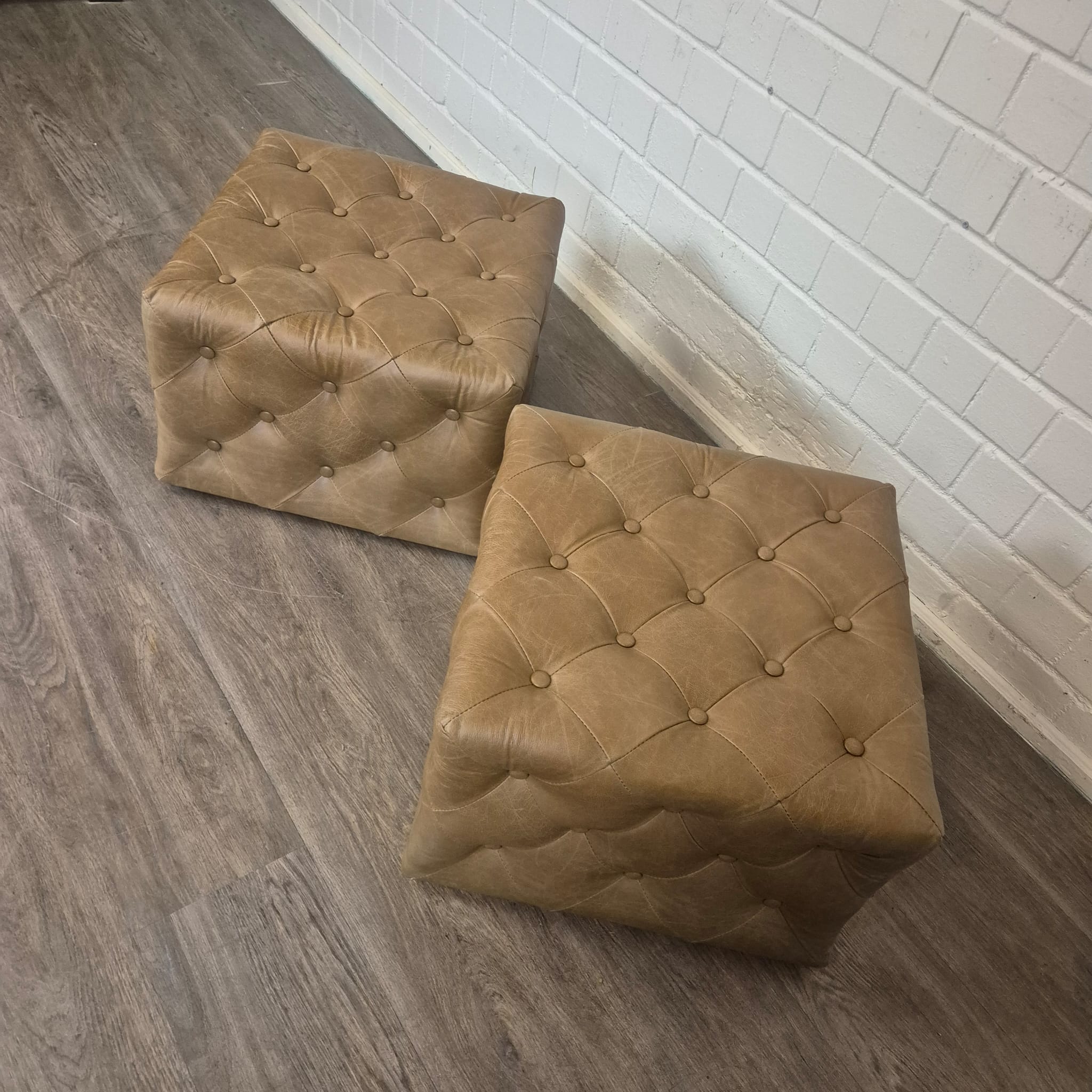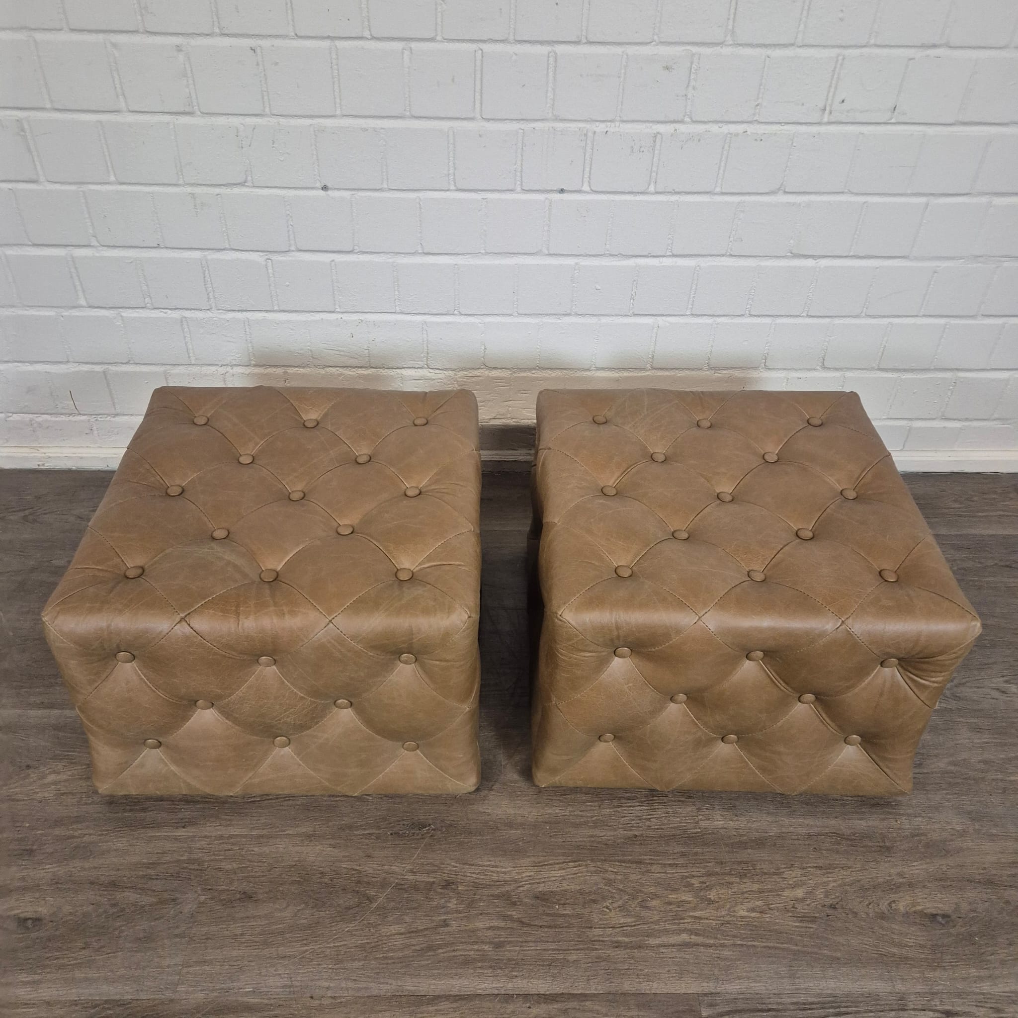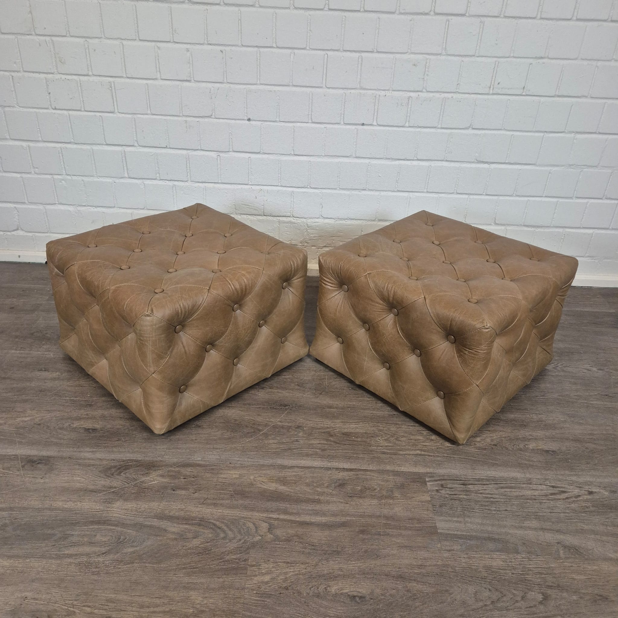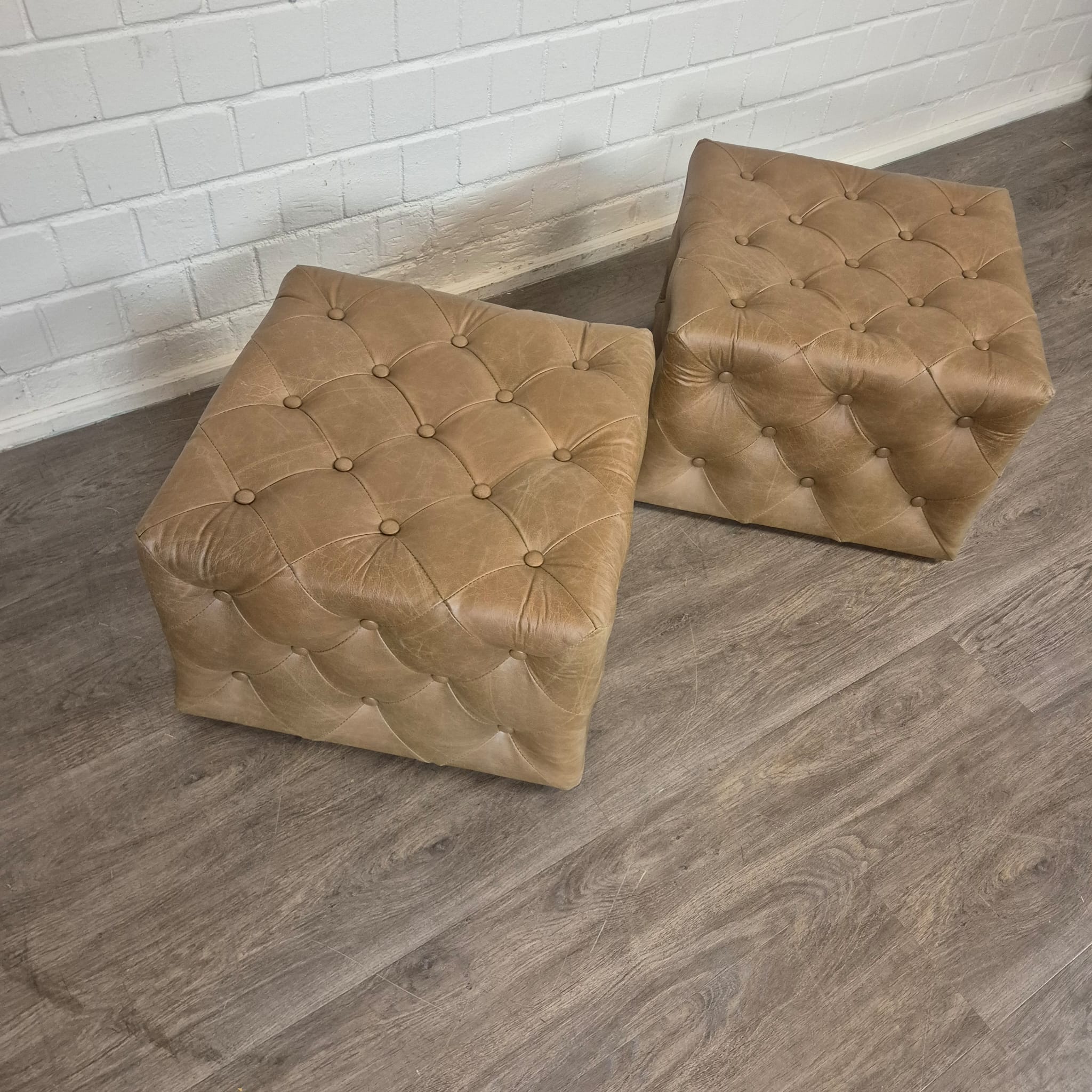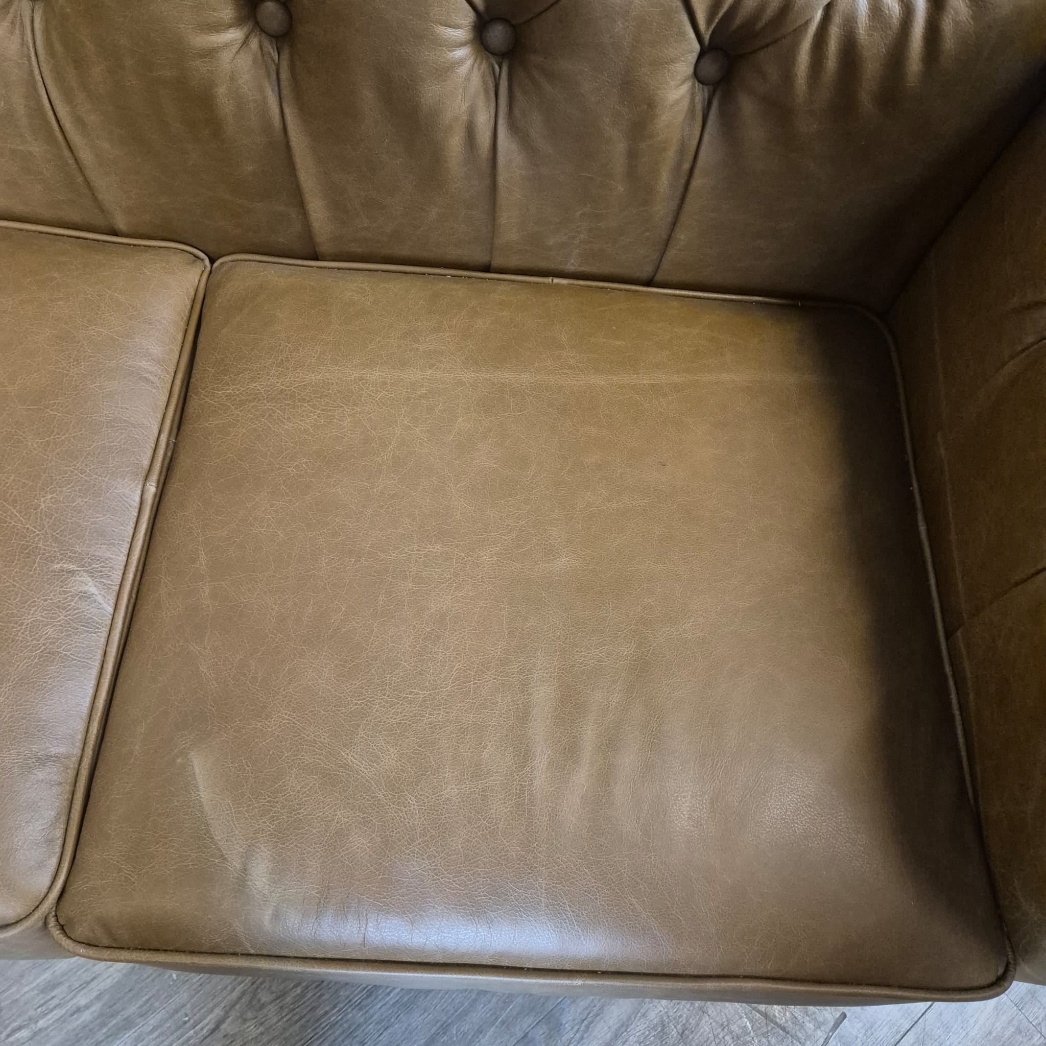 Chesterfield bank + 2 echt lederen poefen – Showmodel voor een speciale prijs