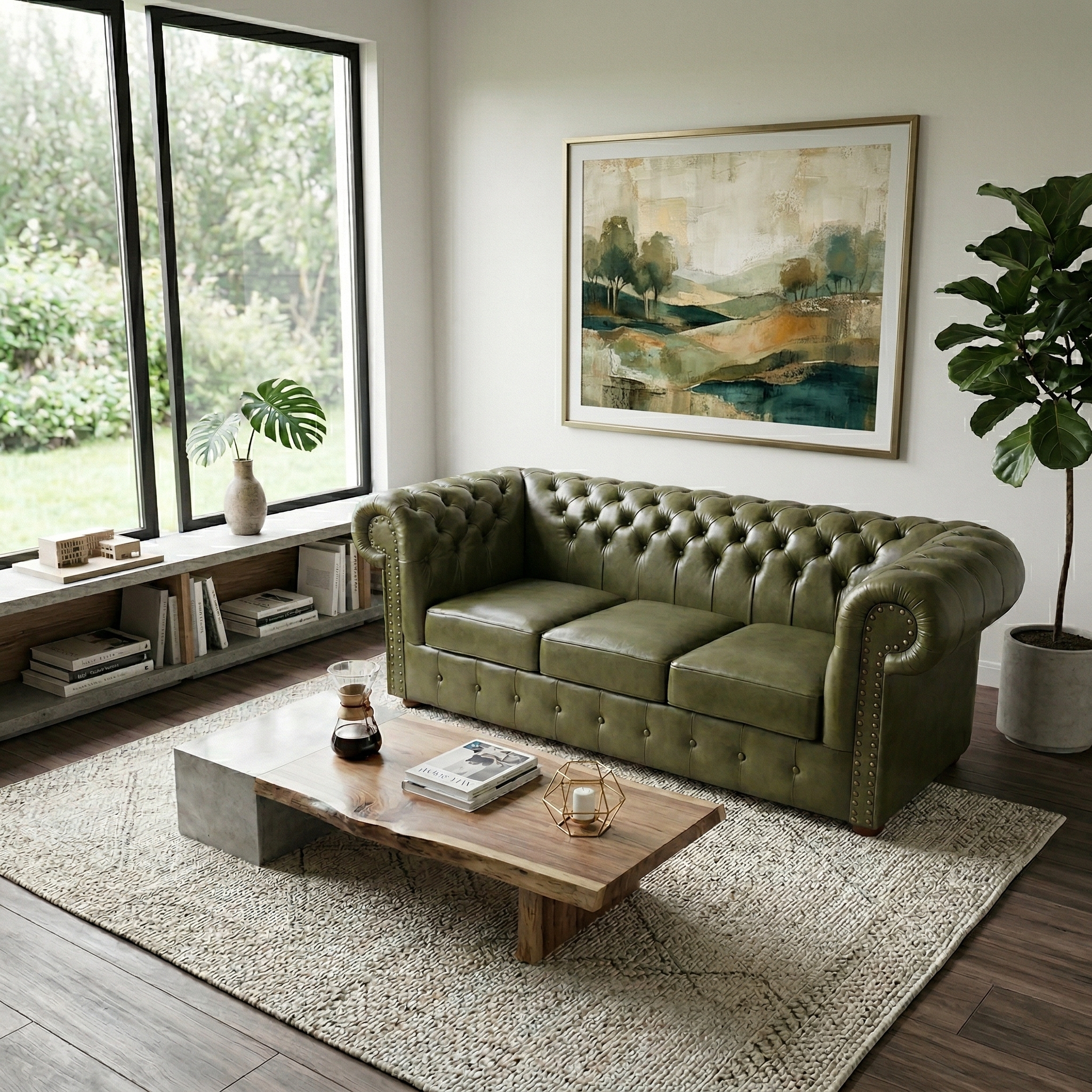 Chesterfield Bank Leder Olijf 2,00 m