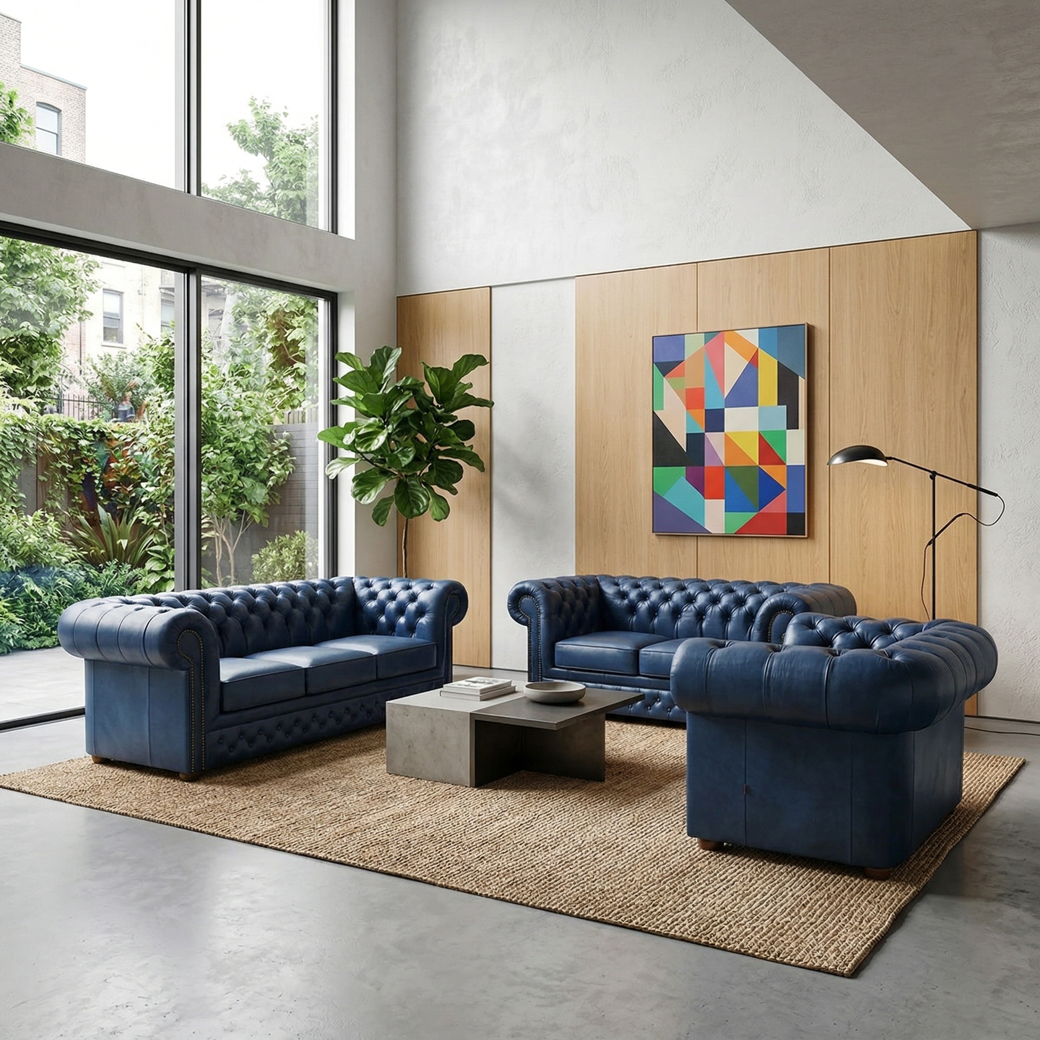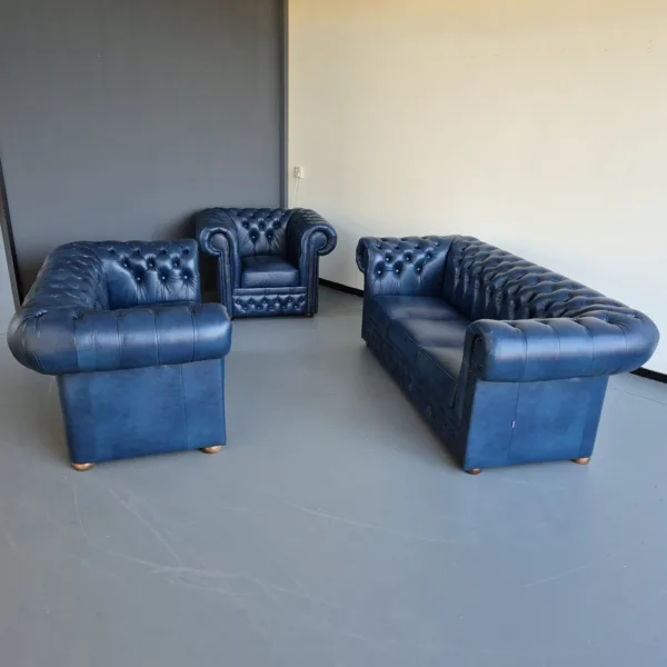 Chesterfield Bankstel Blauw 3-2-1 Leder