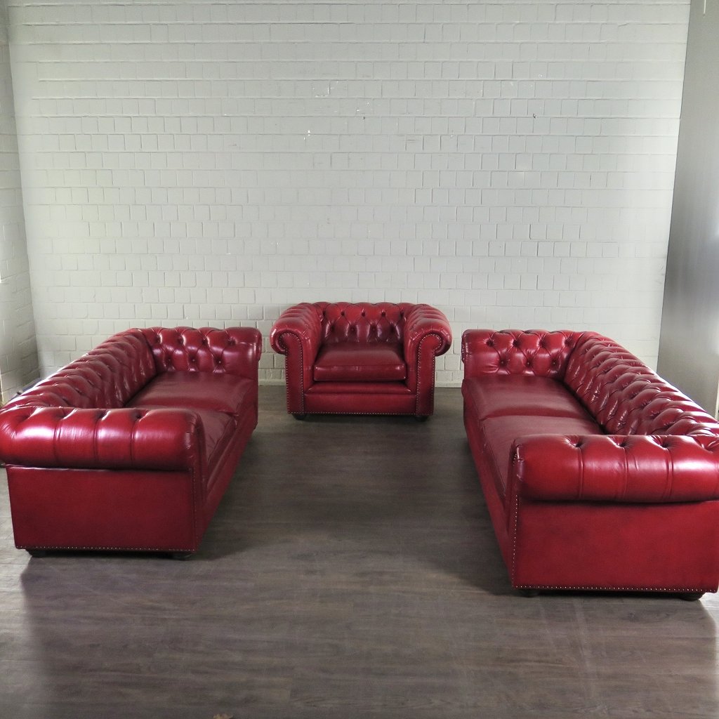 Chesterfield Bankstel Leder Rood