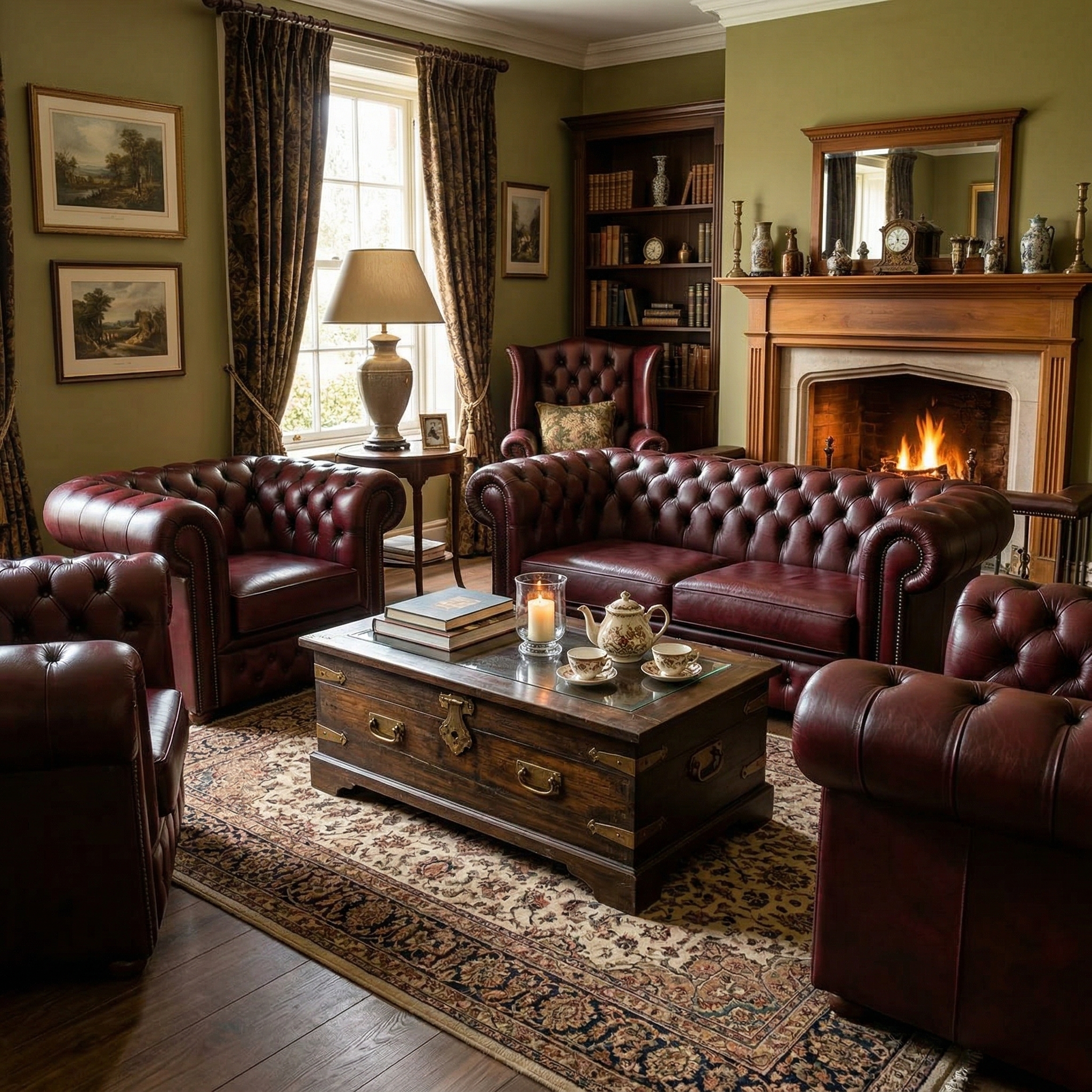 Chesterfield Bankstel Rood-Bruin 2-1-1-1 Leder