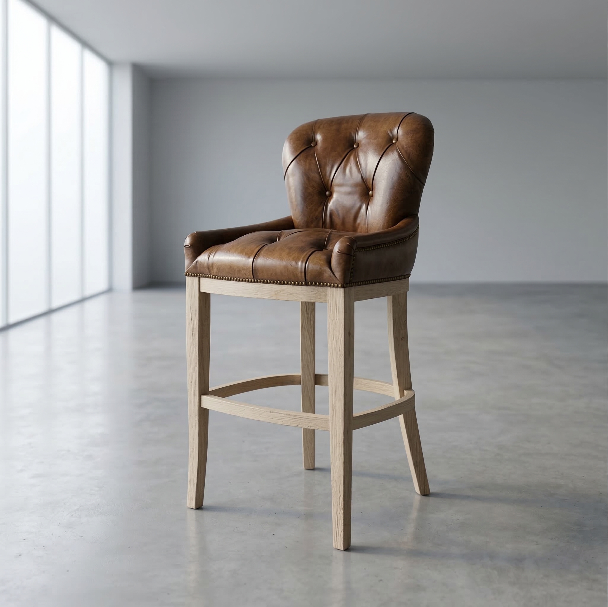 Hoogwaardige barkruk met echt leder in Chesterfield stijl. Prijs per stuk.