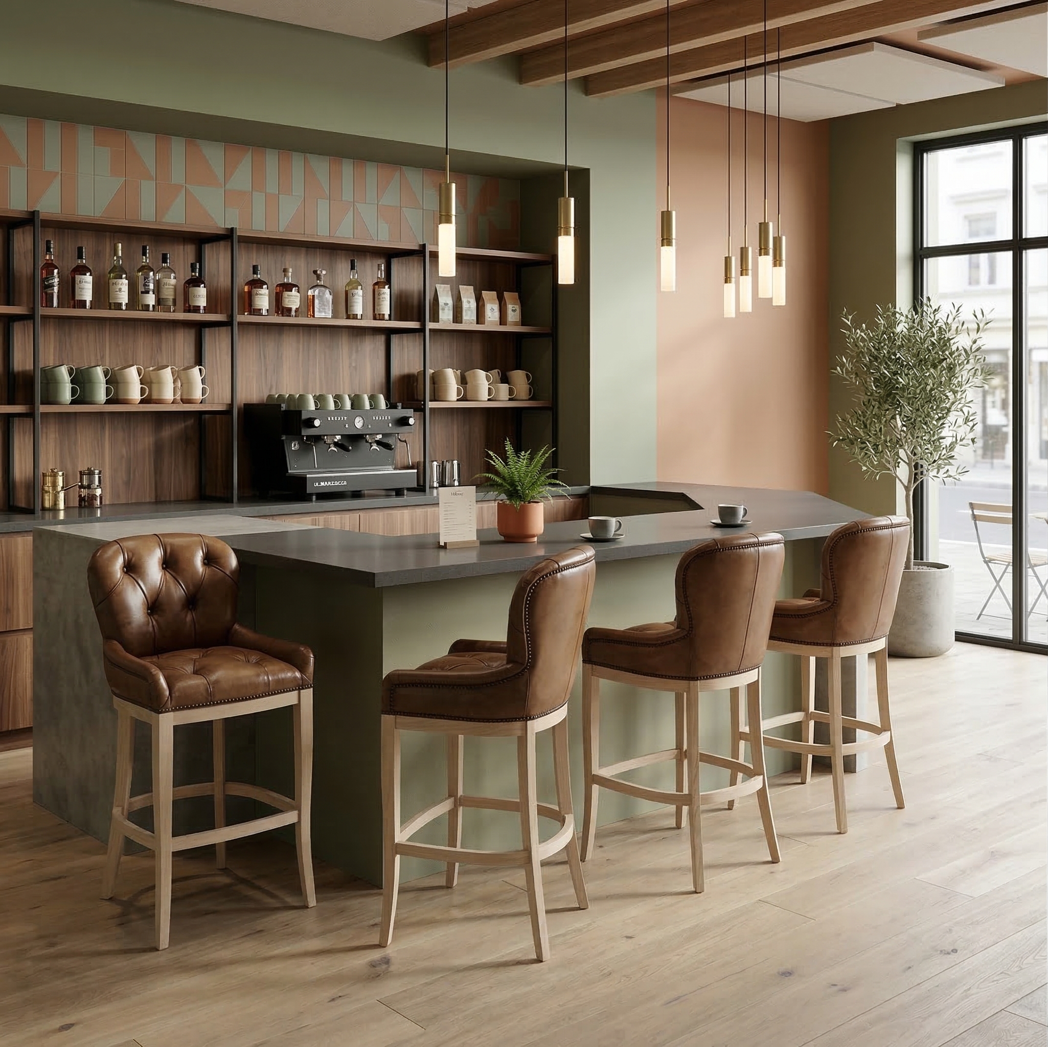 Chesterfield Barkruk Leder – Bruin