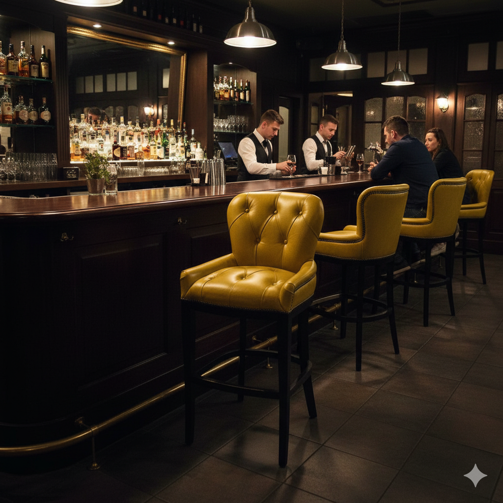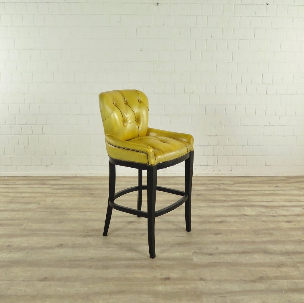 Chesterfield Barkruk met lederen gele bekleding. Stukprijs.