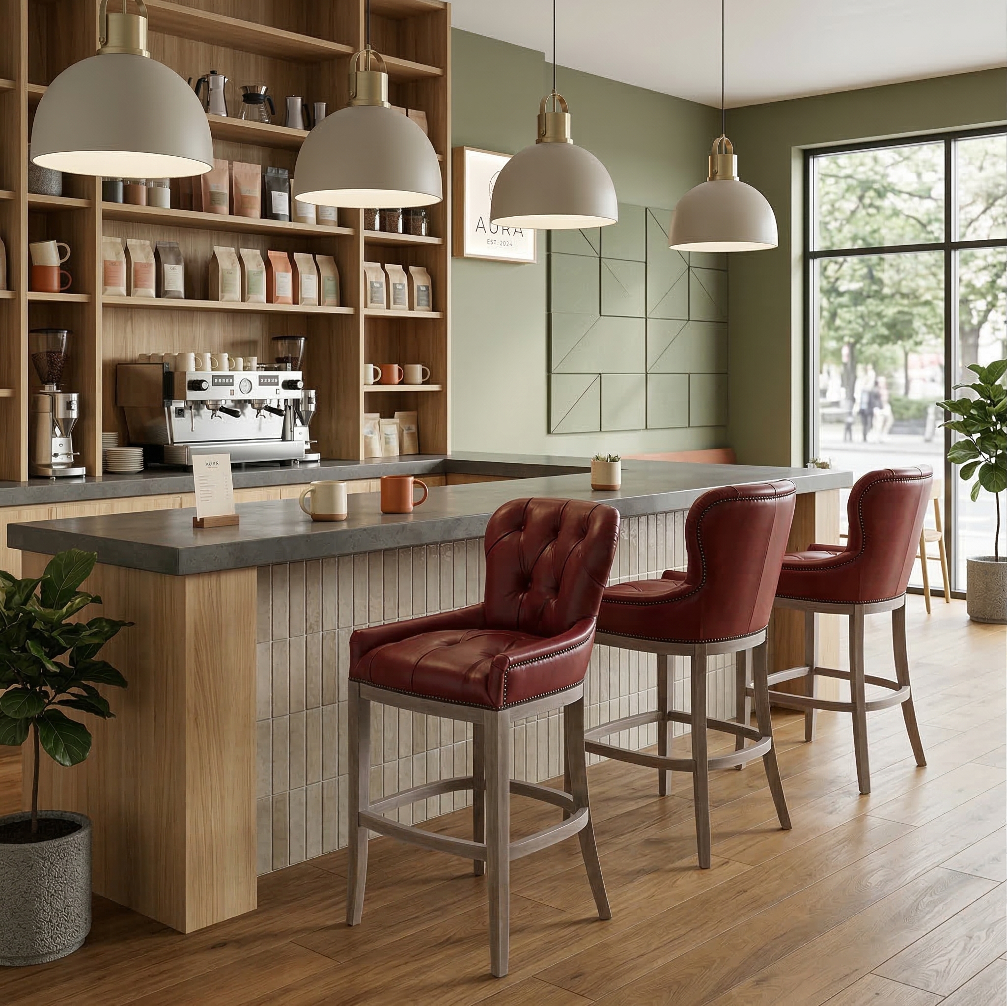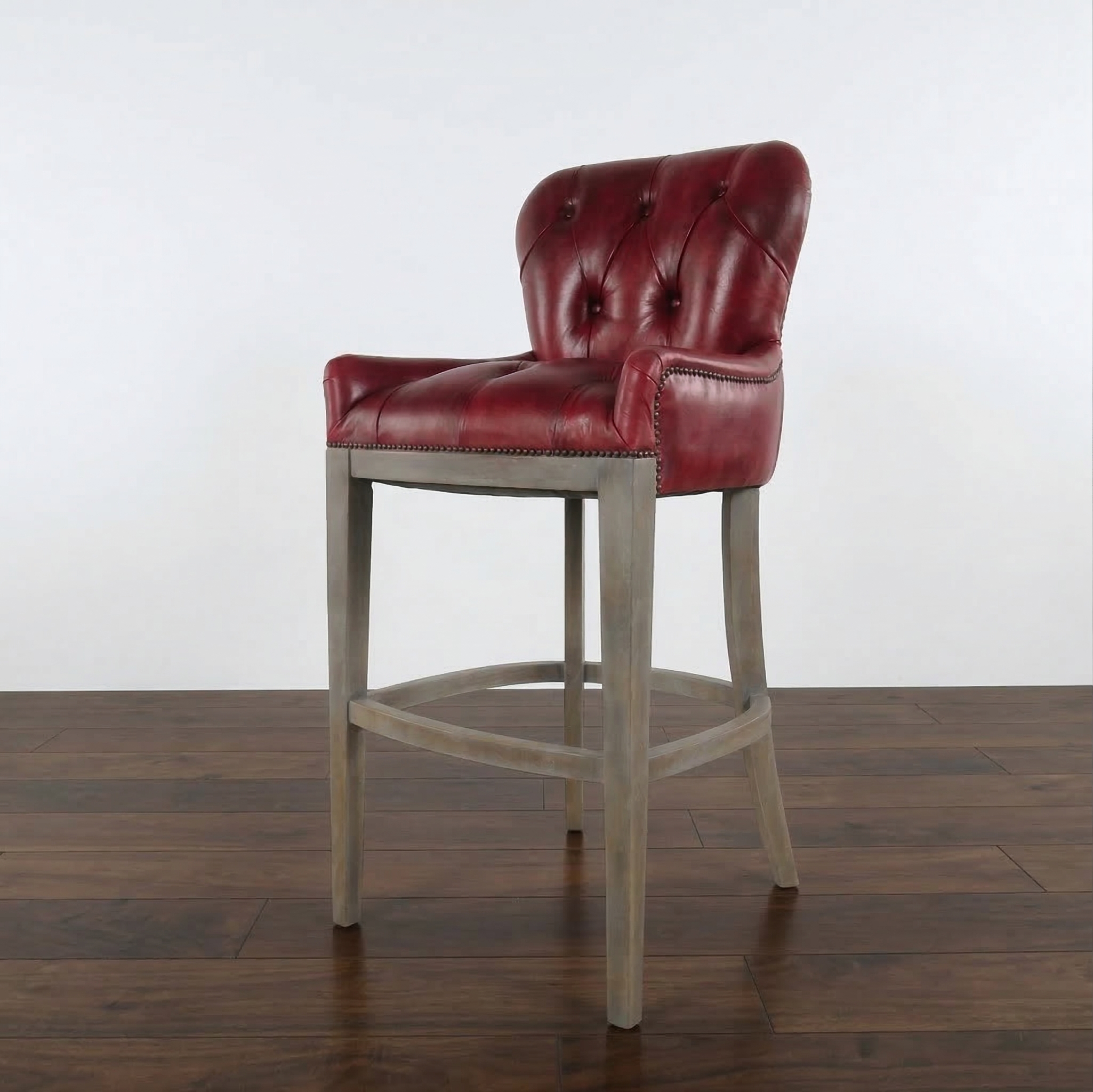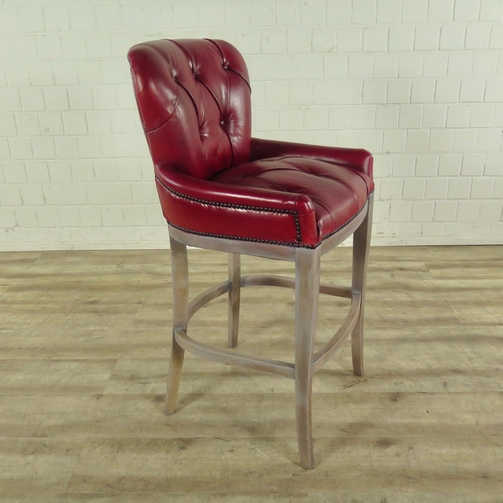 Deze Chesterfield barkruk is gemaakt van rood leer. Prijs per stuk.