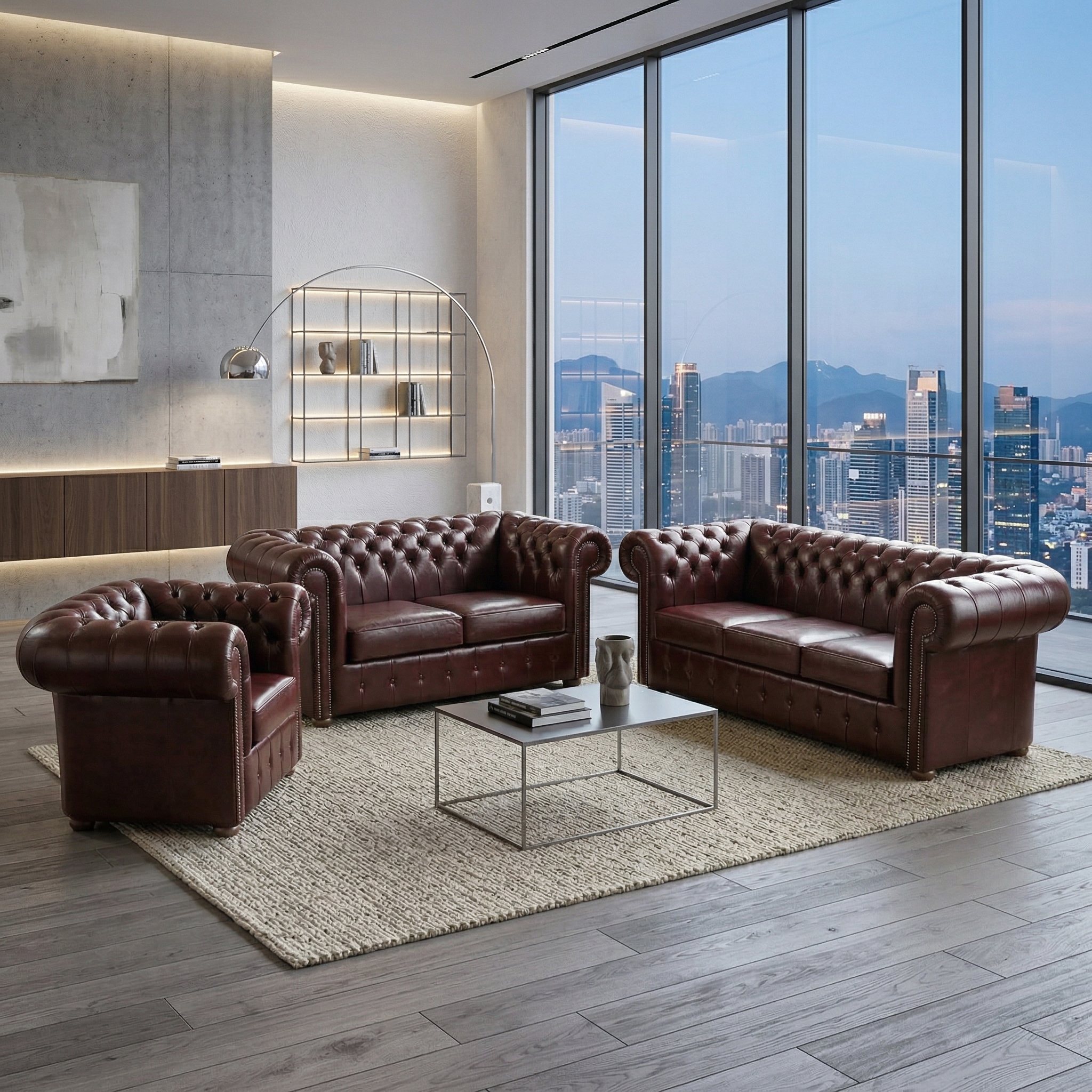 Chesterfield Bankstel Rood-Bruin 3-2-1 Leder