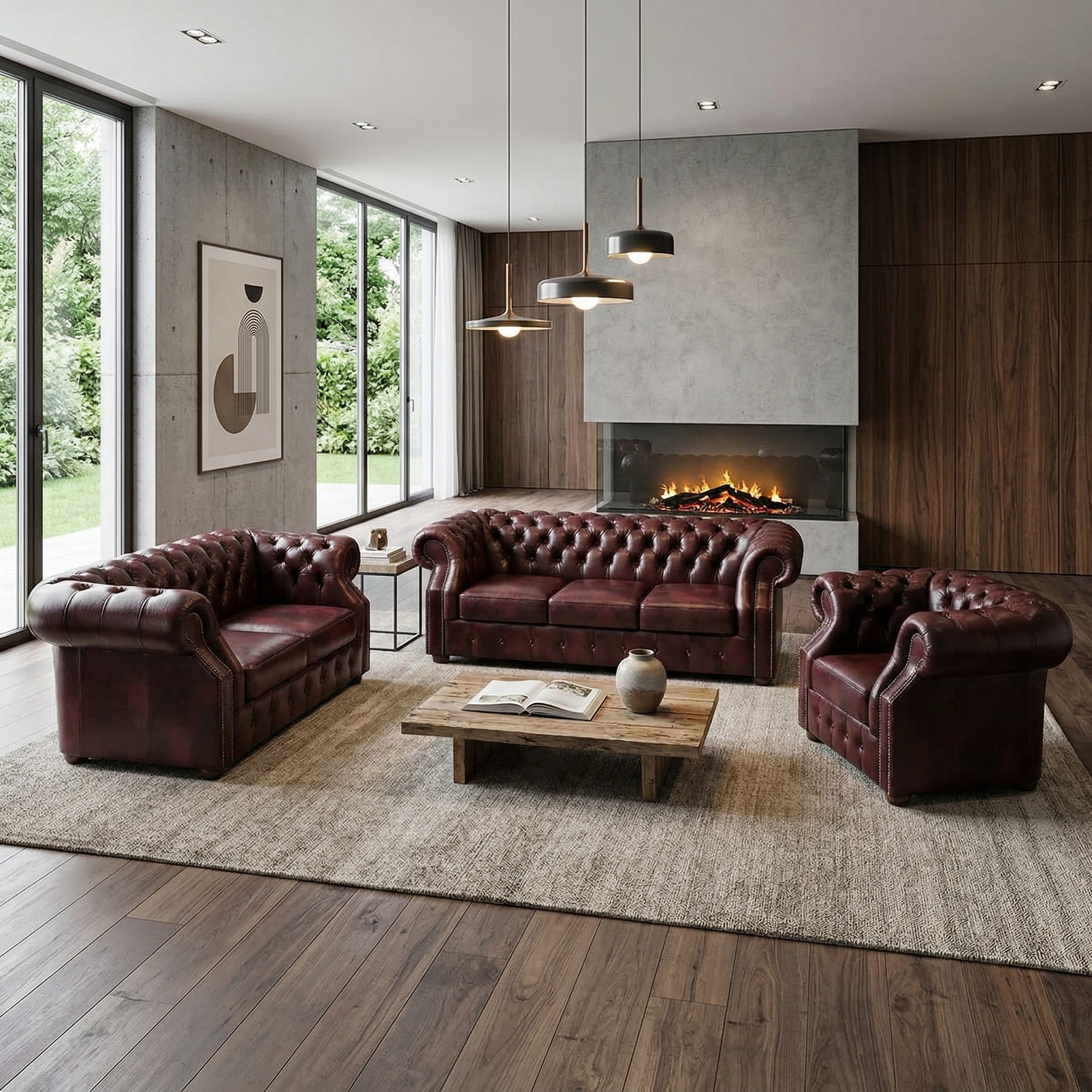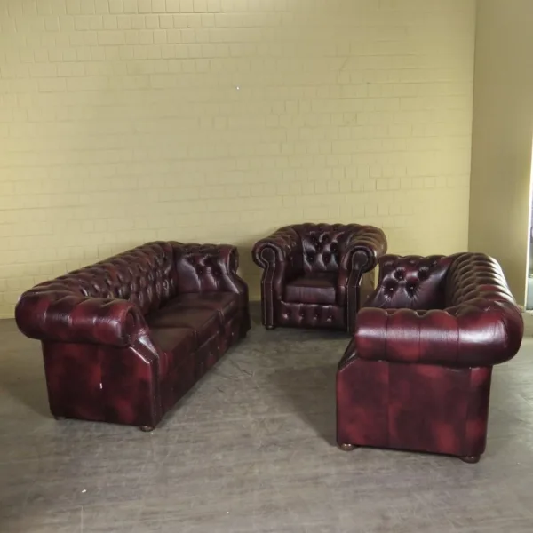 Chesterfield Bankstel Rood-Bruin 3-2-1 Leder