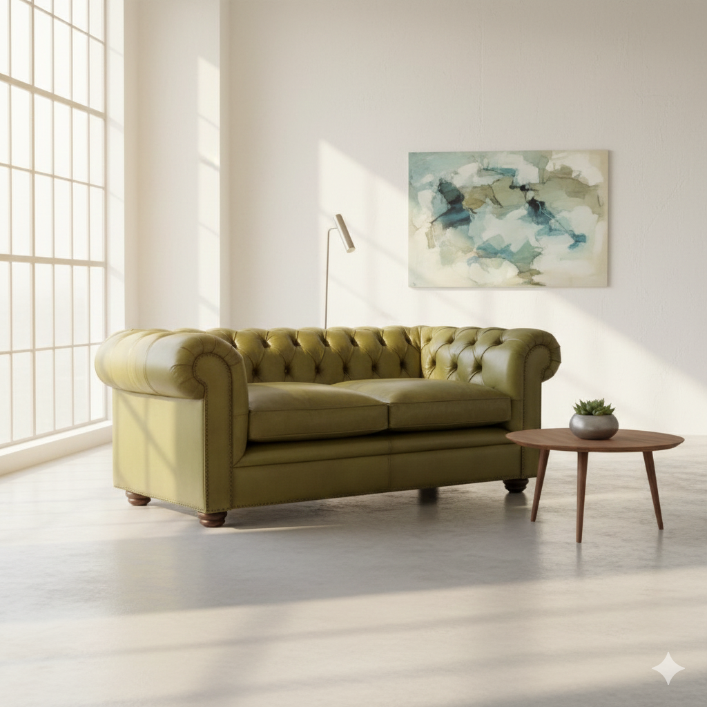 Chesterfield Sofa Bank Leder Lime 1,90 m
