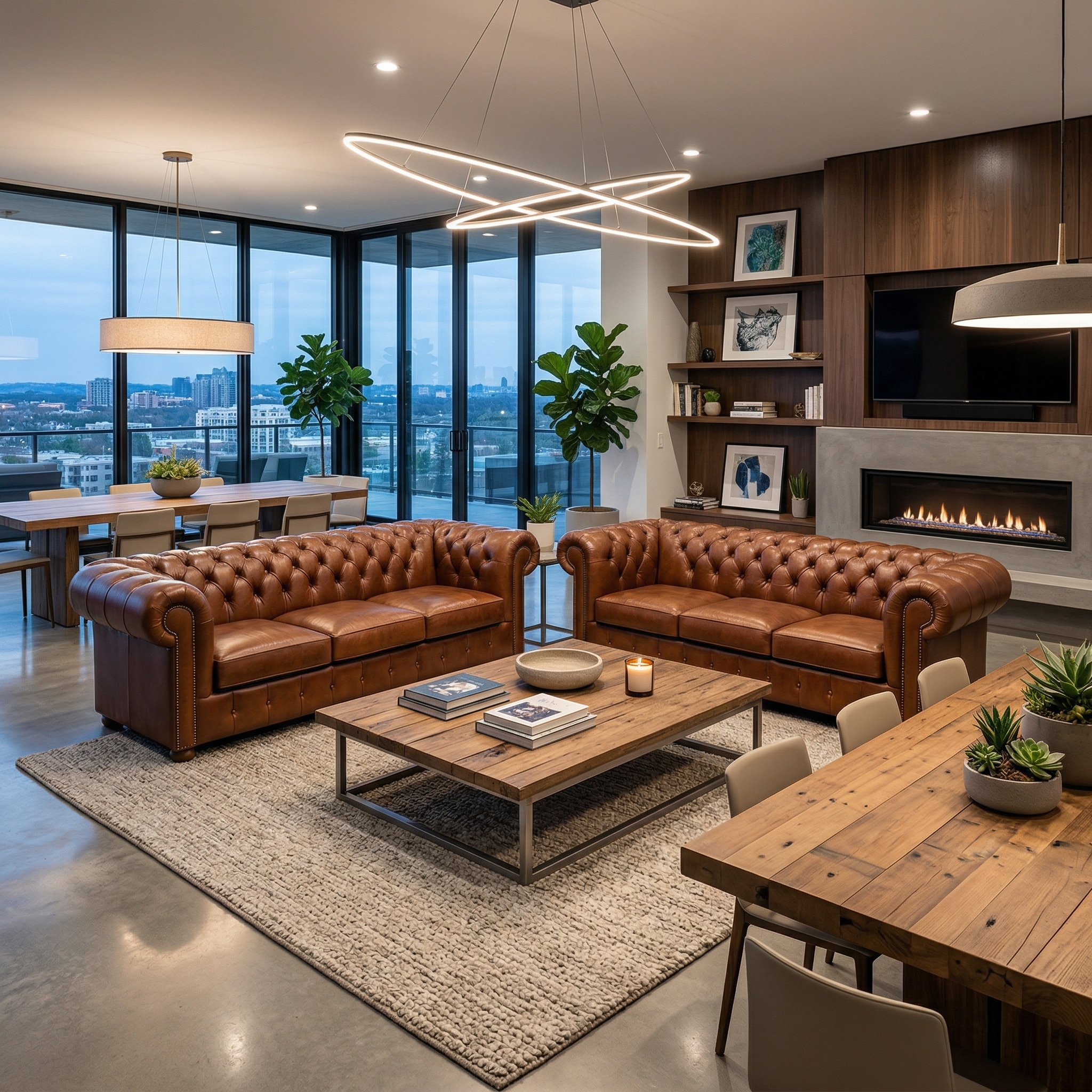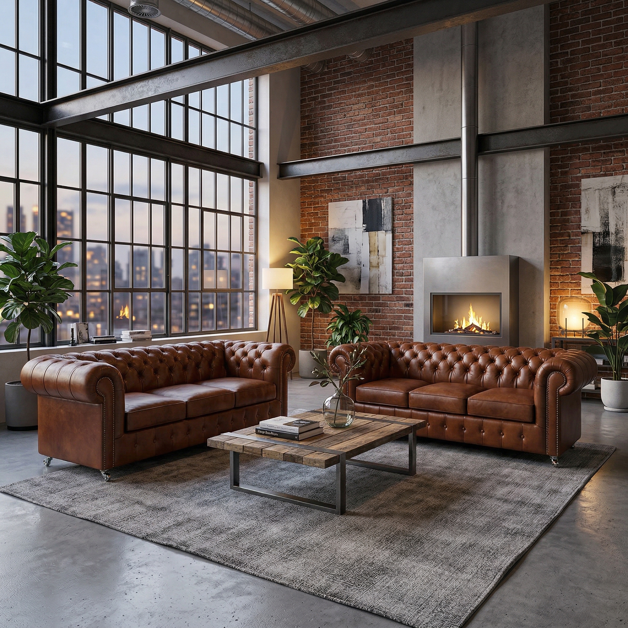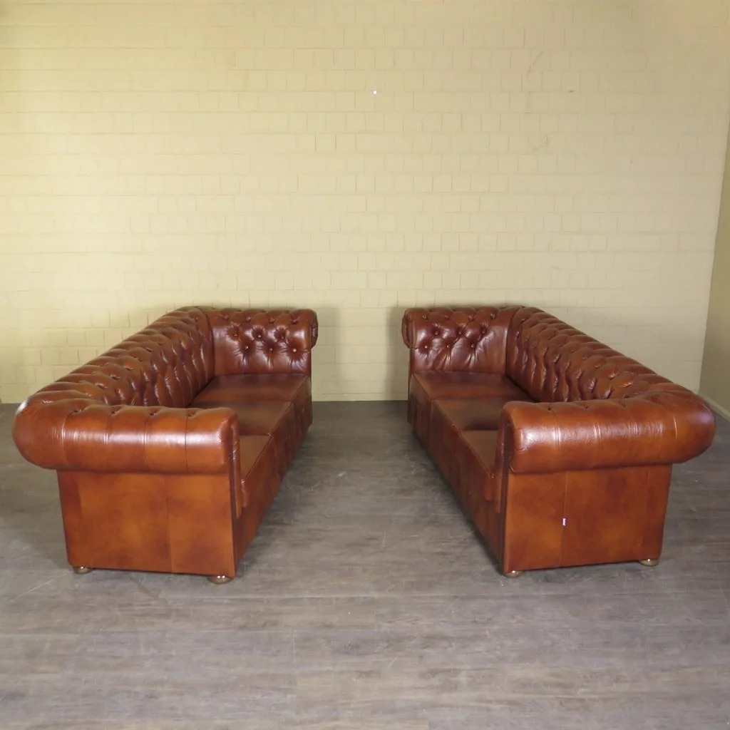 Chesterfield Bank Leder Cognac 2,20 m Set