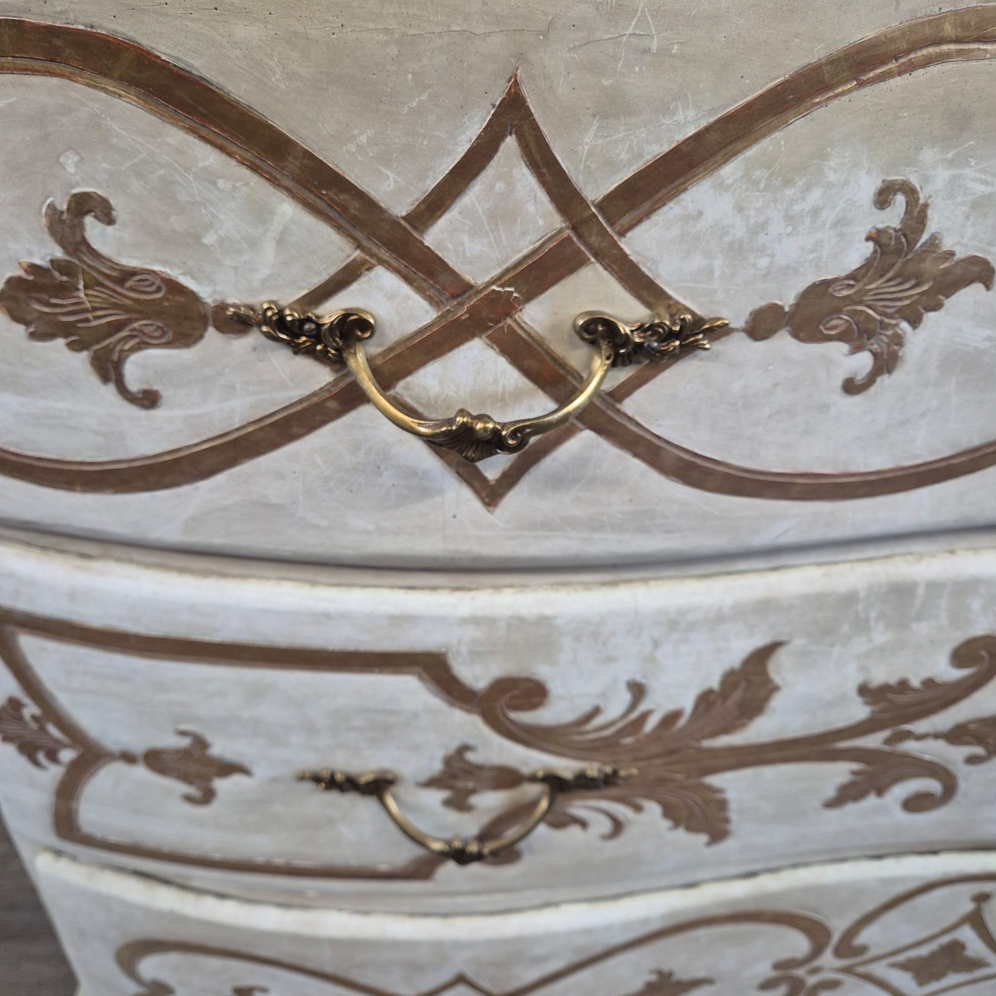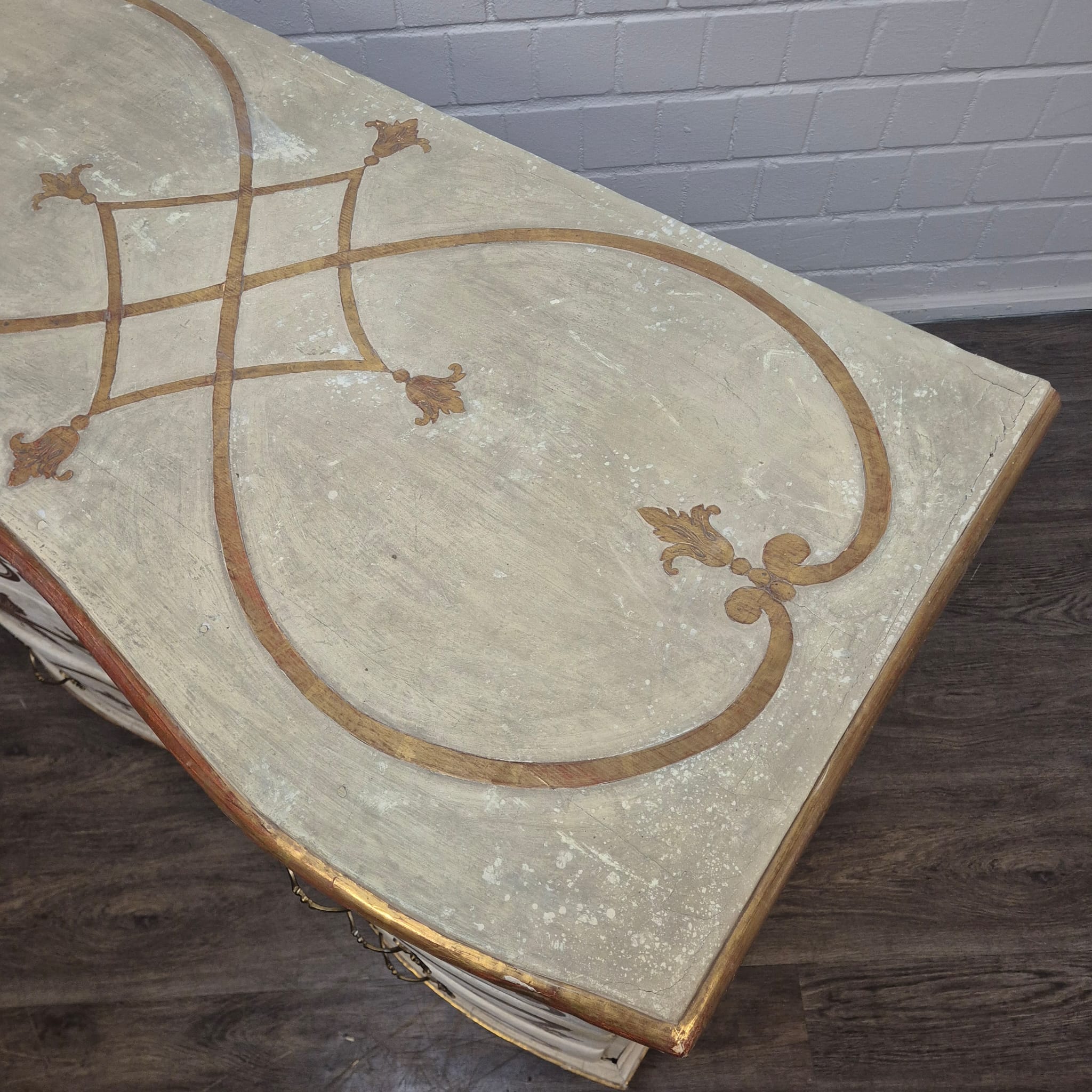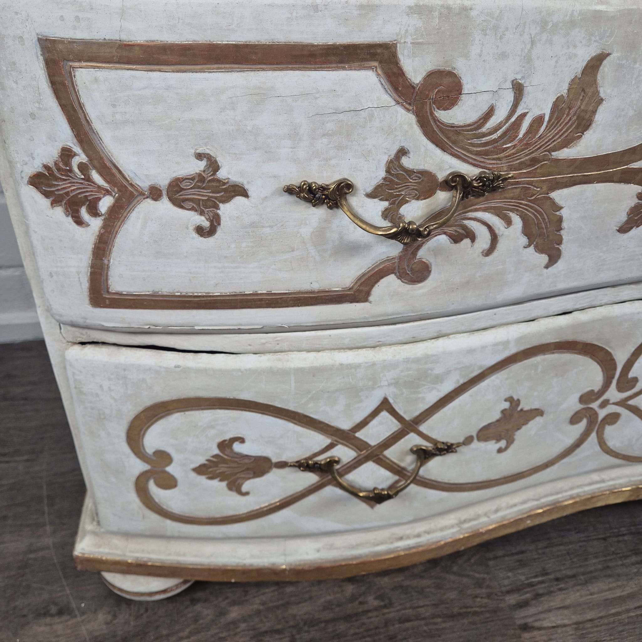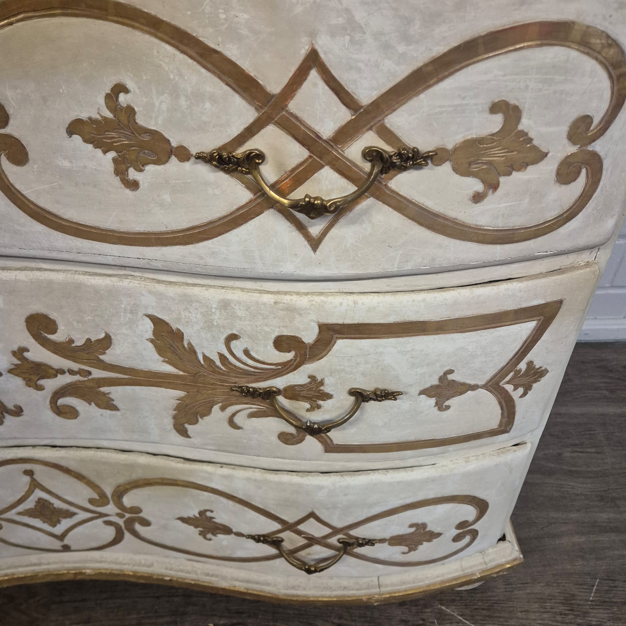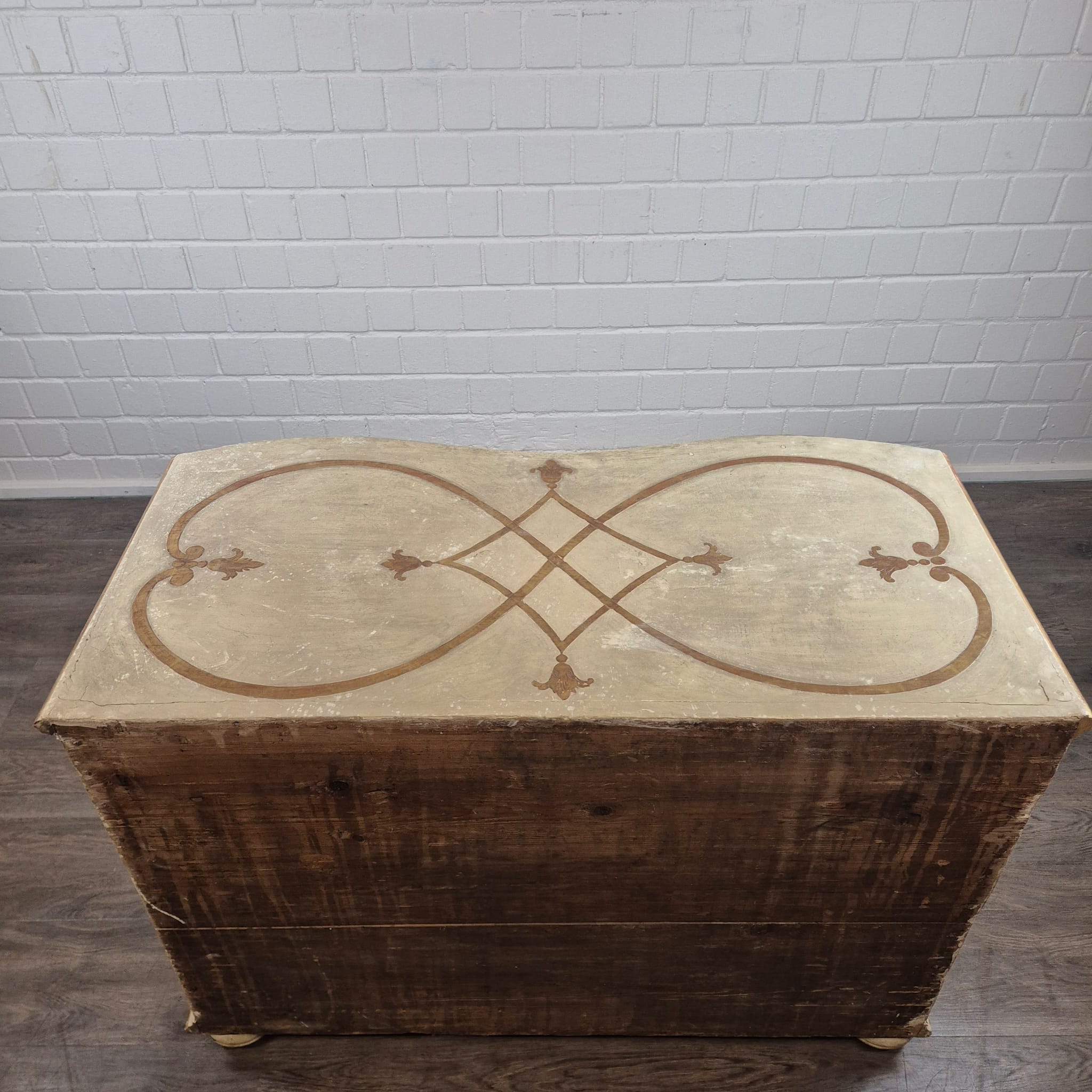 Originele barok commode gemaakt van massief grenen in oud-creme/goud geschilderd uit ca. 1770. De commode is in een goede staat en heeft weinig gebruikssporen.