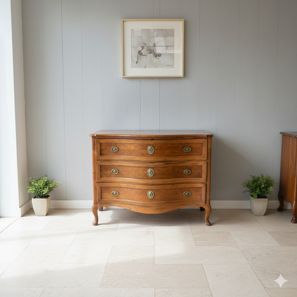 Gerestaureerde barok commode gemaakt van massief kersen (gelakt) uit ca. 1770. De commode is in een zeer goede staat en heeft minimale gebruikssporen.