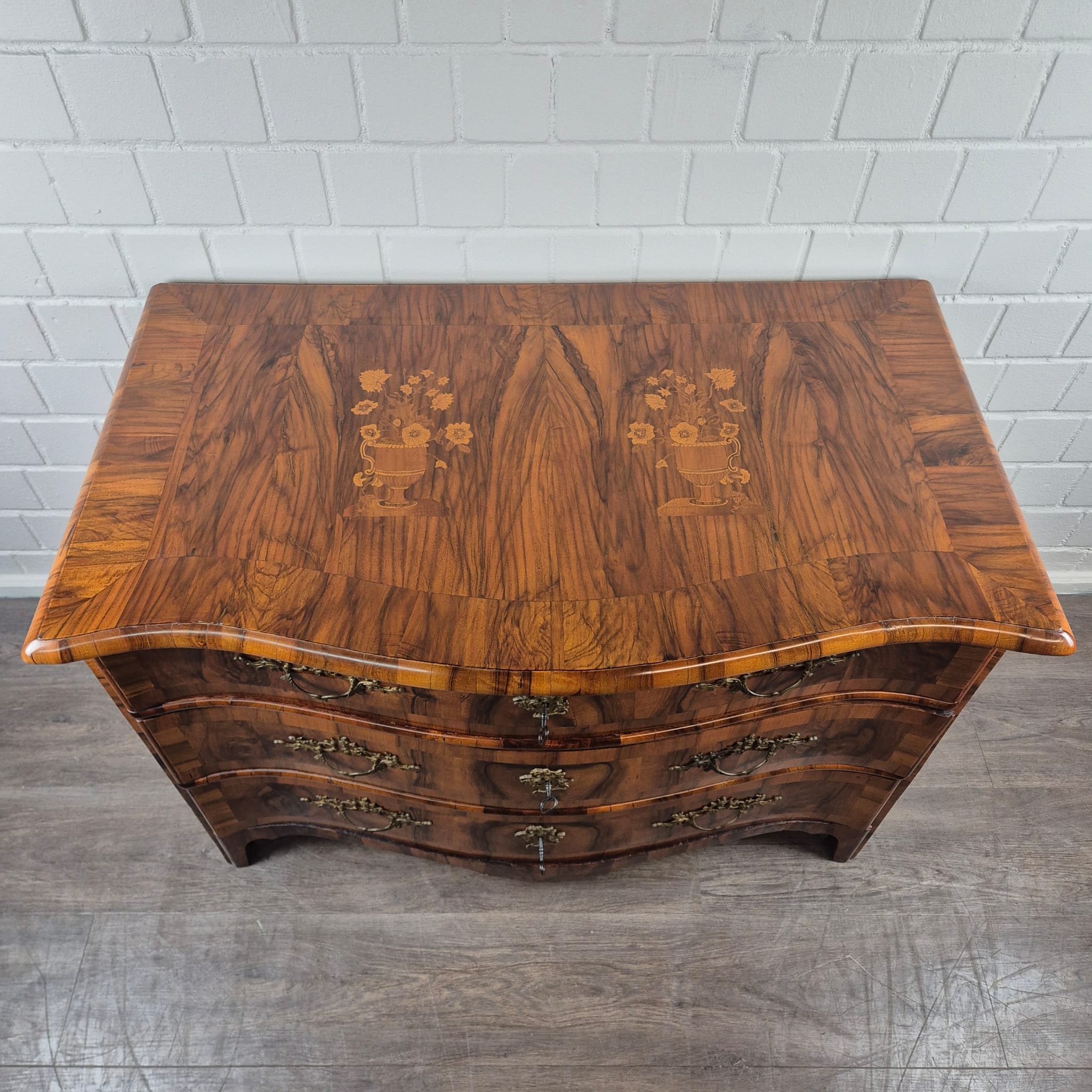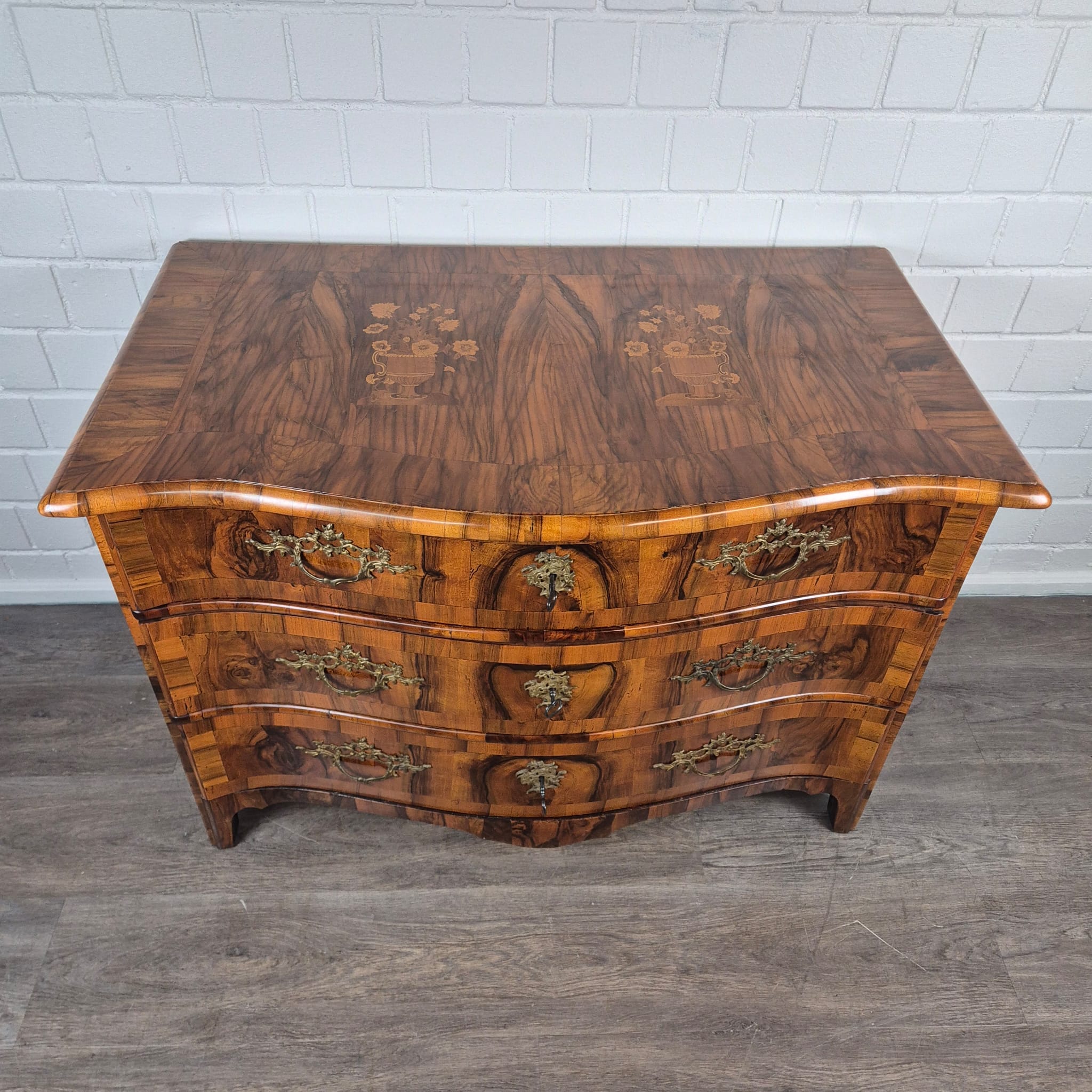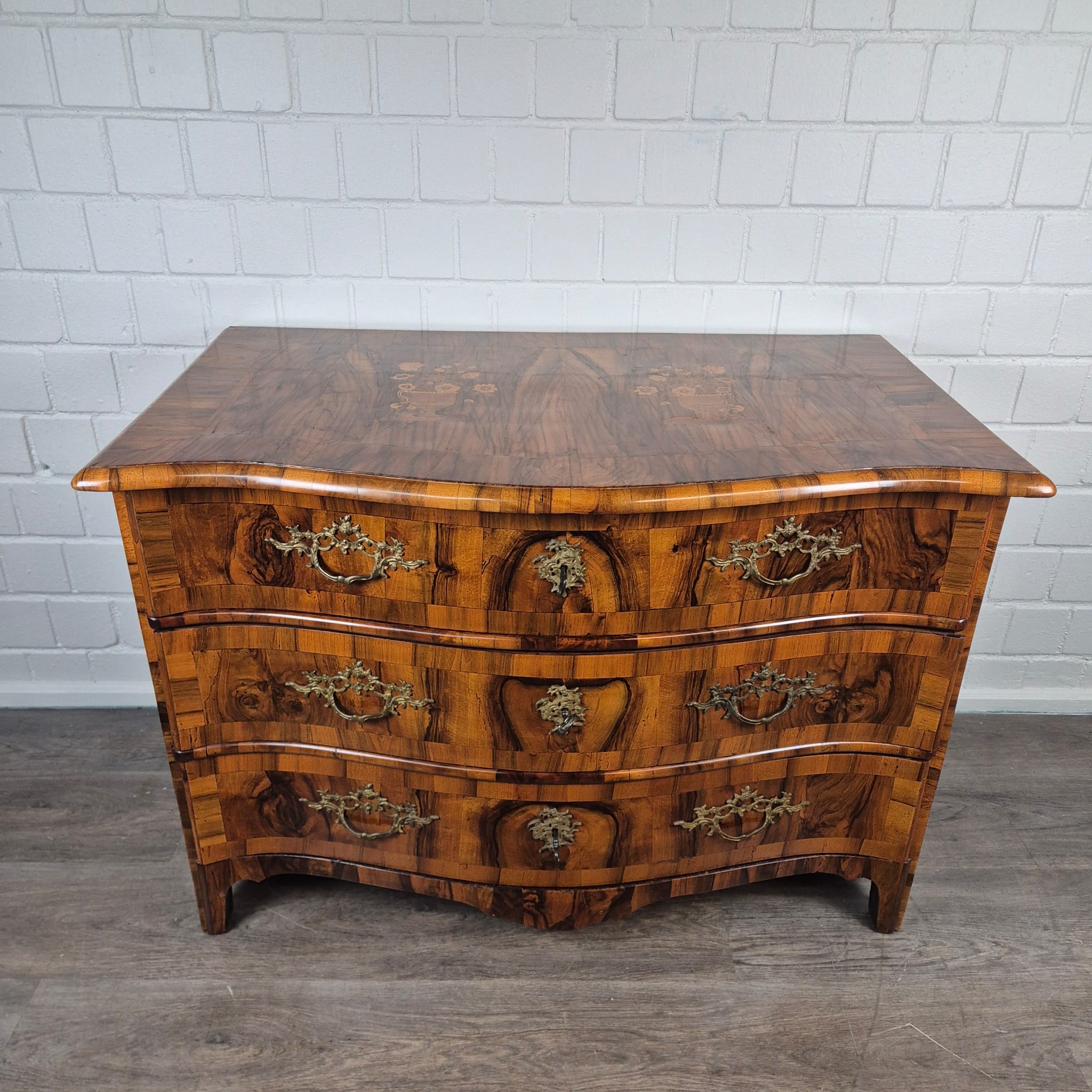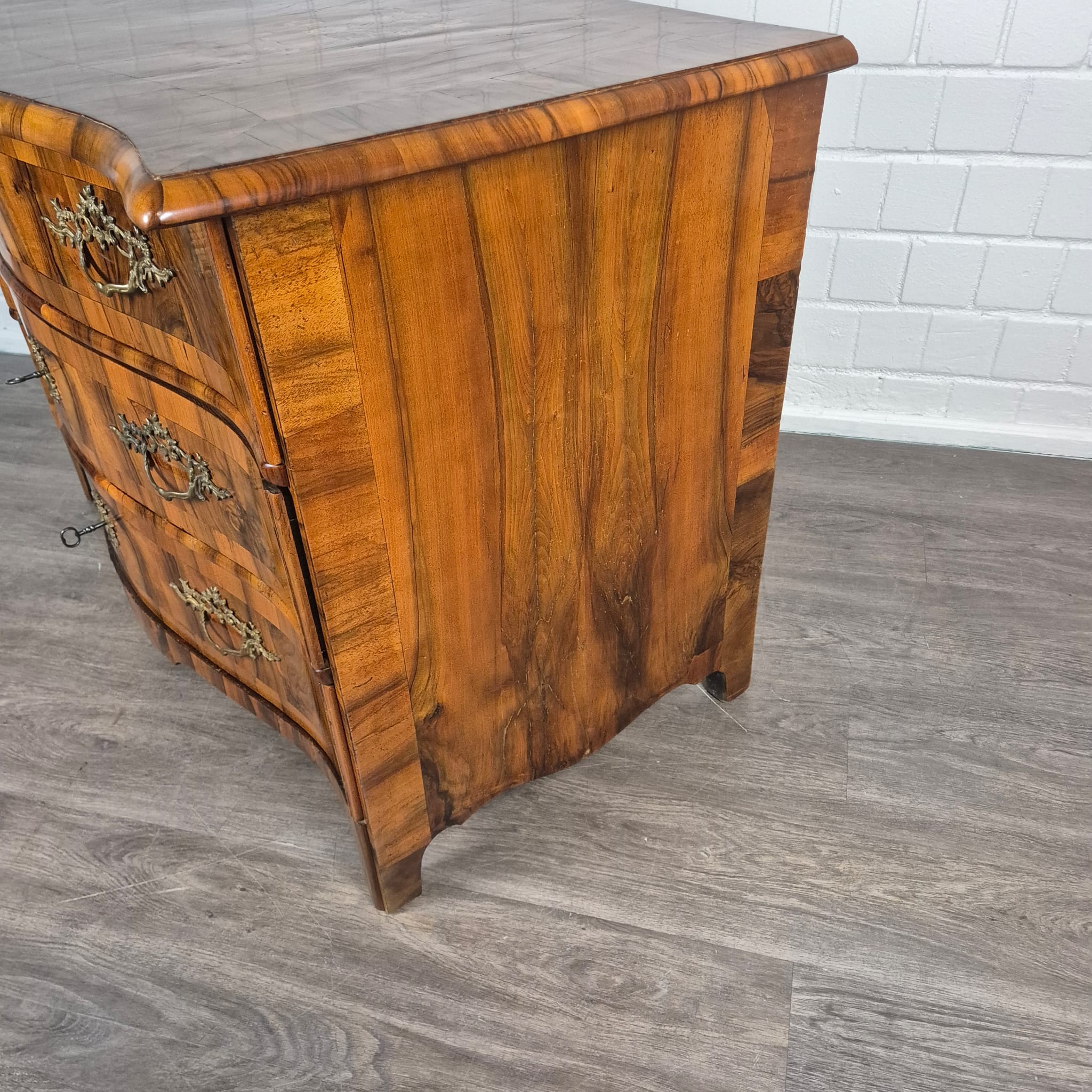Gerestaureerde barok commode noten gefineerd en schellak gepolytourd uit ca. 1770. De commode is in een zeer goede staat en heeft minimale gebruikssporen.