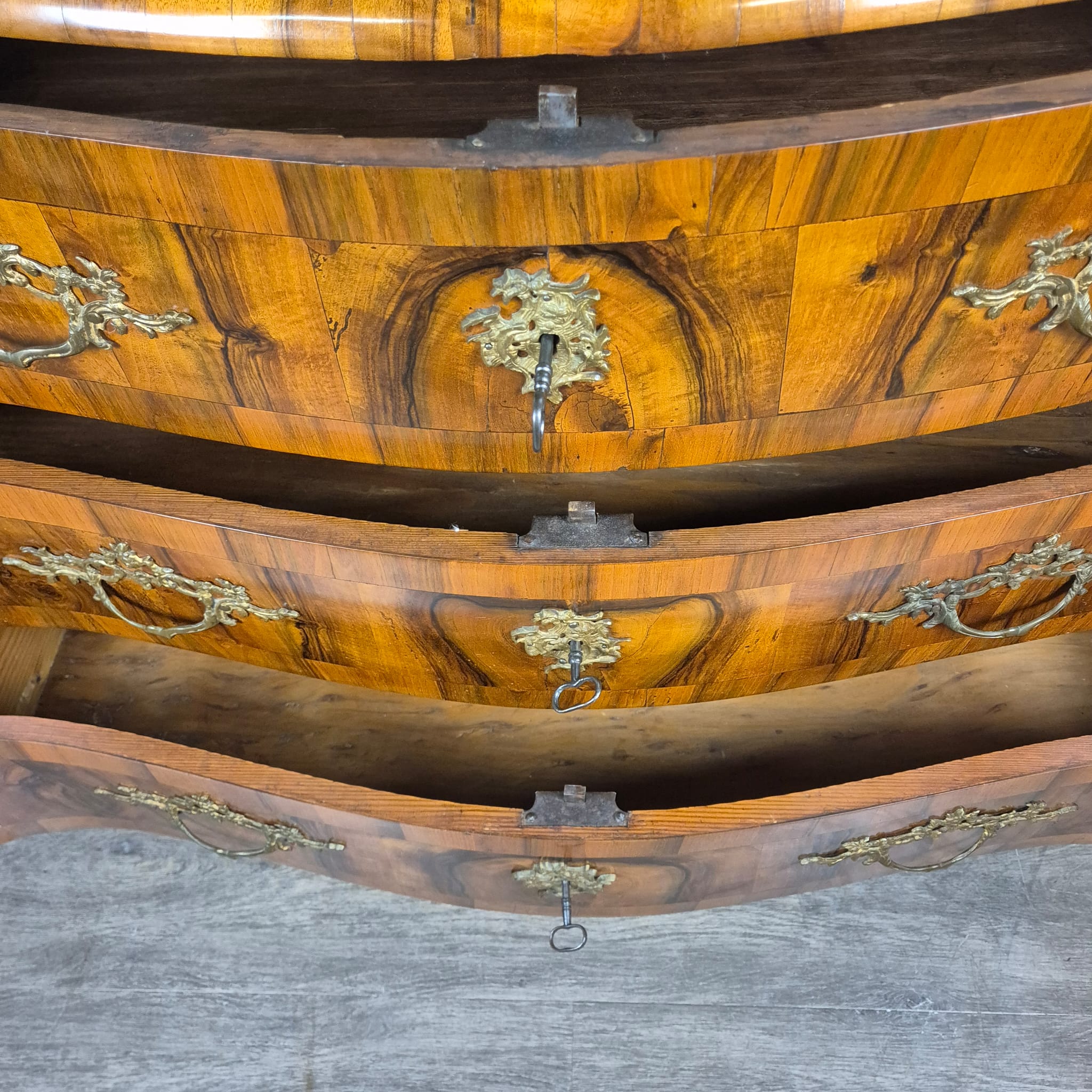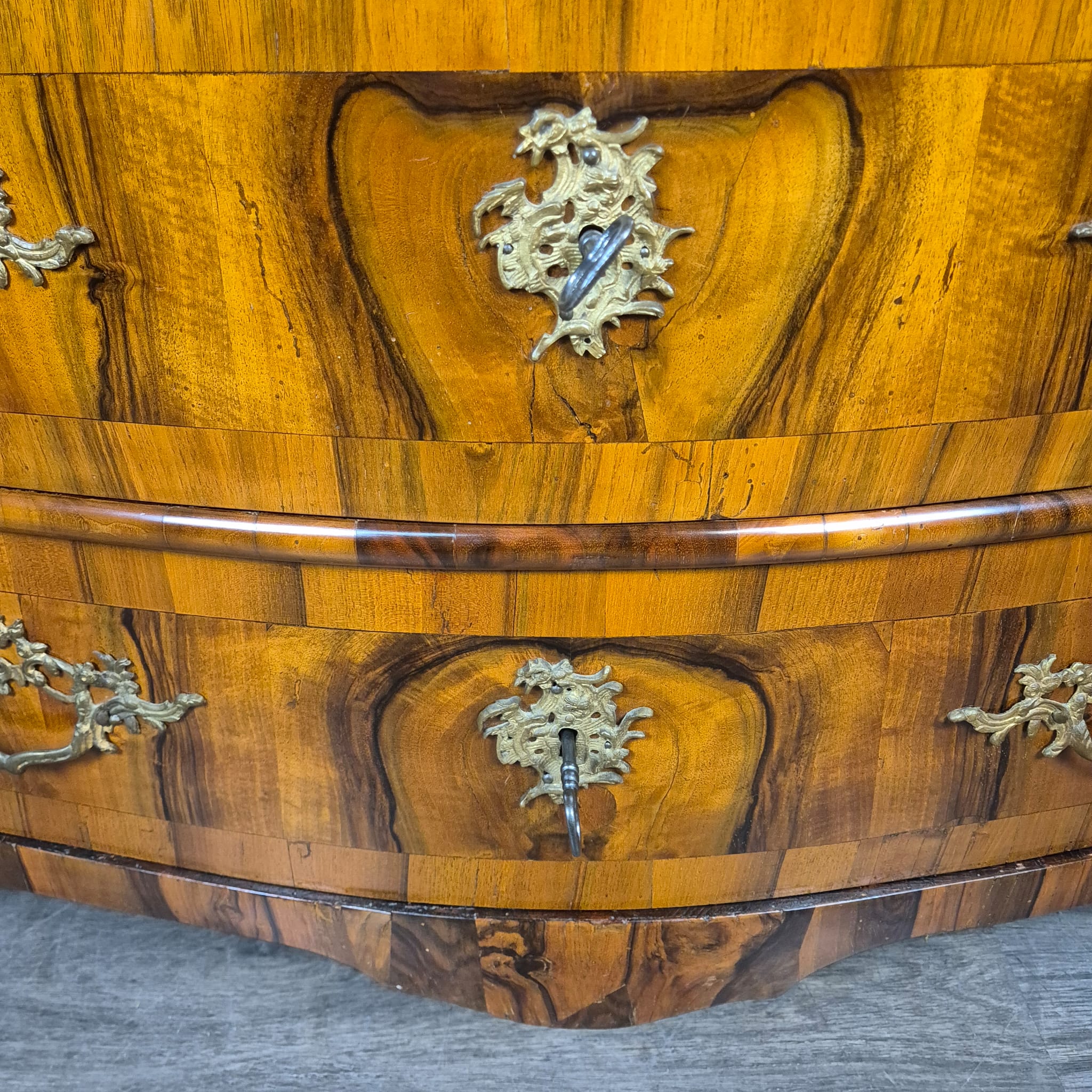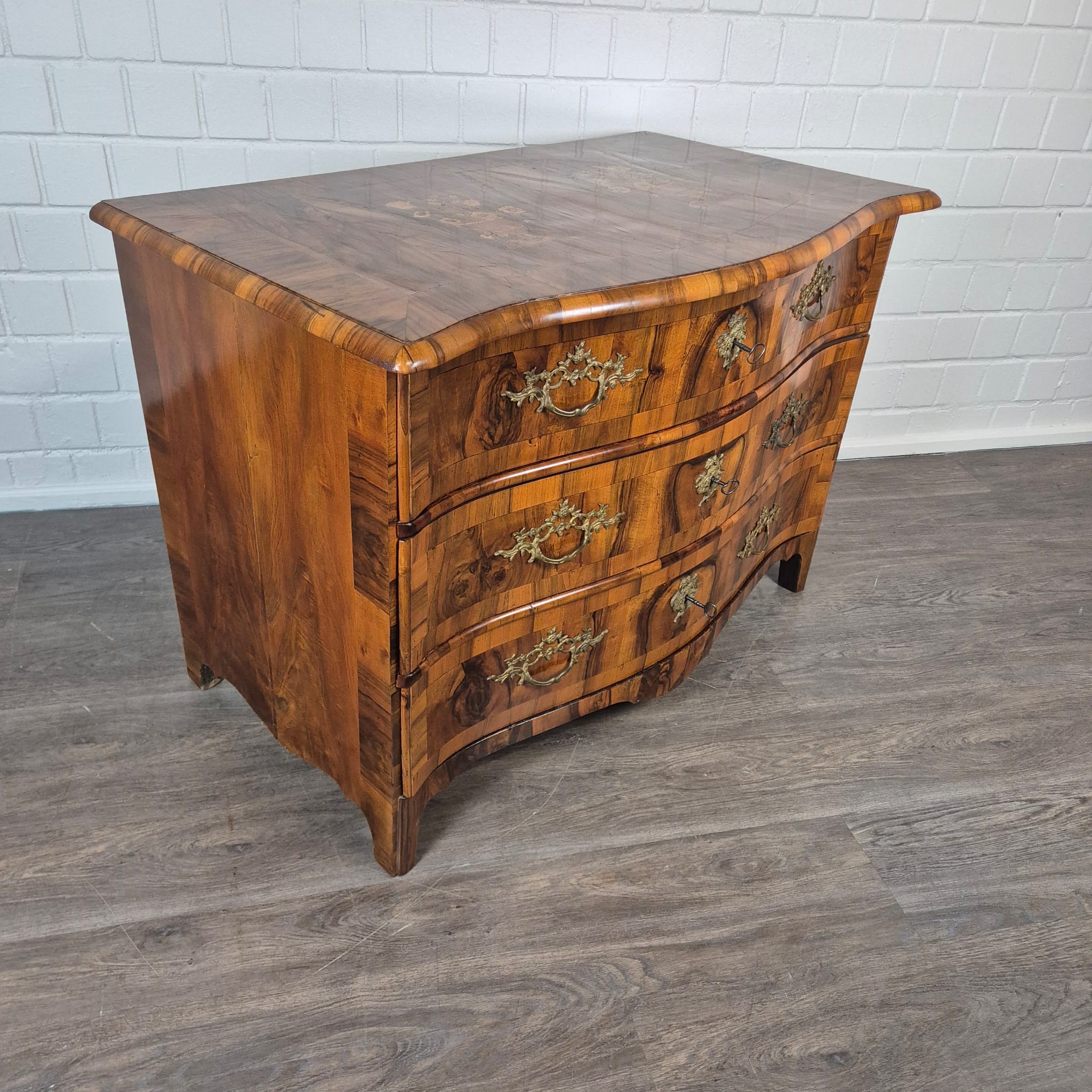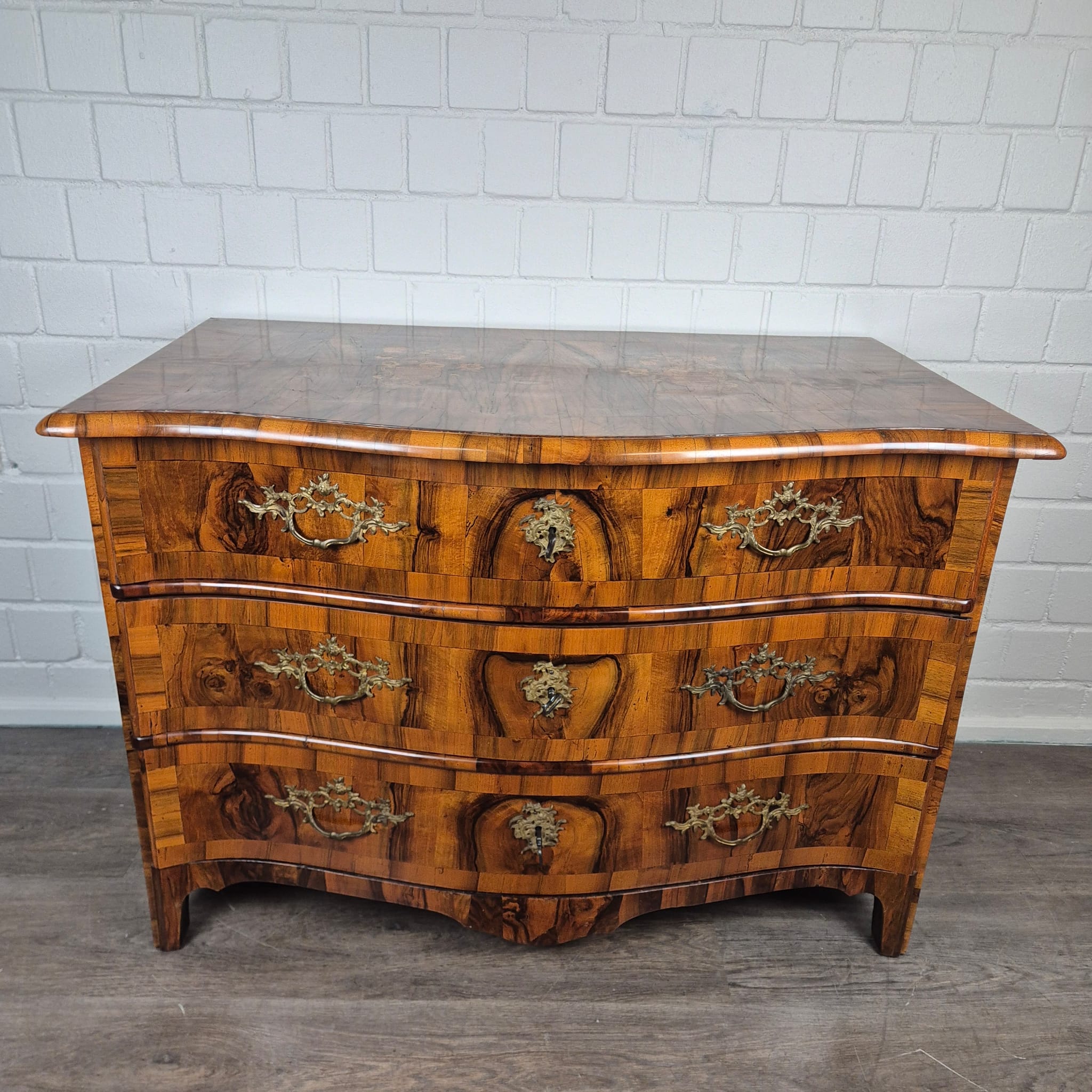 Gerestaureerde barok commode noten gefineerd en schellak gepolytourd uit ca. 1770. De commode is in een zeer goede staat en heeft minimale gebruikssporen.
