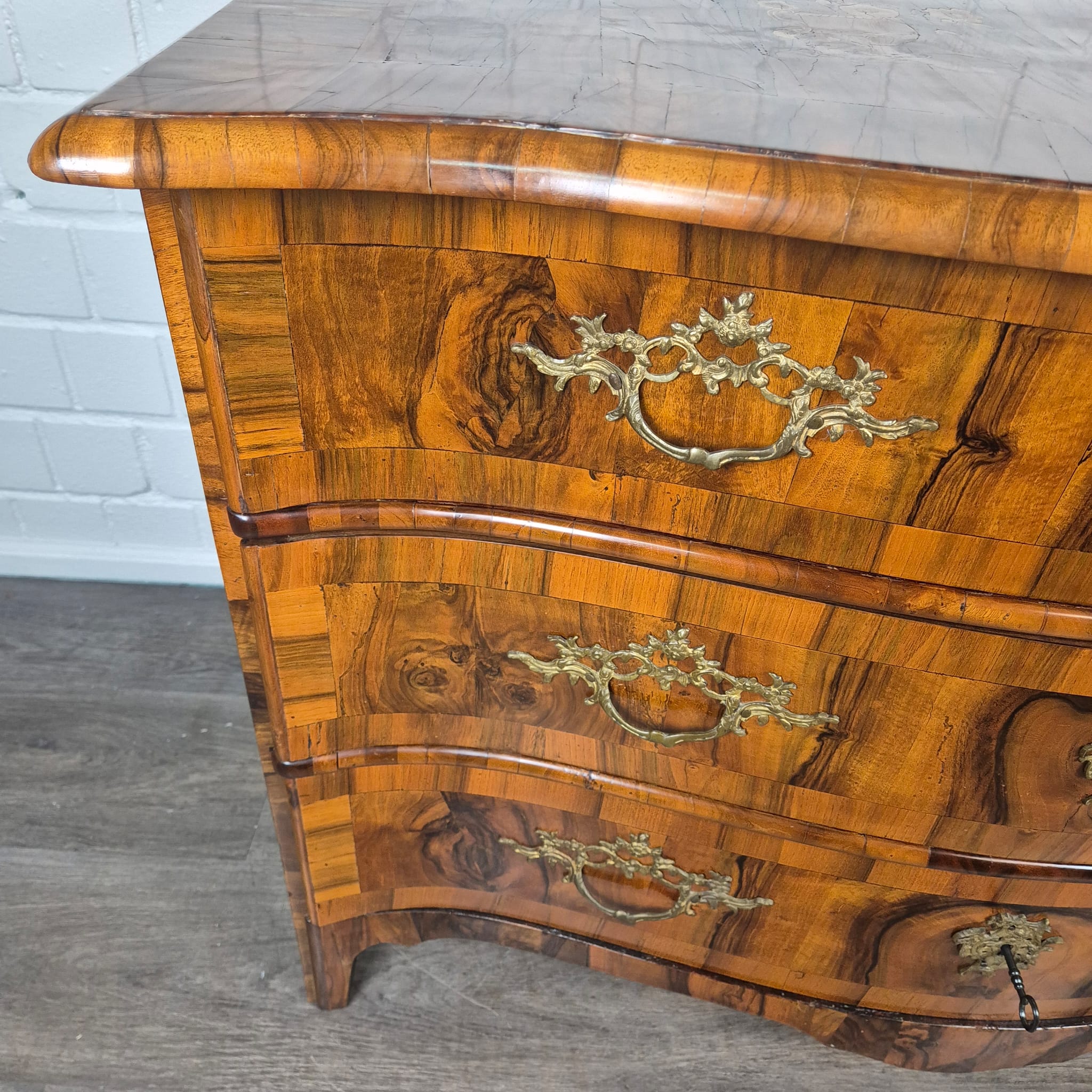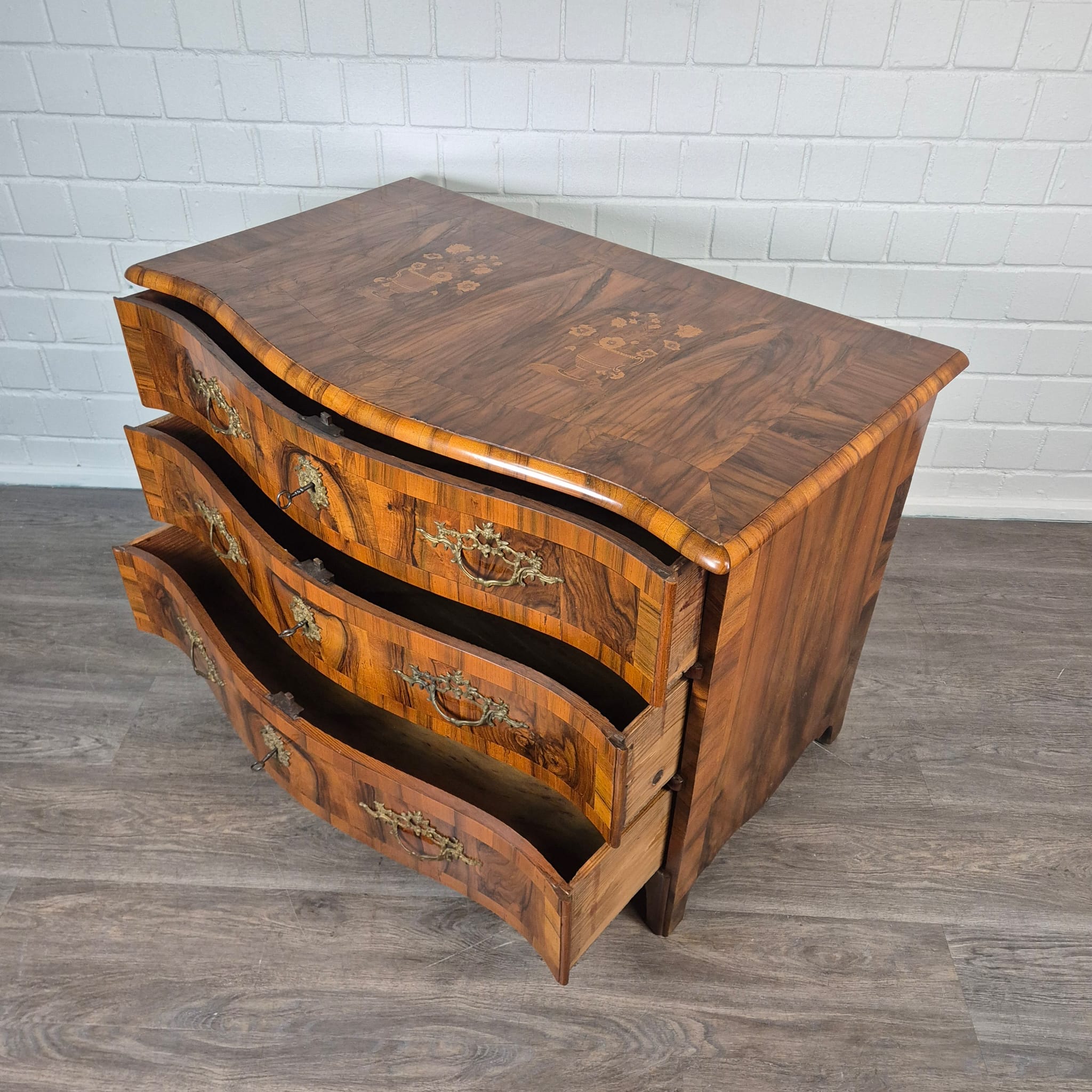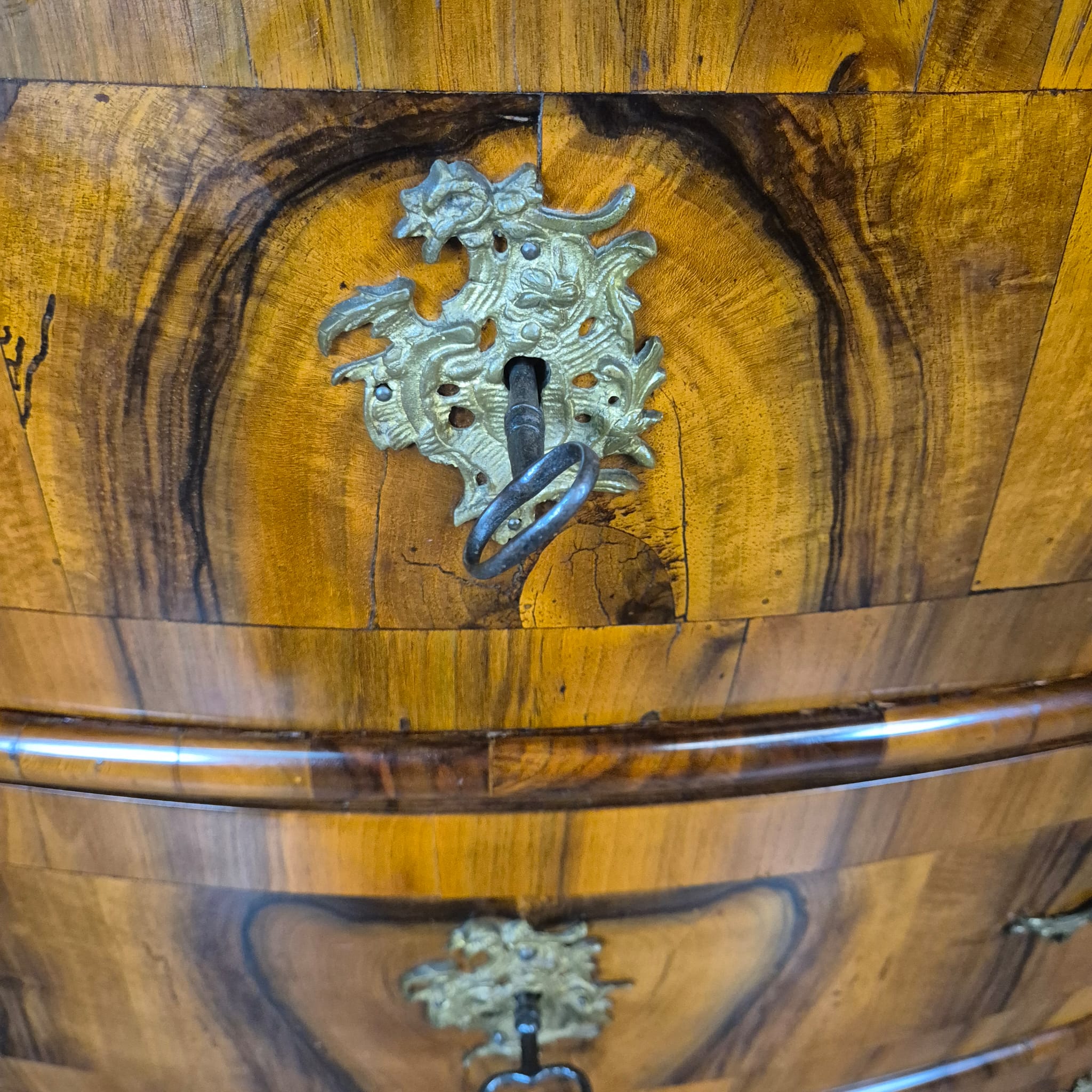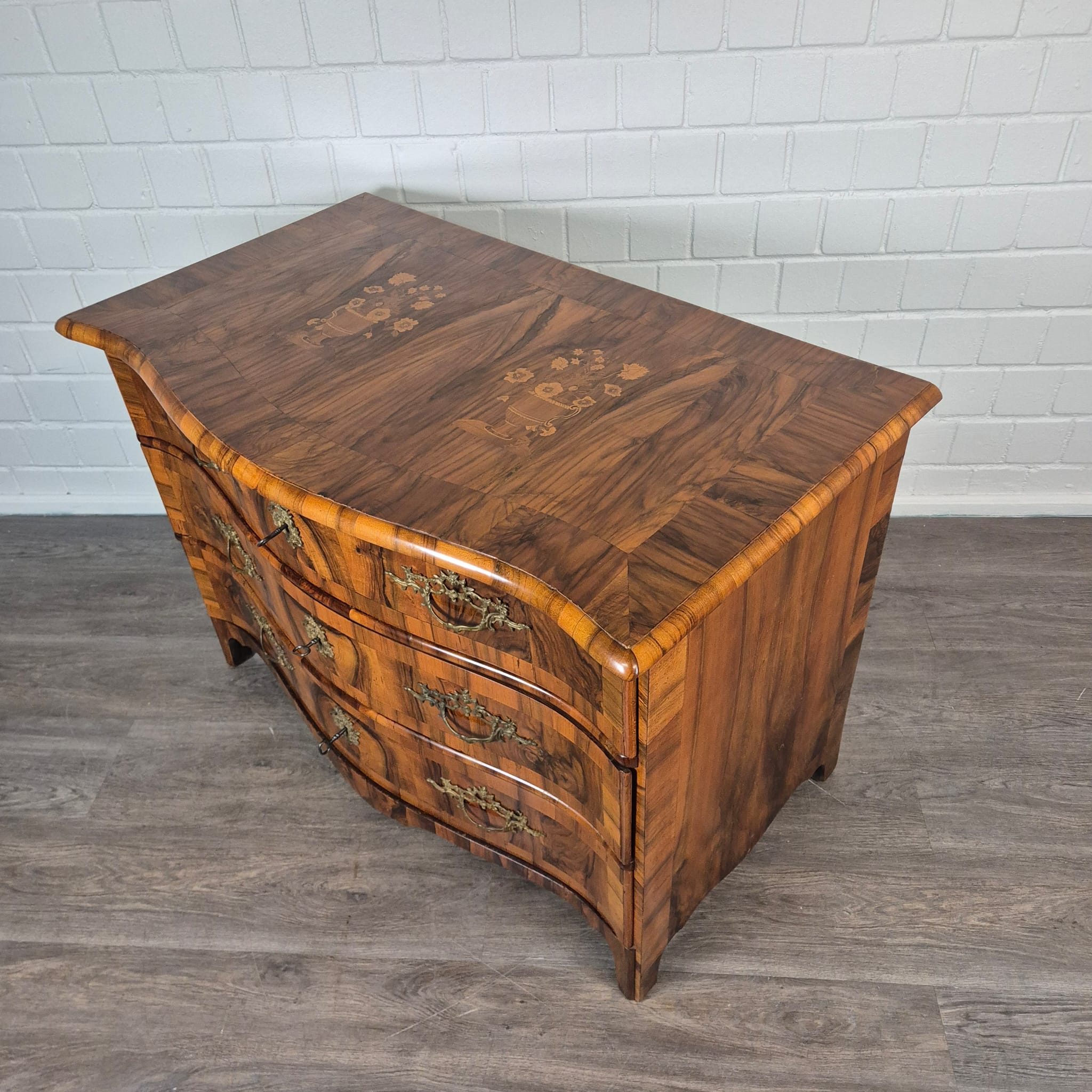 Gerestaureerde barok commode noten gefineerd en schellak gepolytourd uit ca. 1770. De commode is in een zeer goede staat en heeft minimale gebruikssporen.