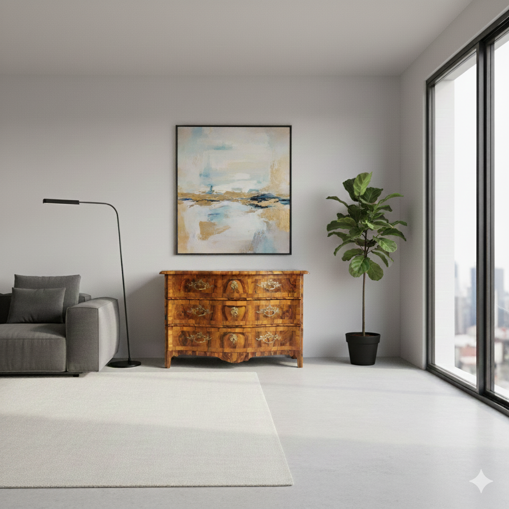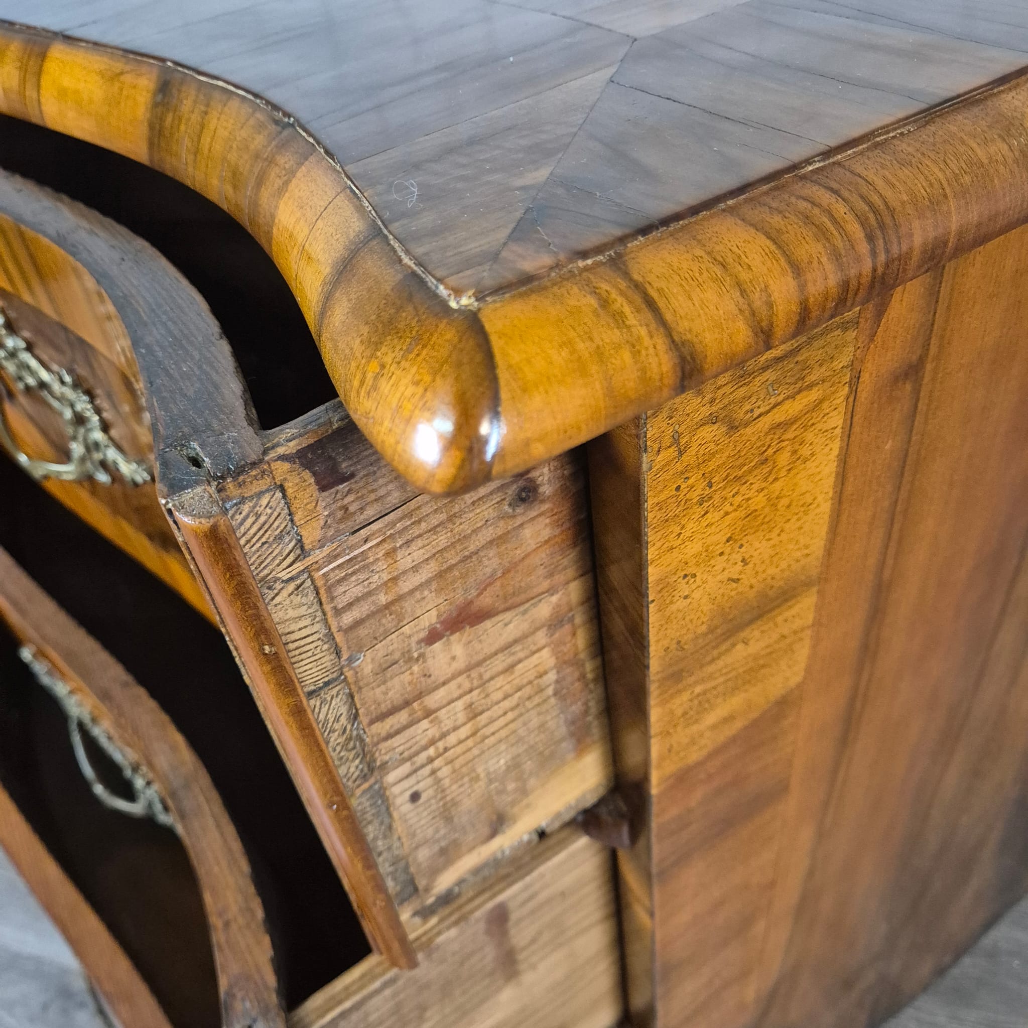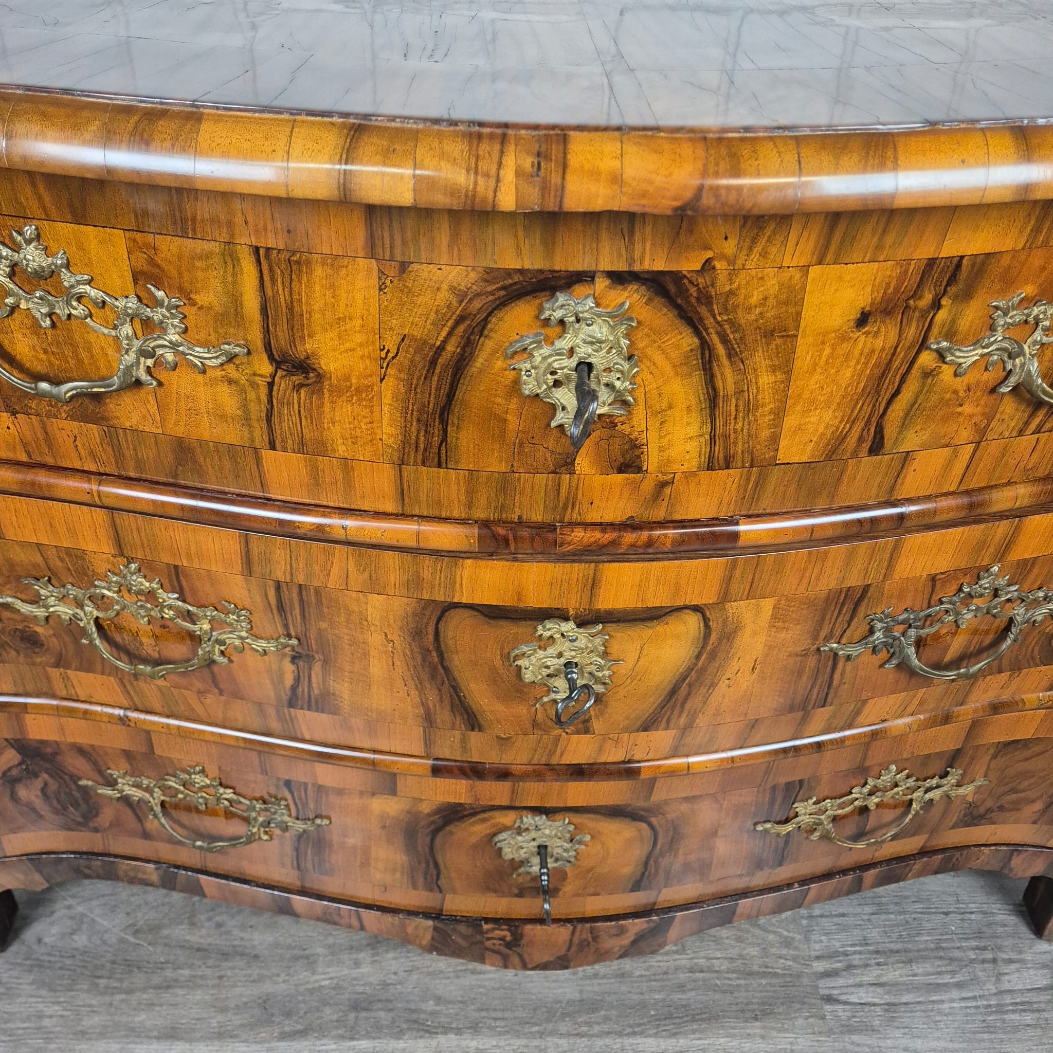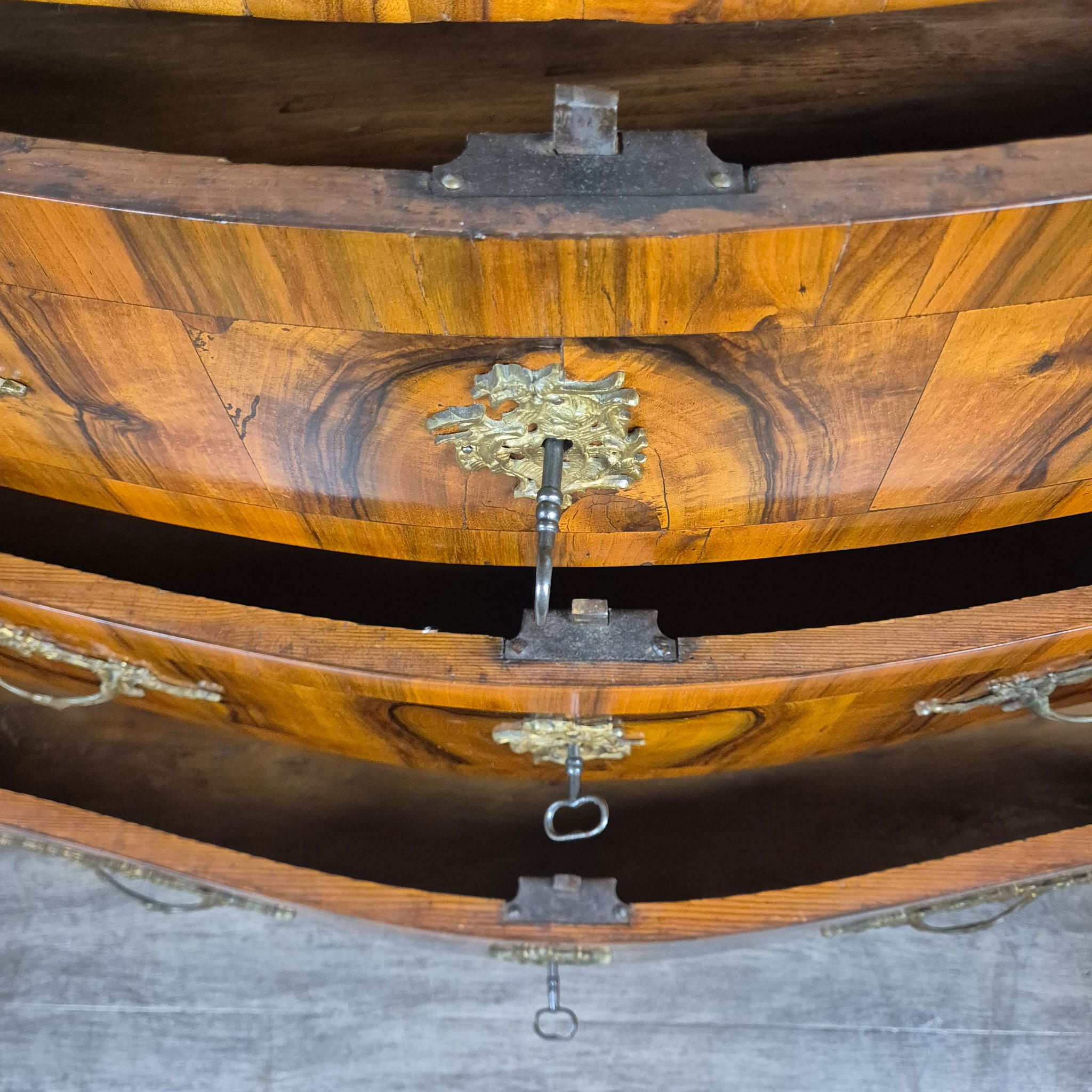 Gerestaureerde barok commode noten gefineerd en schellak gepolytourd uit ca. 1770. De commode is in een zeer goede staat en heeft minimale gebruikssporen.