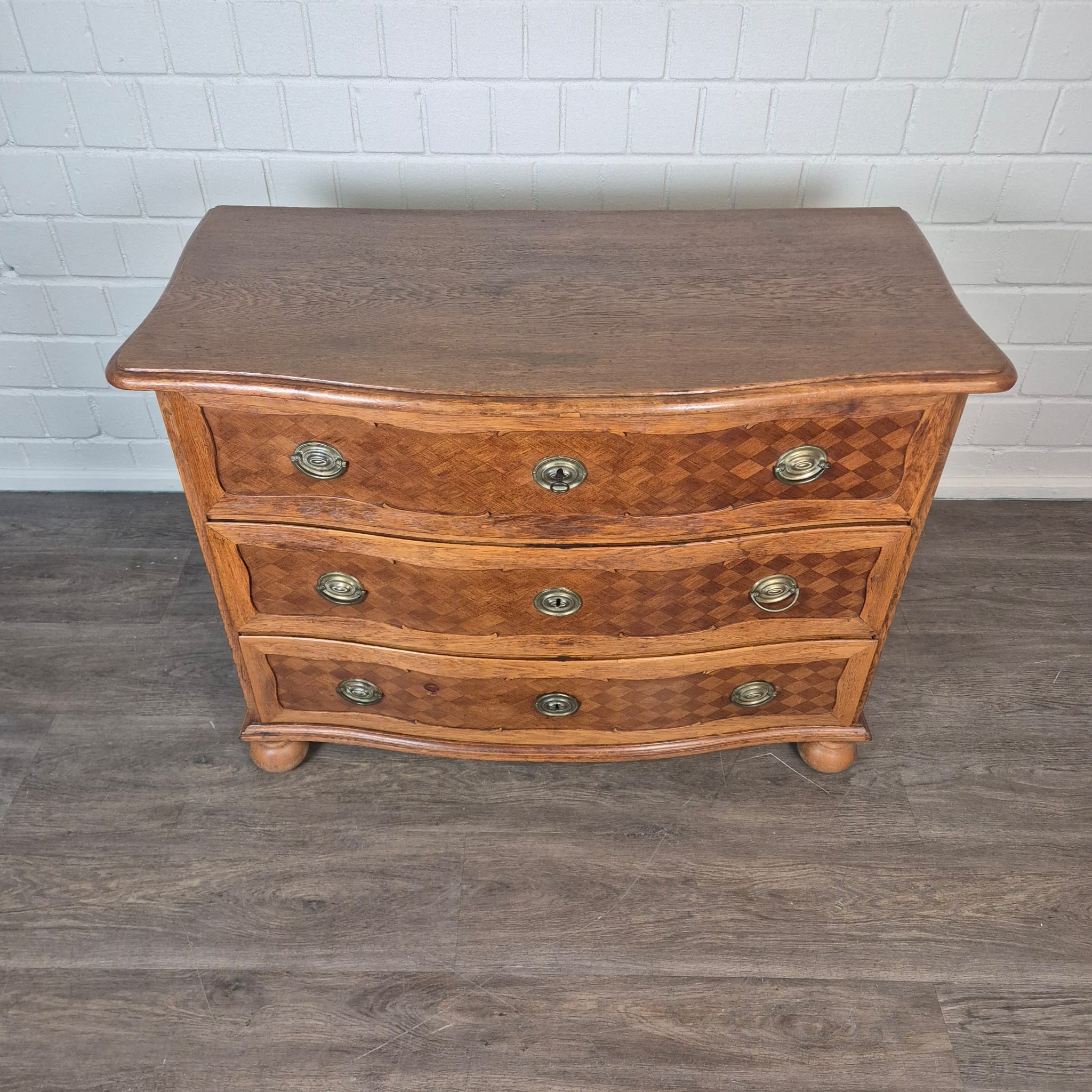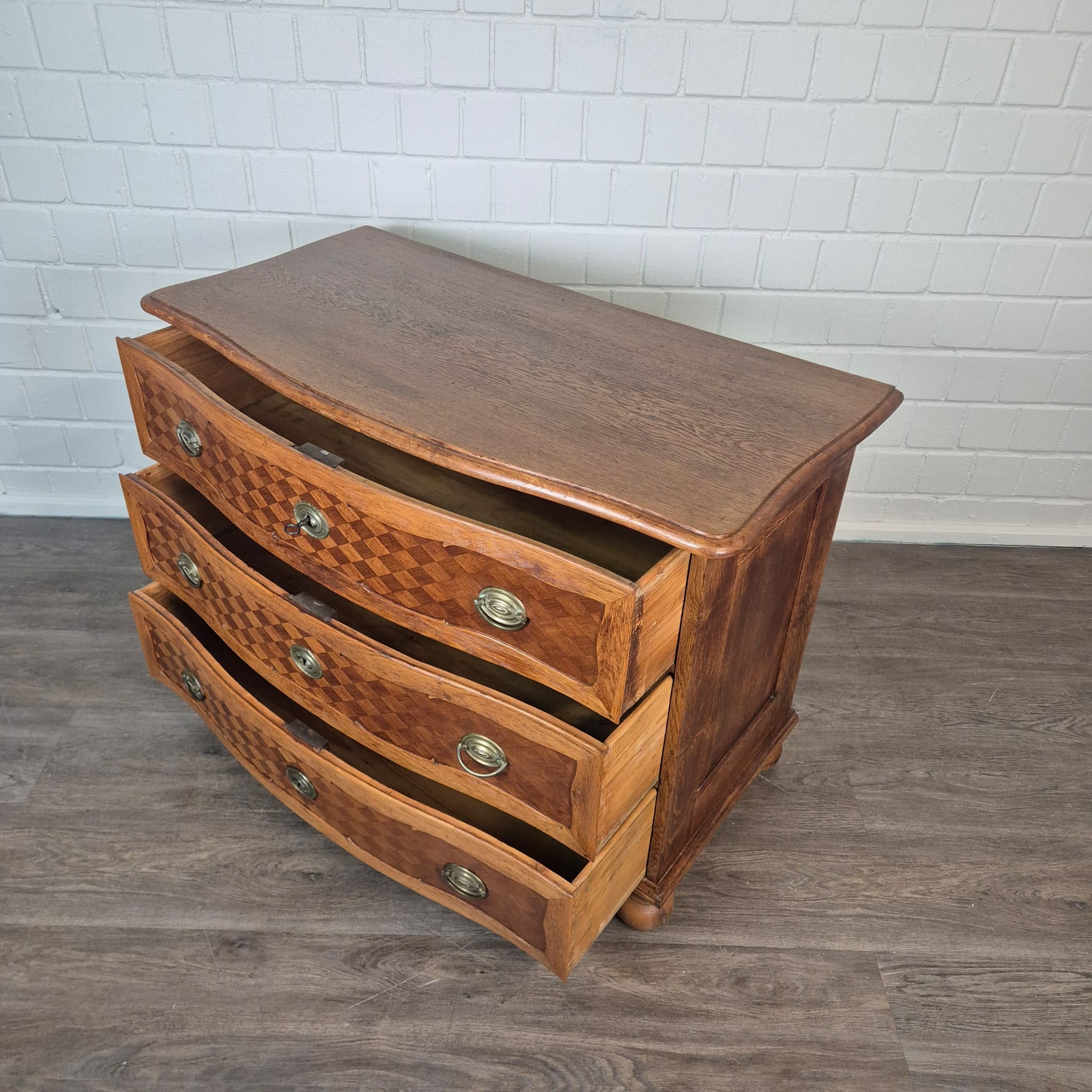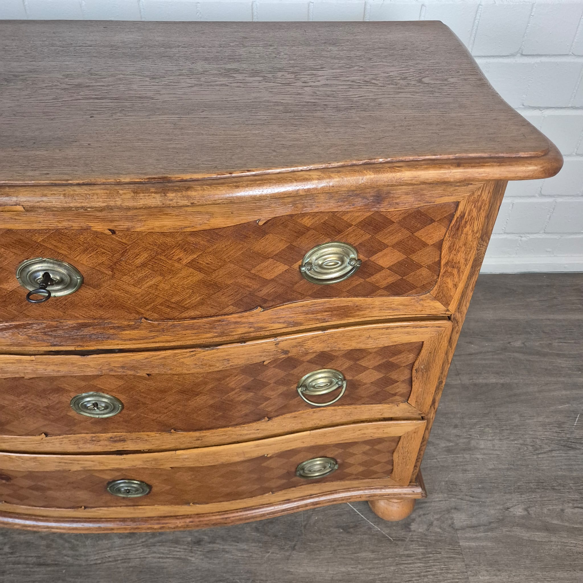 Gerestaureerde barok commode gemaakt van massief eiken en noten fineer uit ca. 1780. De commode is in een zeer goede staat en heeft minimale gebruikssporen.