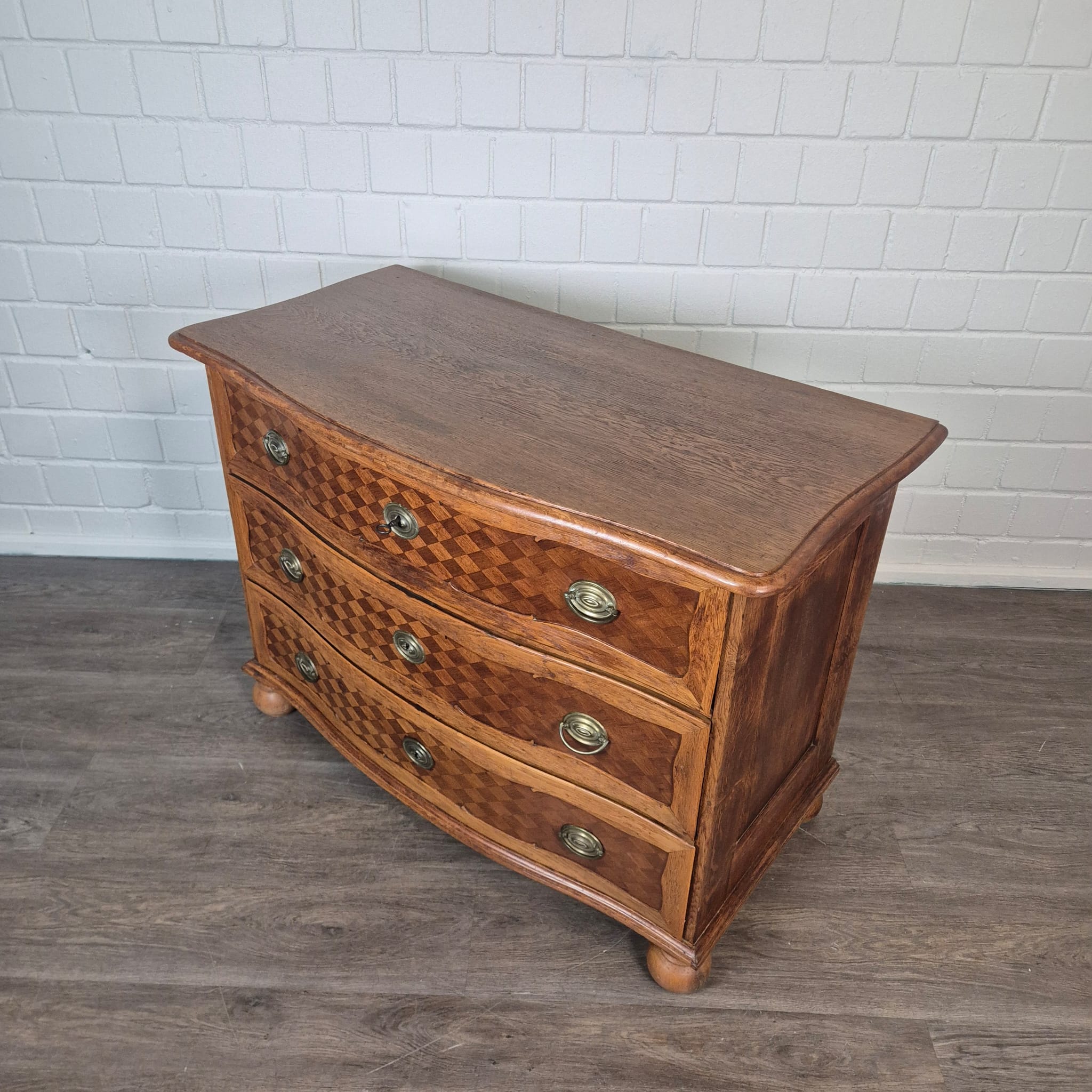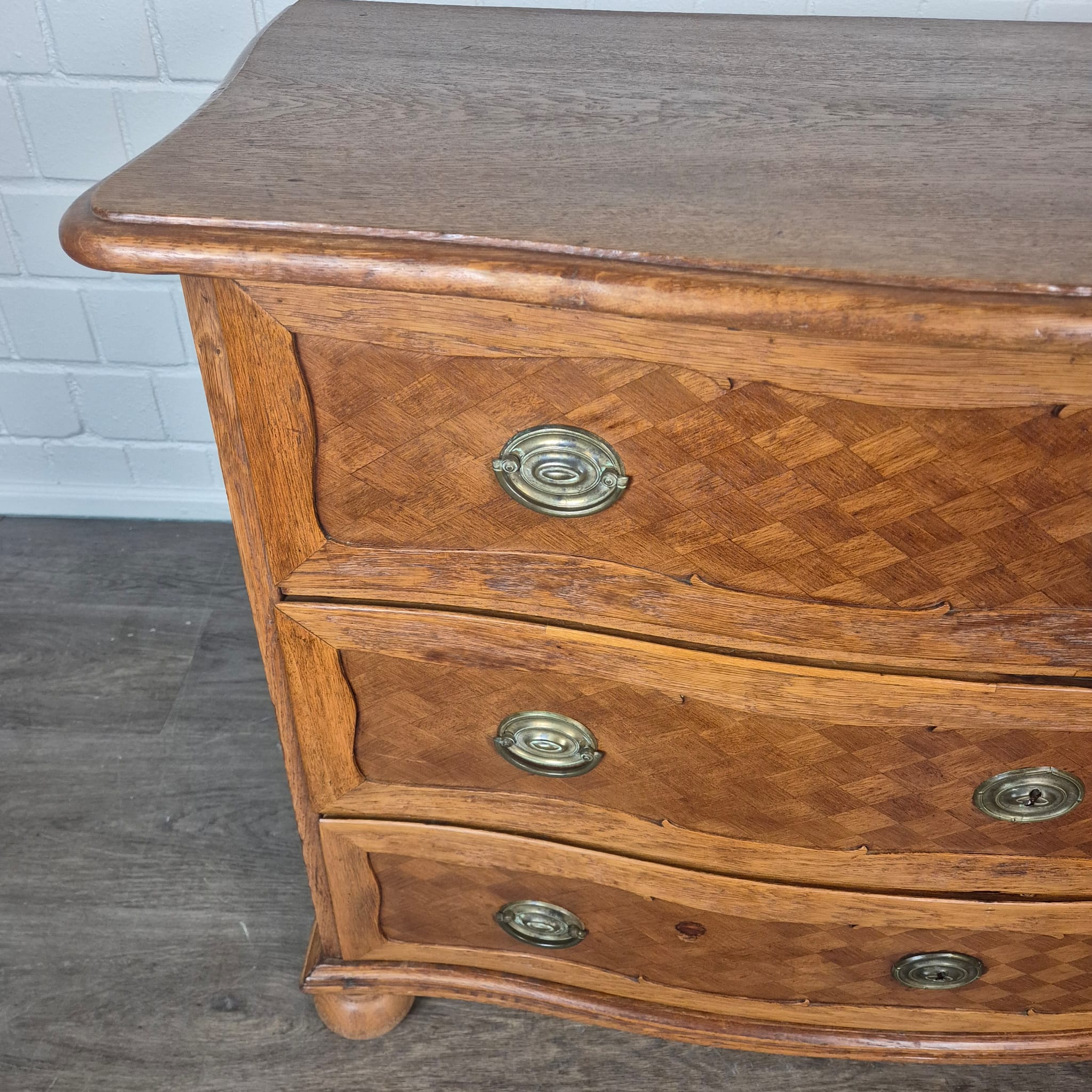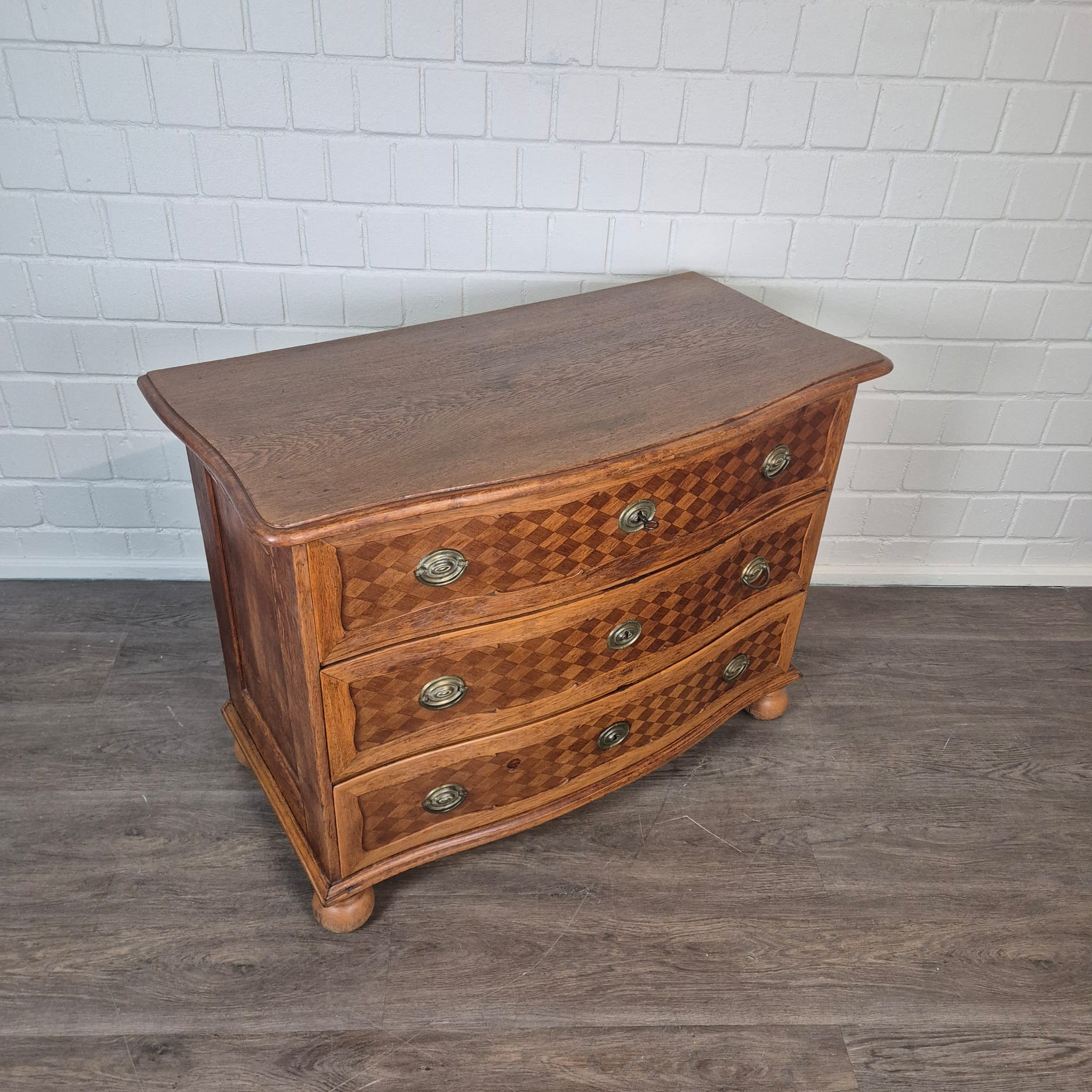 Gerestaureerde barok commode gemaakt van massief eiken en noten fineer uit ca. 1780. De commode is in een zeer goede staat en heeft minimale gebruikssporen.