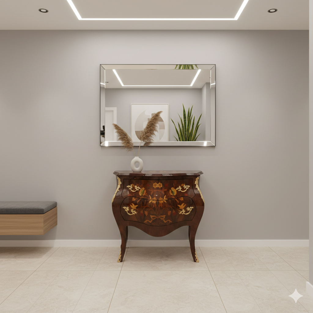 🔸 Vorm: Klassieke barokvorm met gebogen poten en afgeronde randen