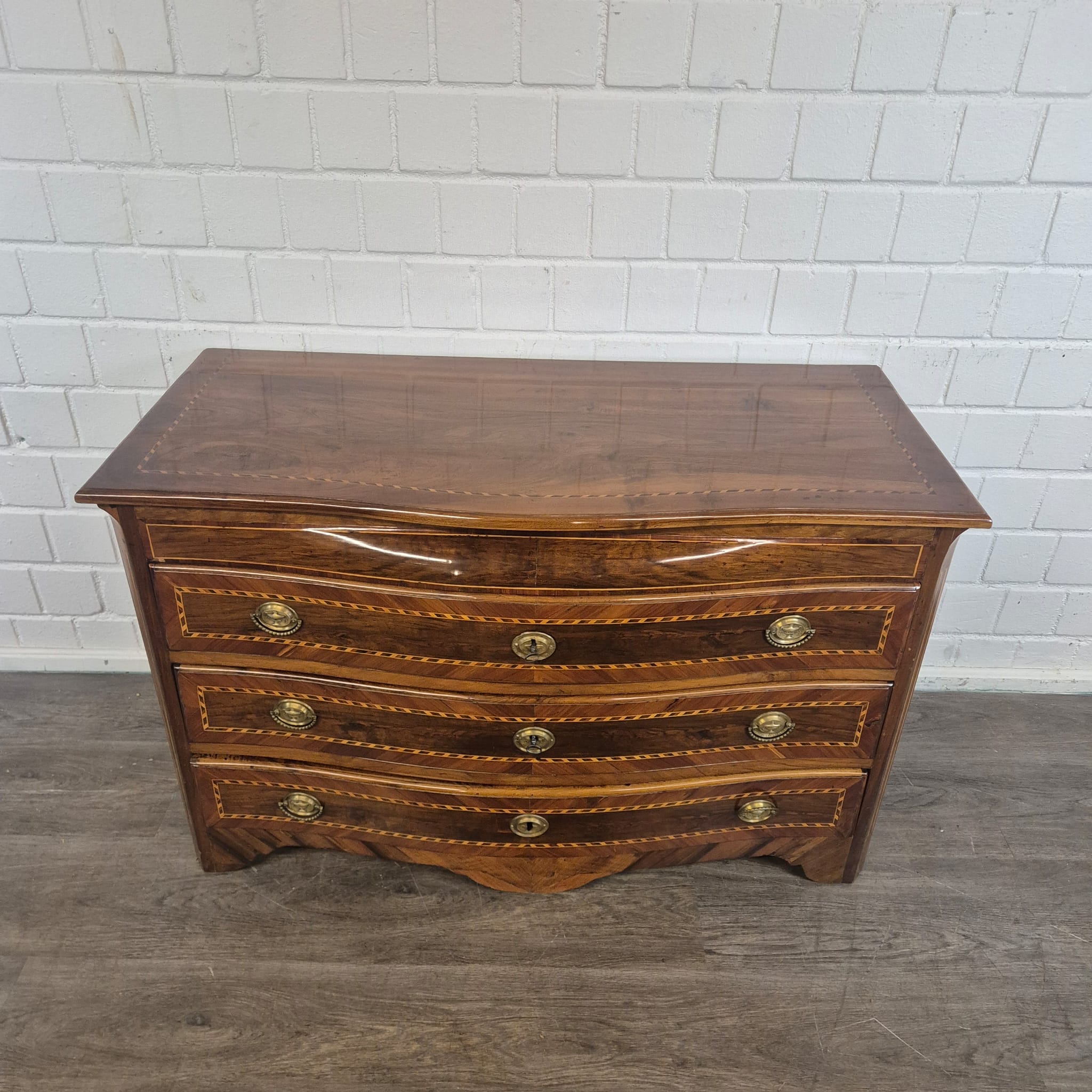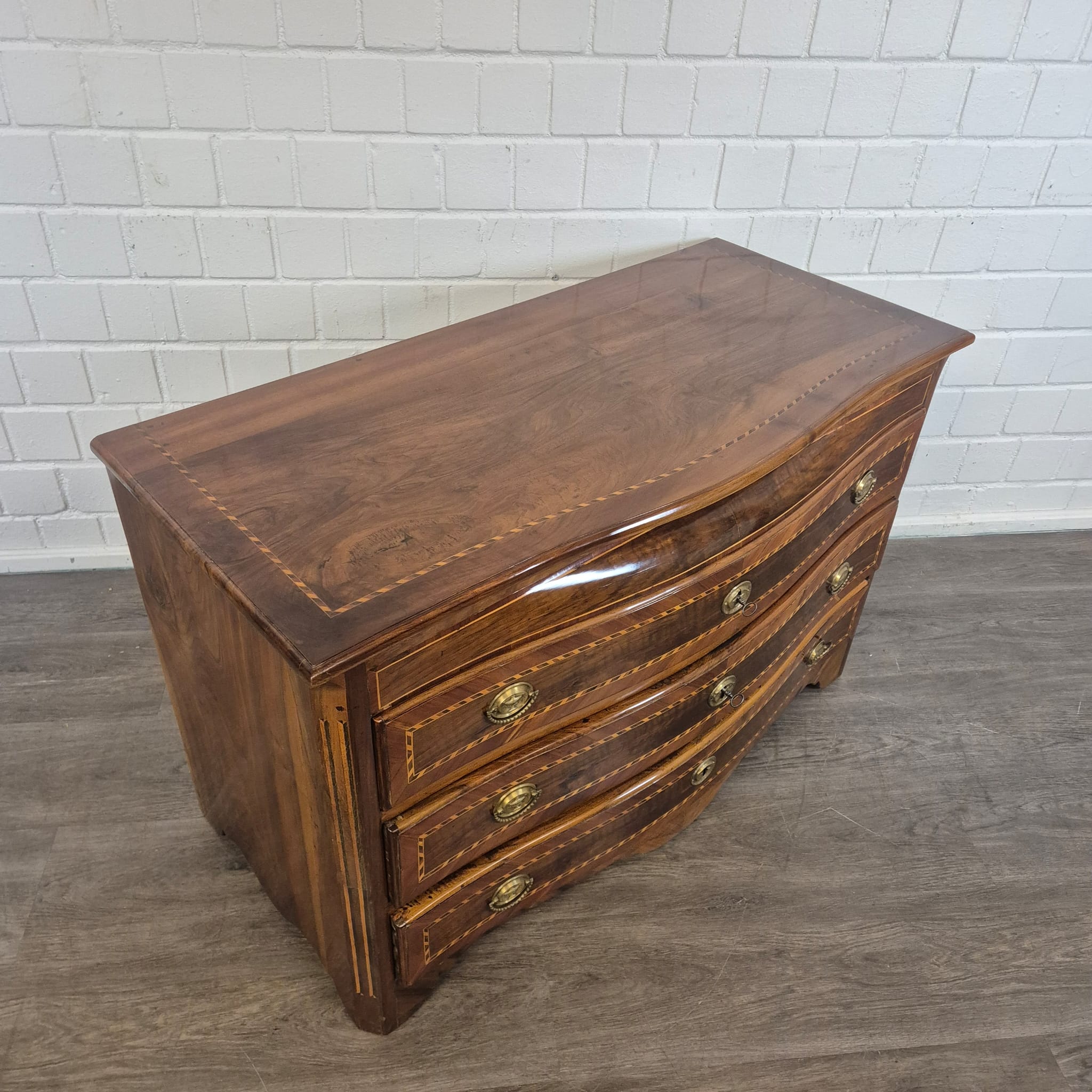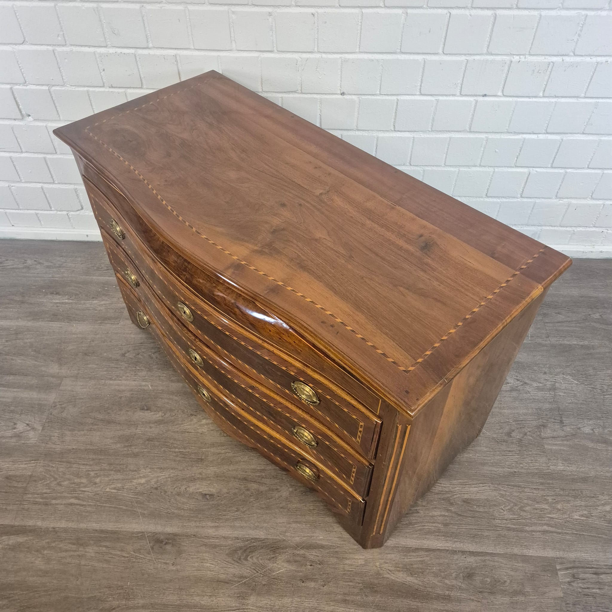 Gerestaureerde barok commode noten gefineerd en schellak gepolytourd uit ca. 1790. De Louis XVI commode is in een zeer goede staat en heeft minimale gebruikssporen.