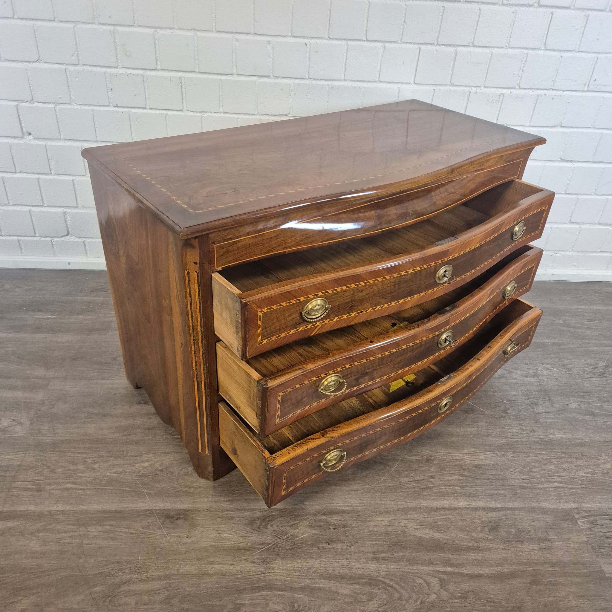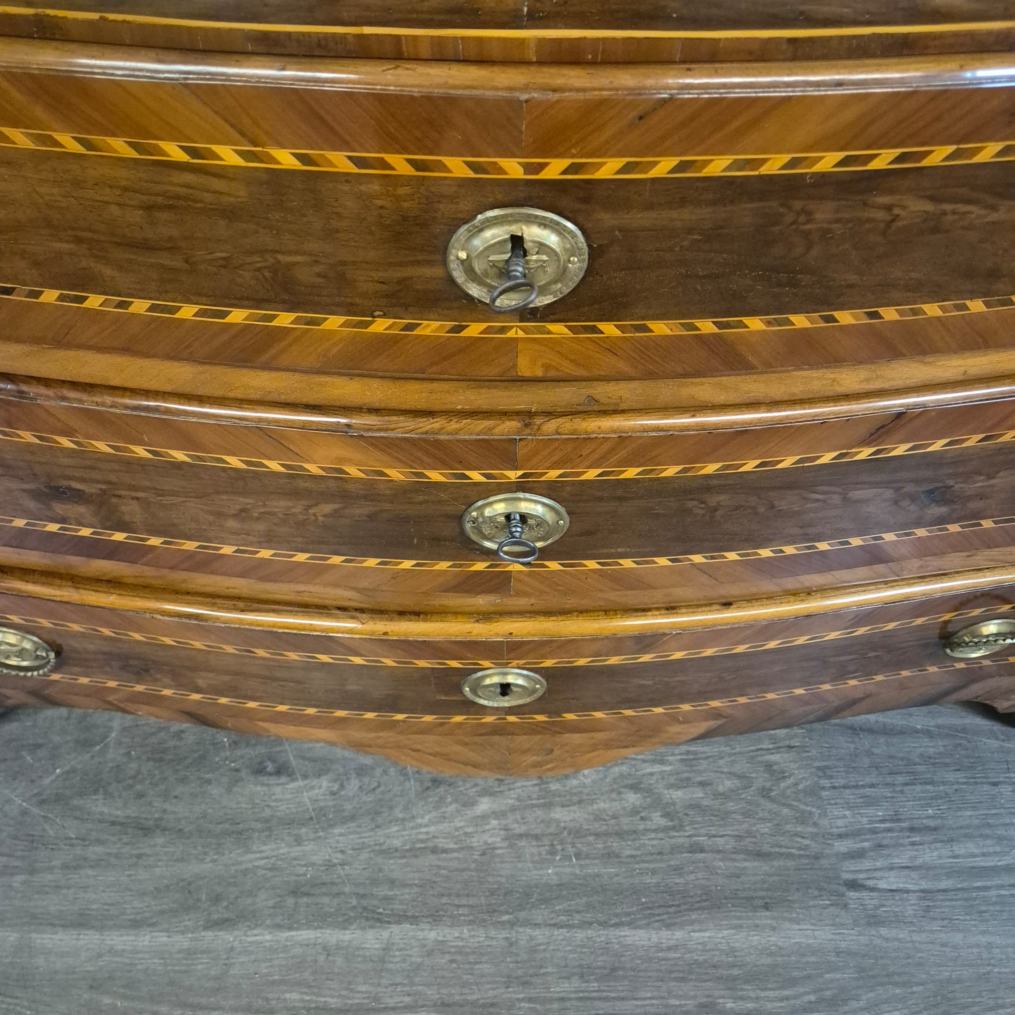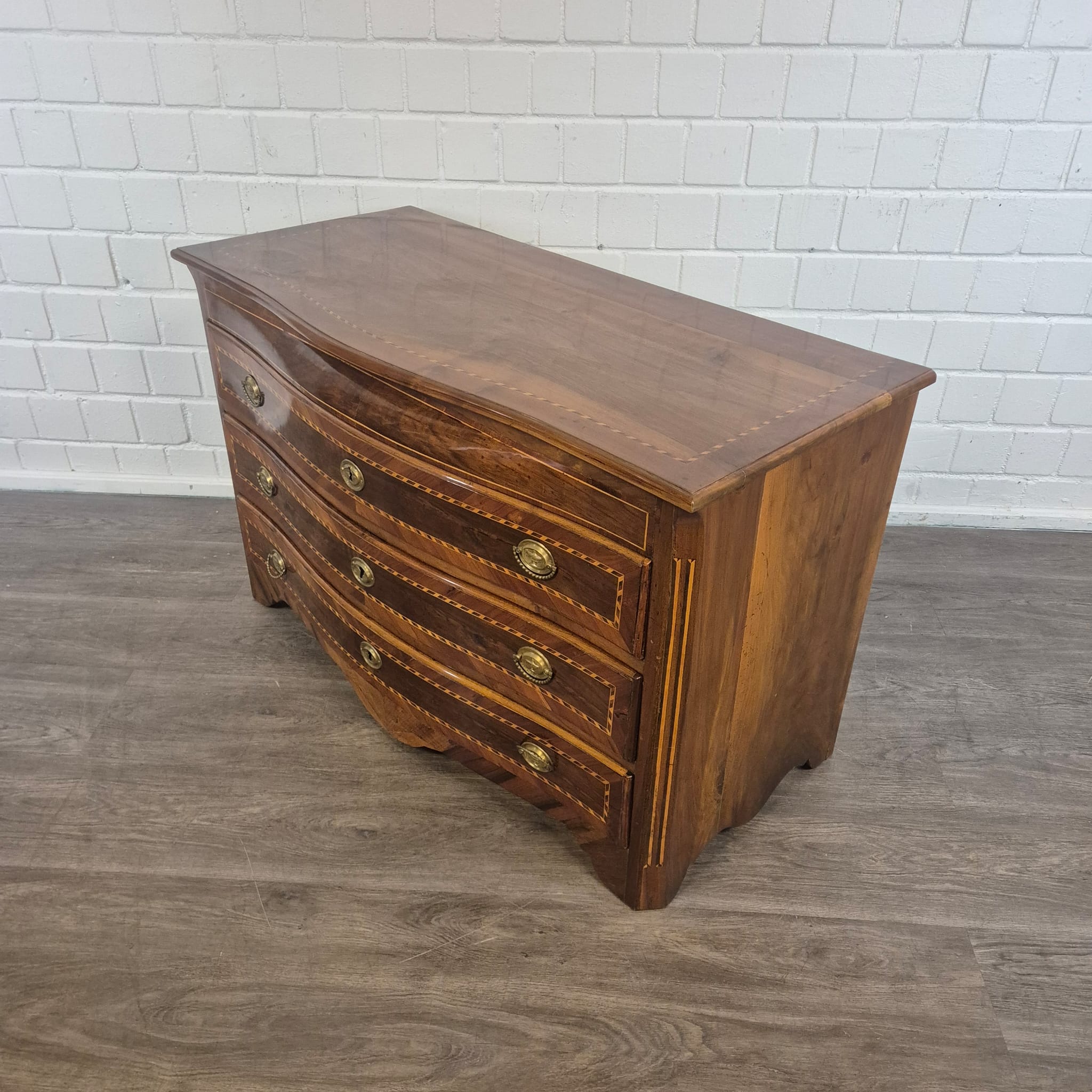 Gerestaureerde barok commode noten gefineerd en schellak gepolytourd uit ca. 1790. De Louis XVI commode is in een zeer goede staat en heeft minimale gebruikssporen.