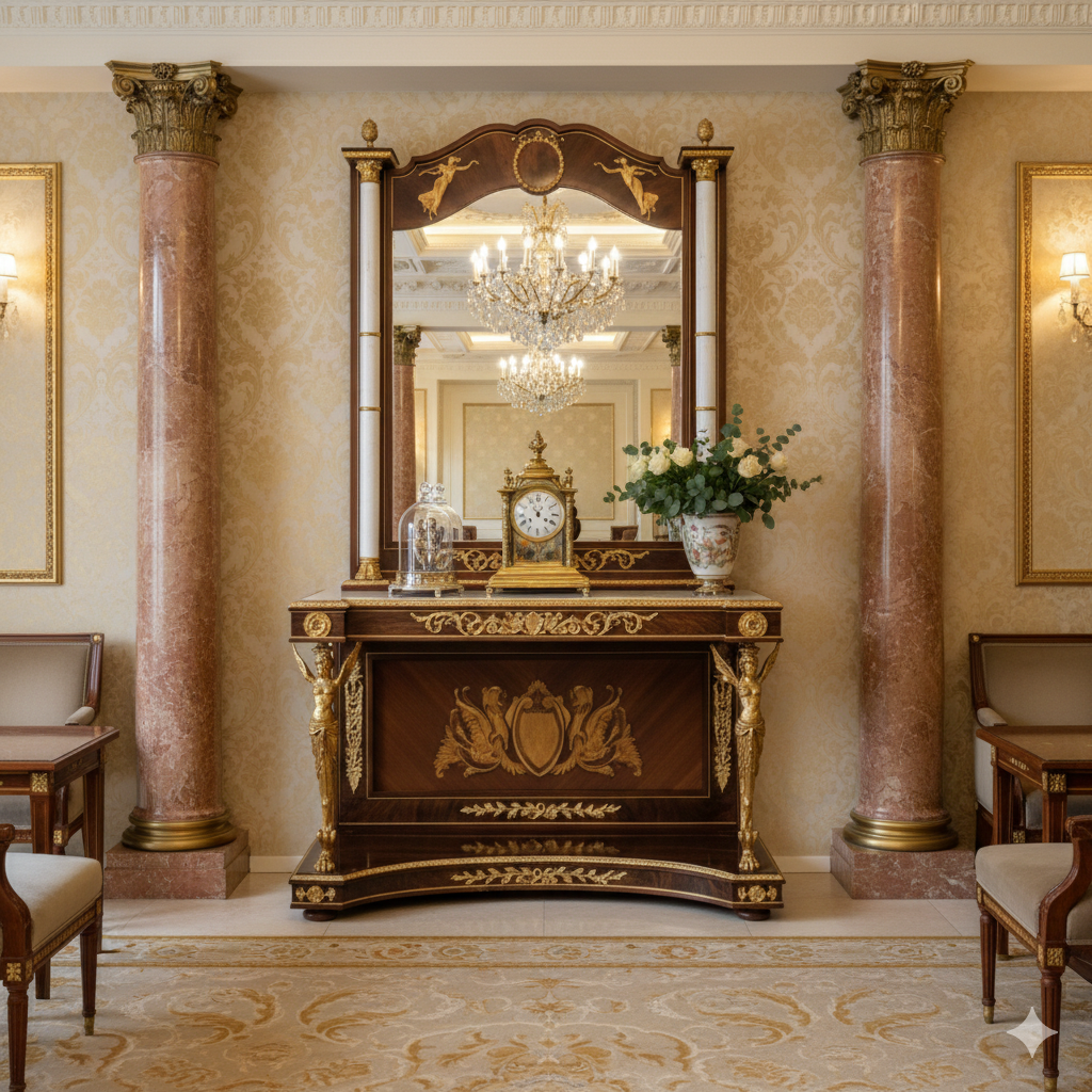 Consoletafel met Spiegel 1,40 m Barokstijl Marmer Goud