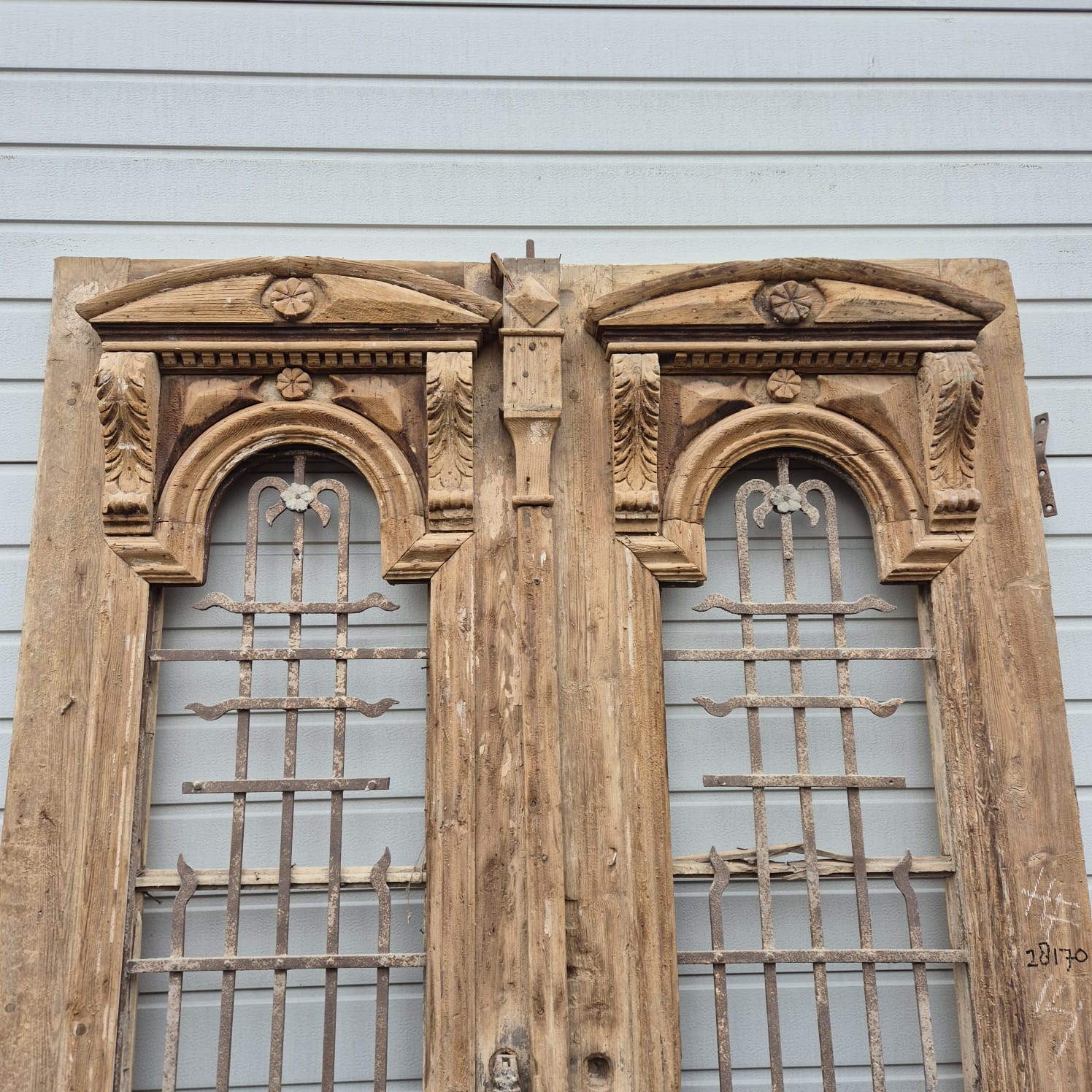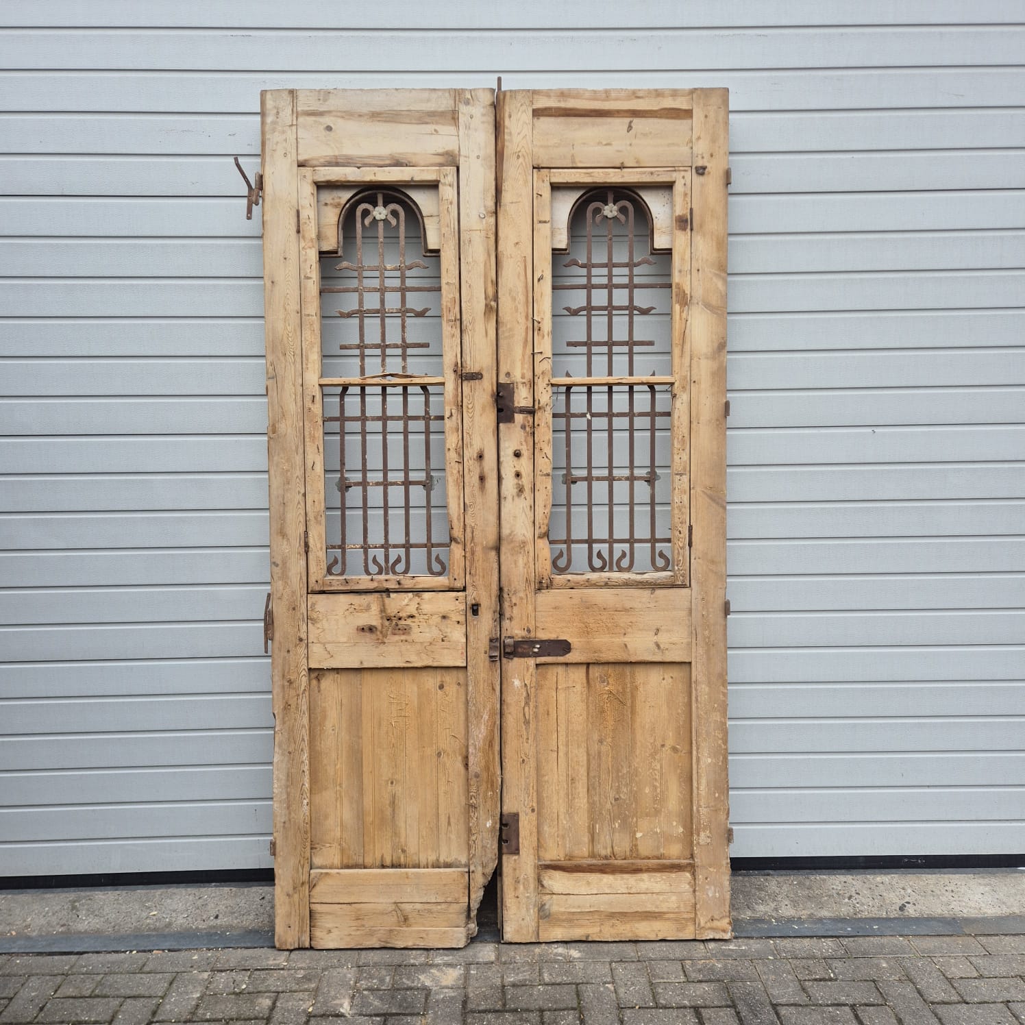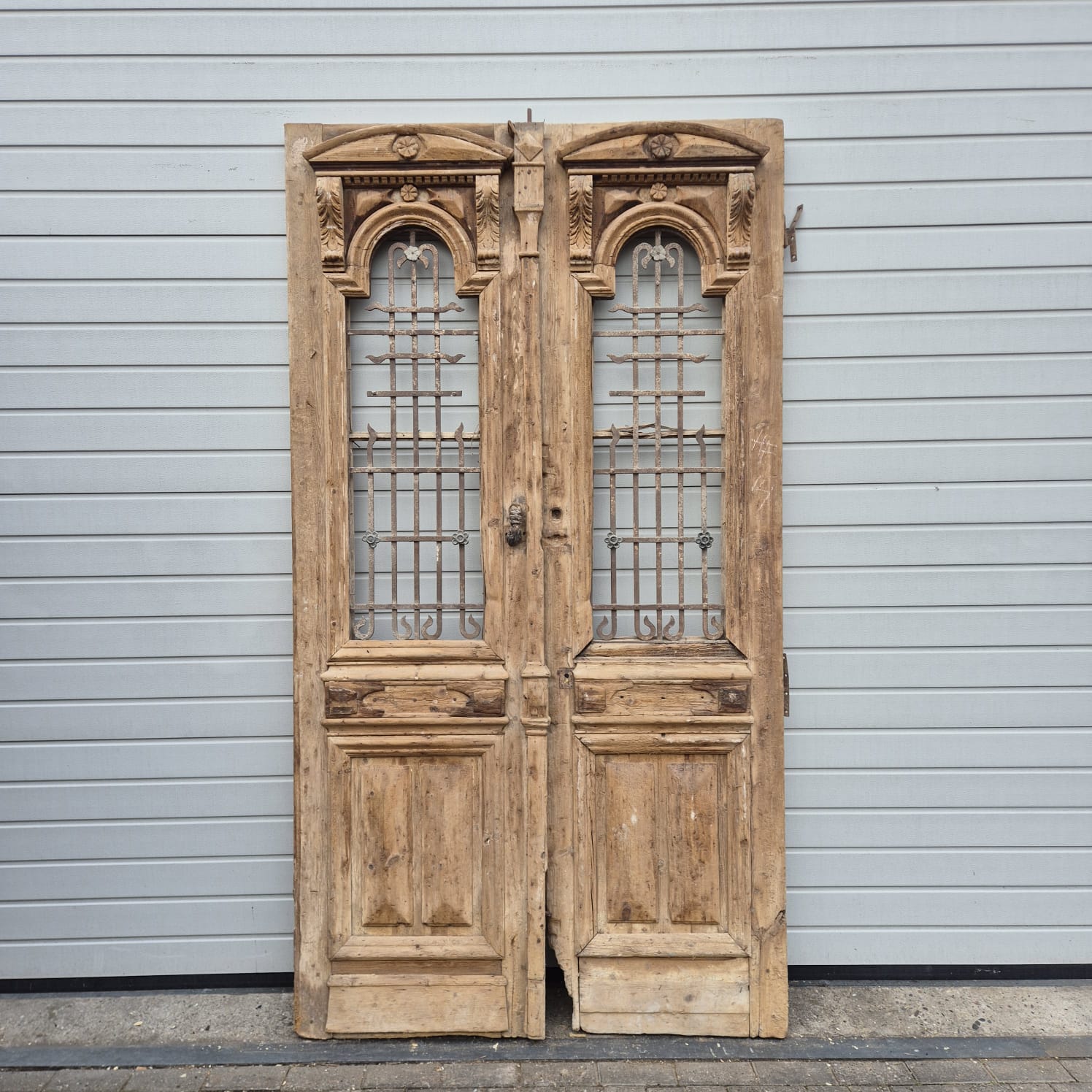 Geef uw huis een uniek karakter met dit originele exemplaar uit de beginjaren van de twintigste eeuw. Deze dubbele voordeur imponeert met zijn authentieke patina en het hoogwaardige vakmanschap dat typerend is voor het Gründerzeit tijdperk. Of hij nu professioneel gerestaureerd wordt of in zijn charmante 'shabby chic'-staat behouden blijft, het is een echte blikvanger voor historische panden, landhuizen of als opvallend contrasterend element in moderne architectuur.